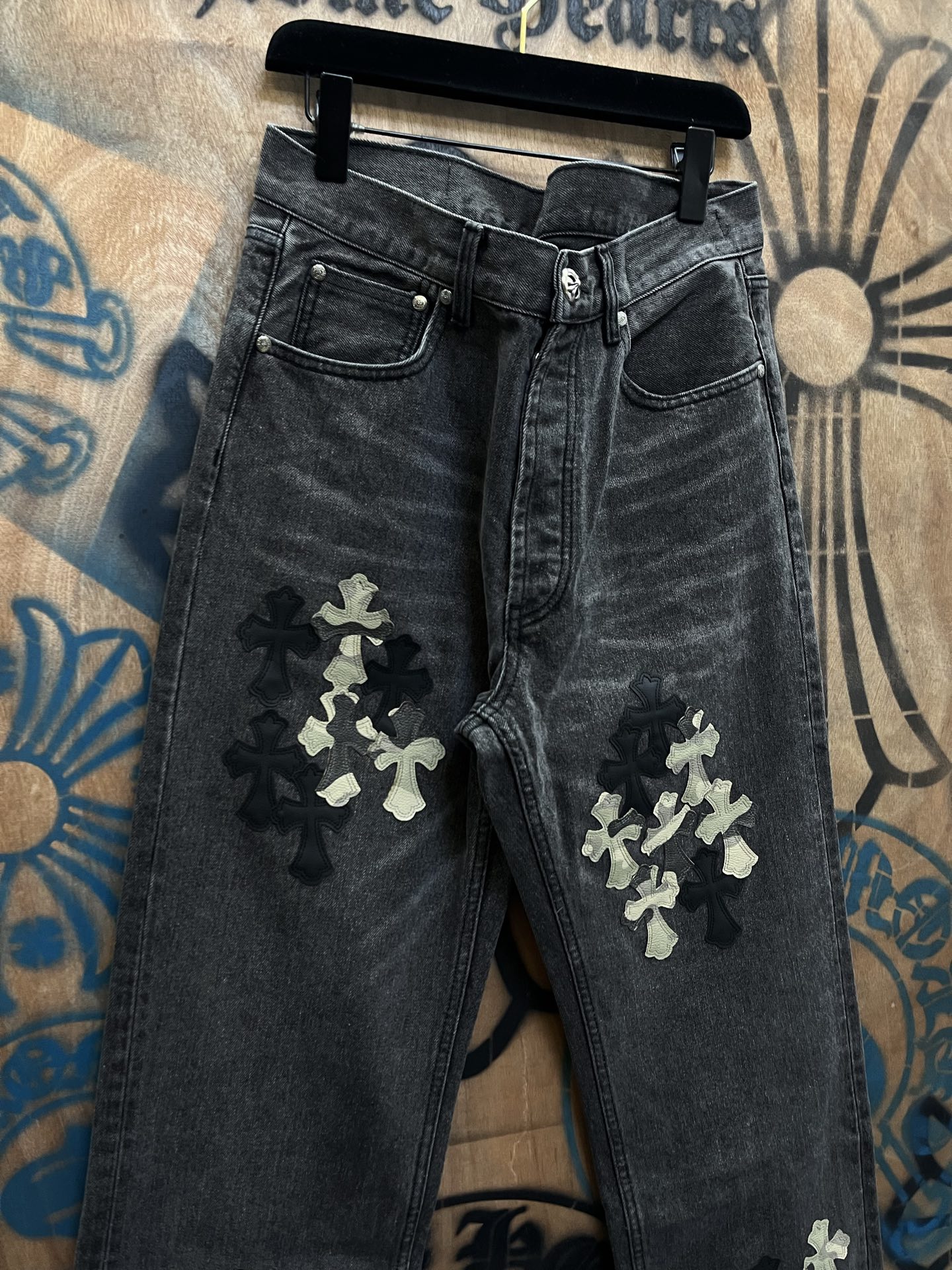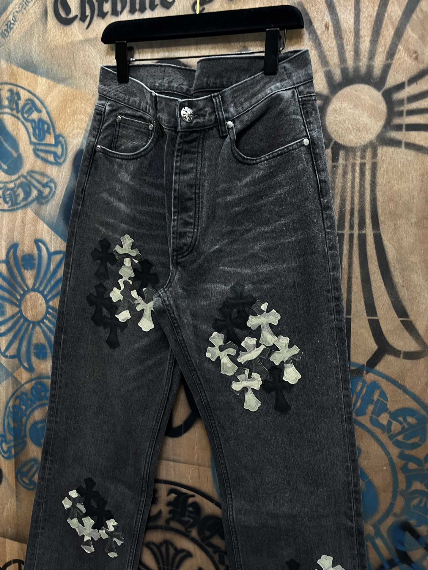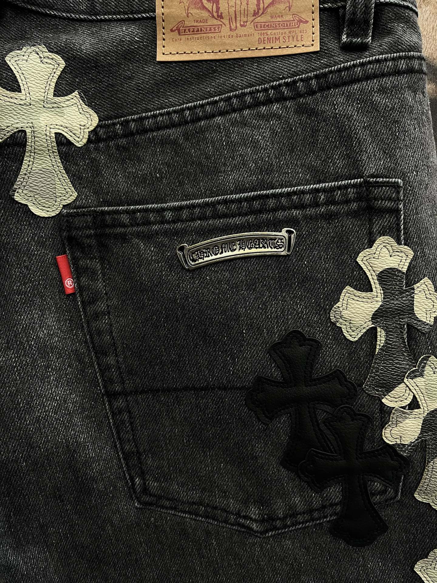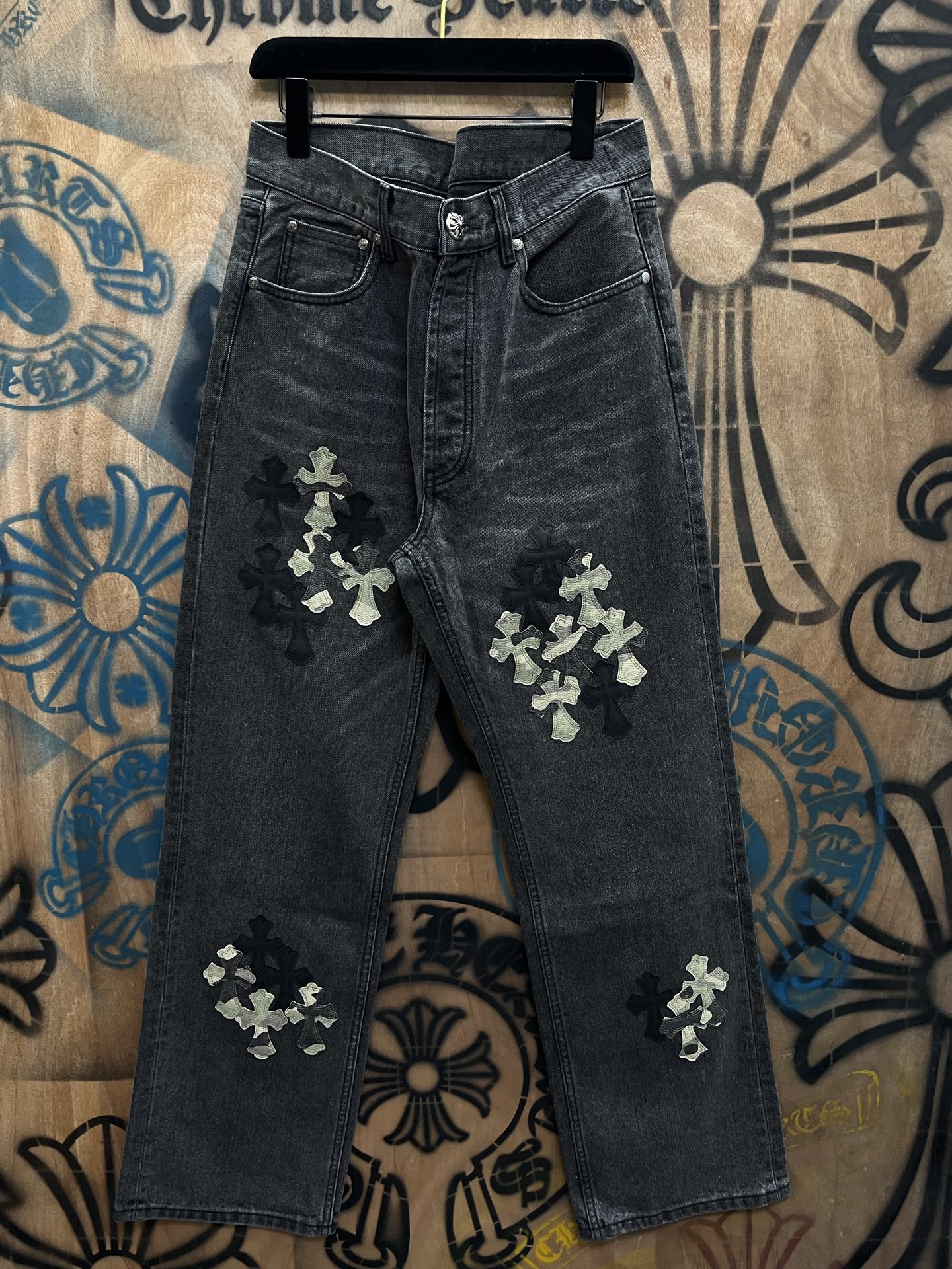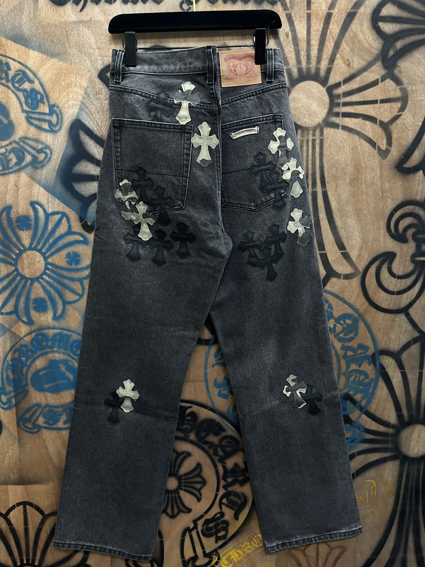 Chrome Hearts patch Print pattern loose casual DENIM JEANS Black クロムハーツ アップリケ プリント パターン ゆったり カジュアル デニムパンツ ブラック