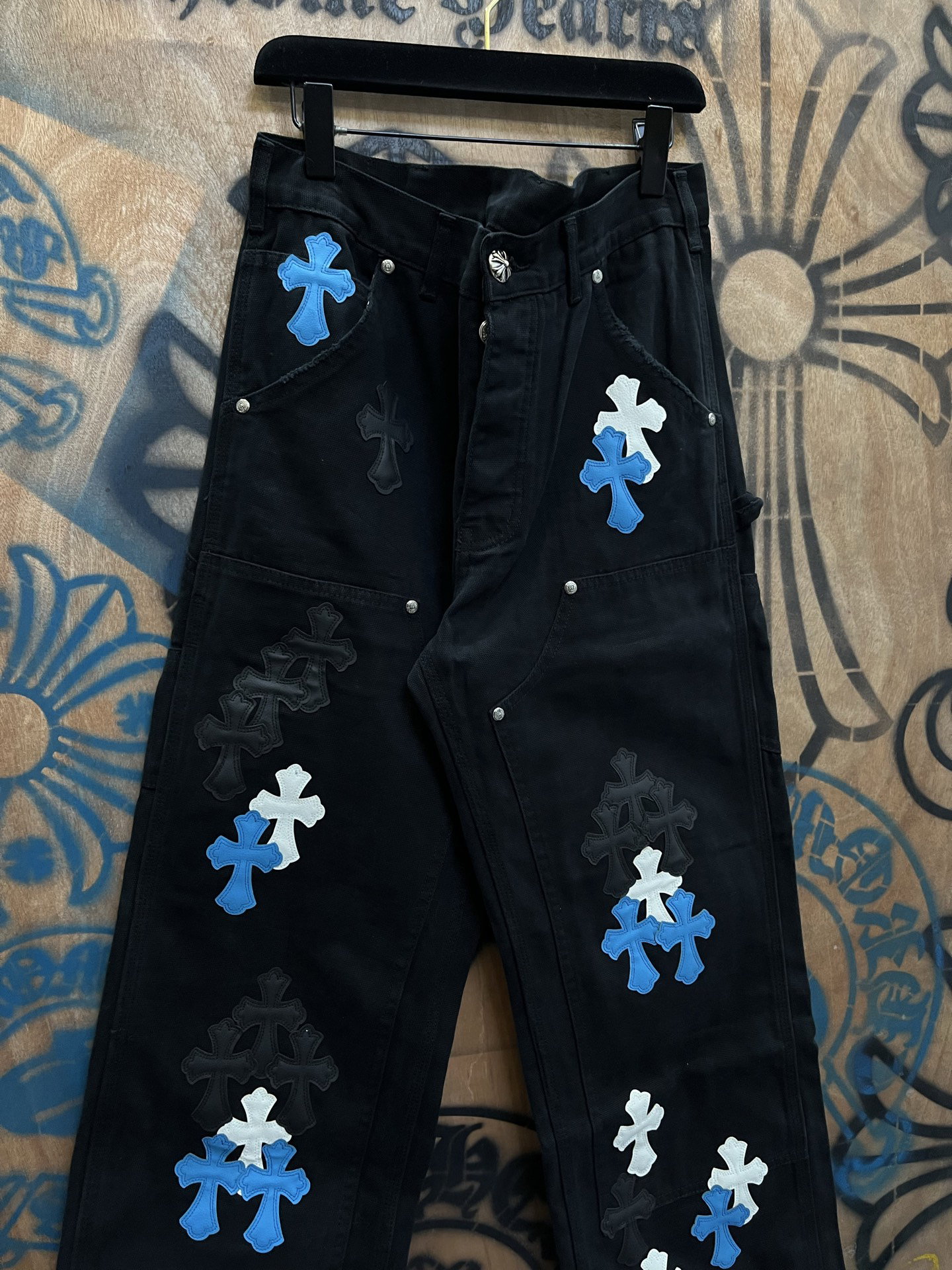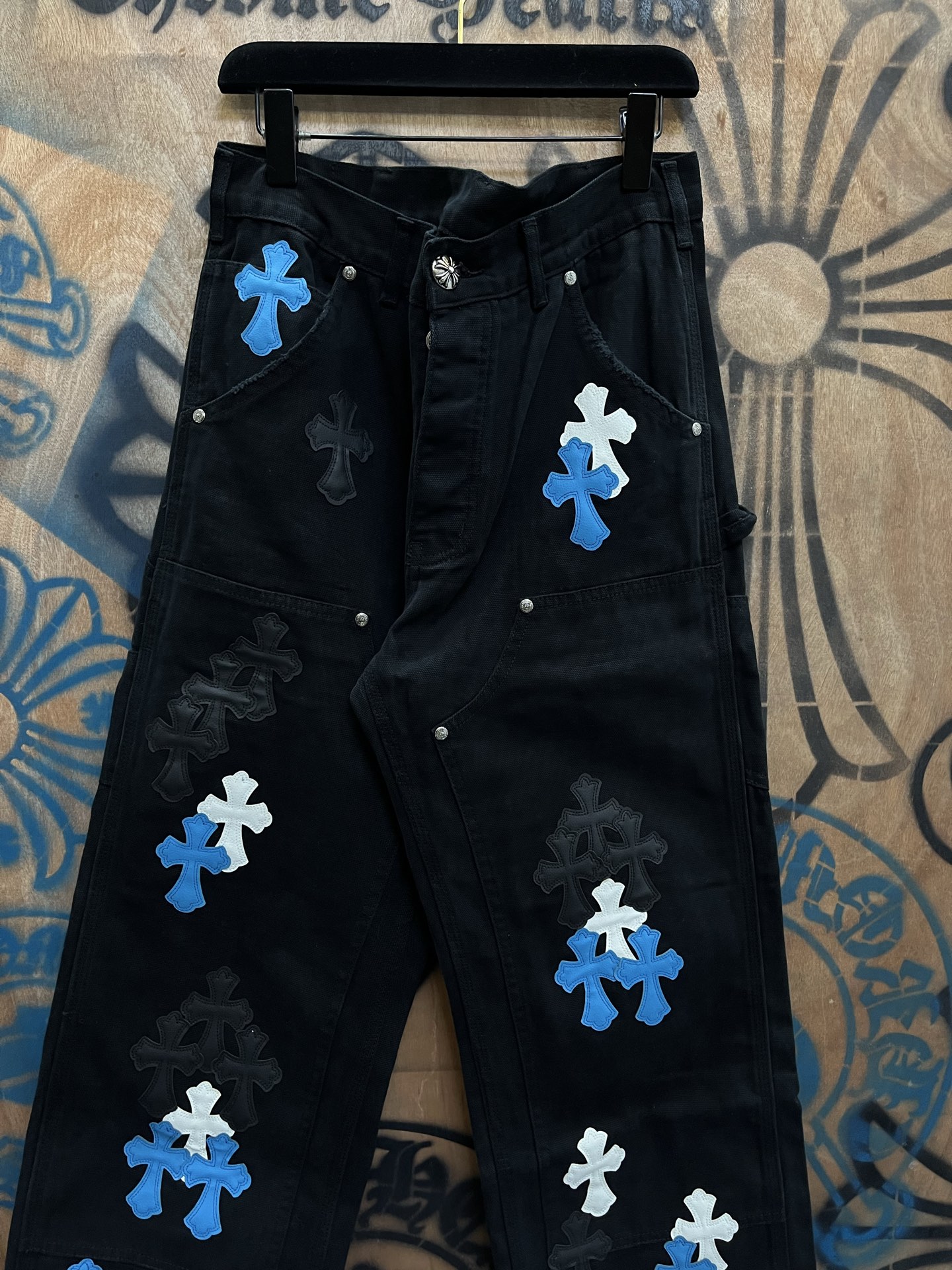 Chrome Hearts patch Print pattern loose casual DENIM JEANS Black クロムハーツ アップリケ プリント パターン ゆったり カジュアル デニムパンツ ブラック