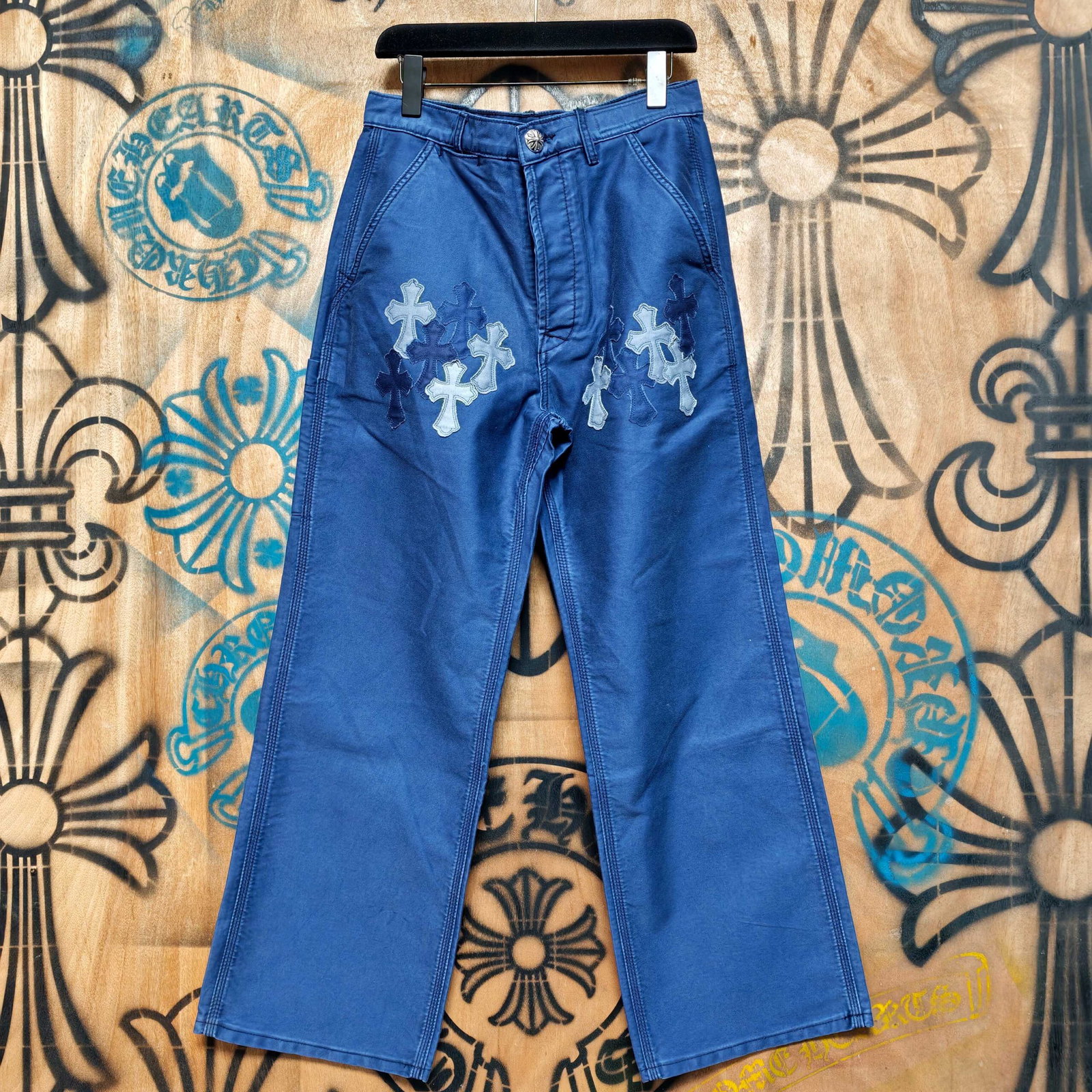 Chrome Hearts patch Print pattern loose casual DENIM JEANS Blue クロムハーツ アップリケ プリント パターン ゆったり カジュアル デニムパンツ ブルー
