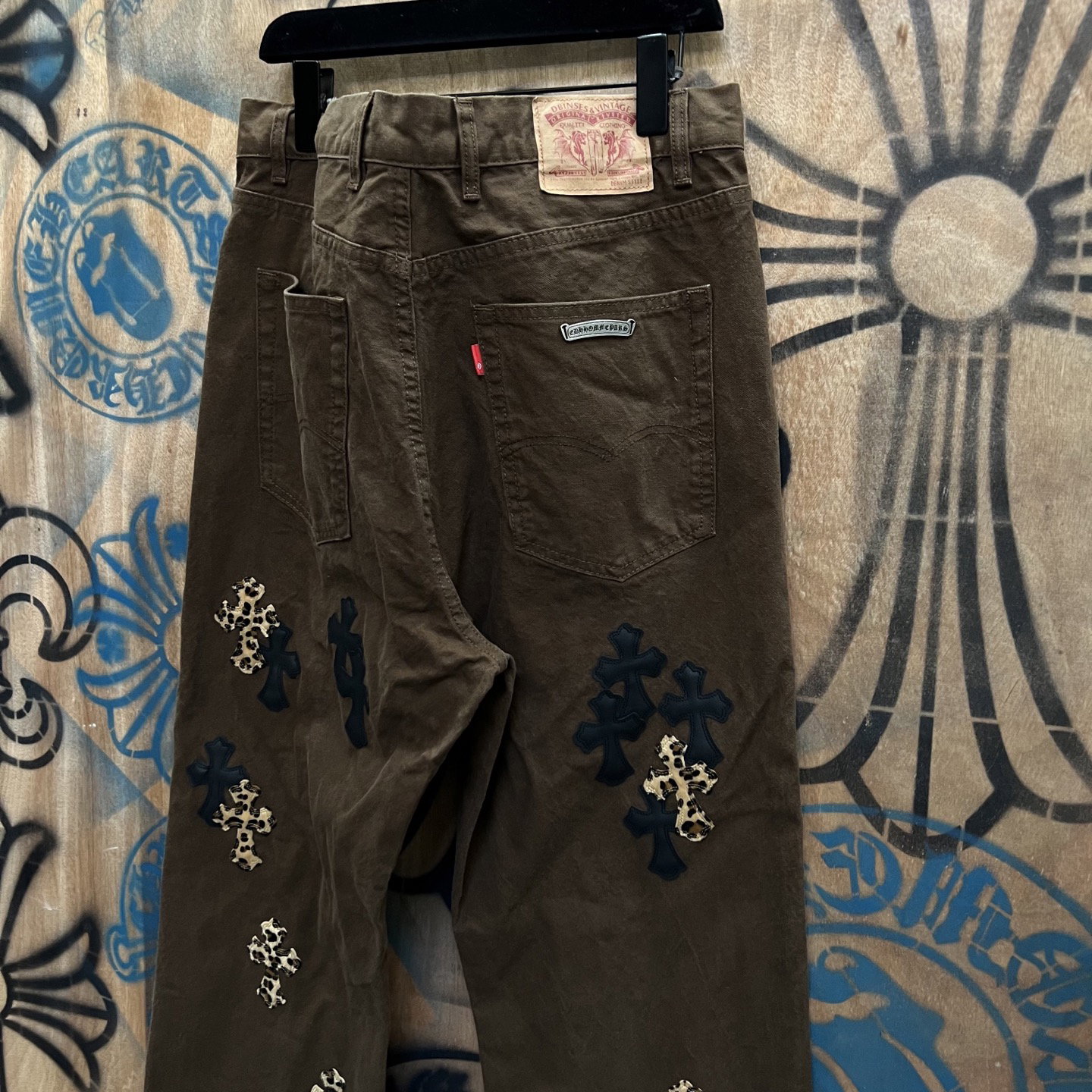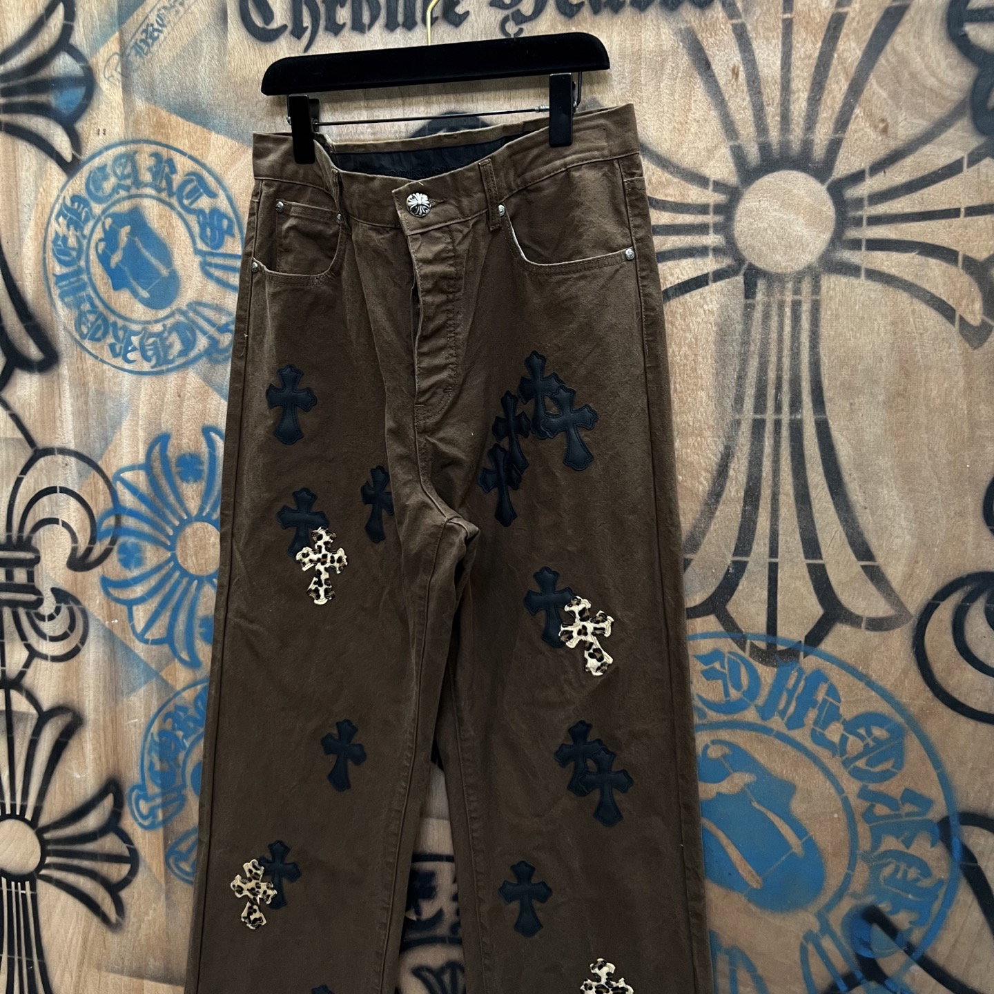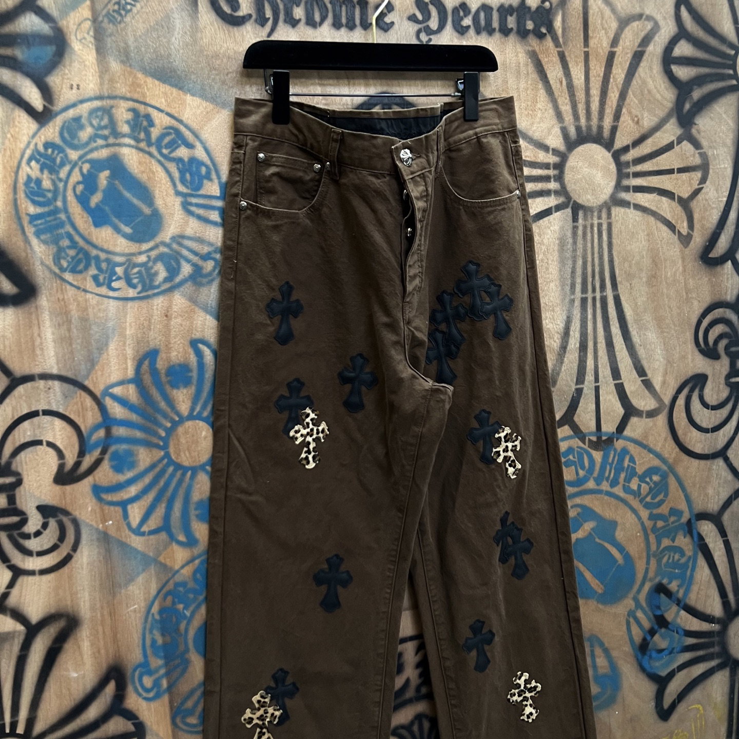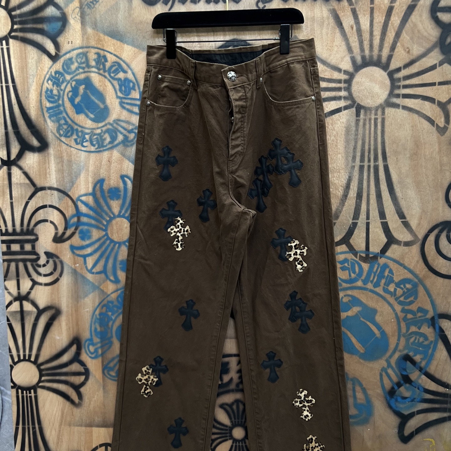 Chrome Hearts patch Print pattern loose casual DENIM JEANS coffee brown クロムハーツ アップリケ プリント パターン ゆったり カジュアル デニムパンツ コーヒーブラウン