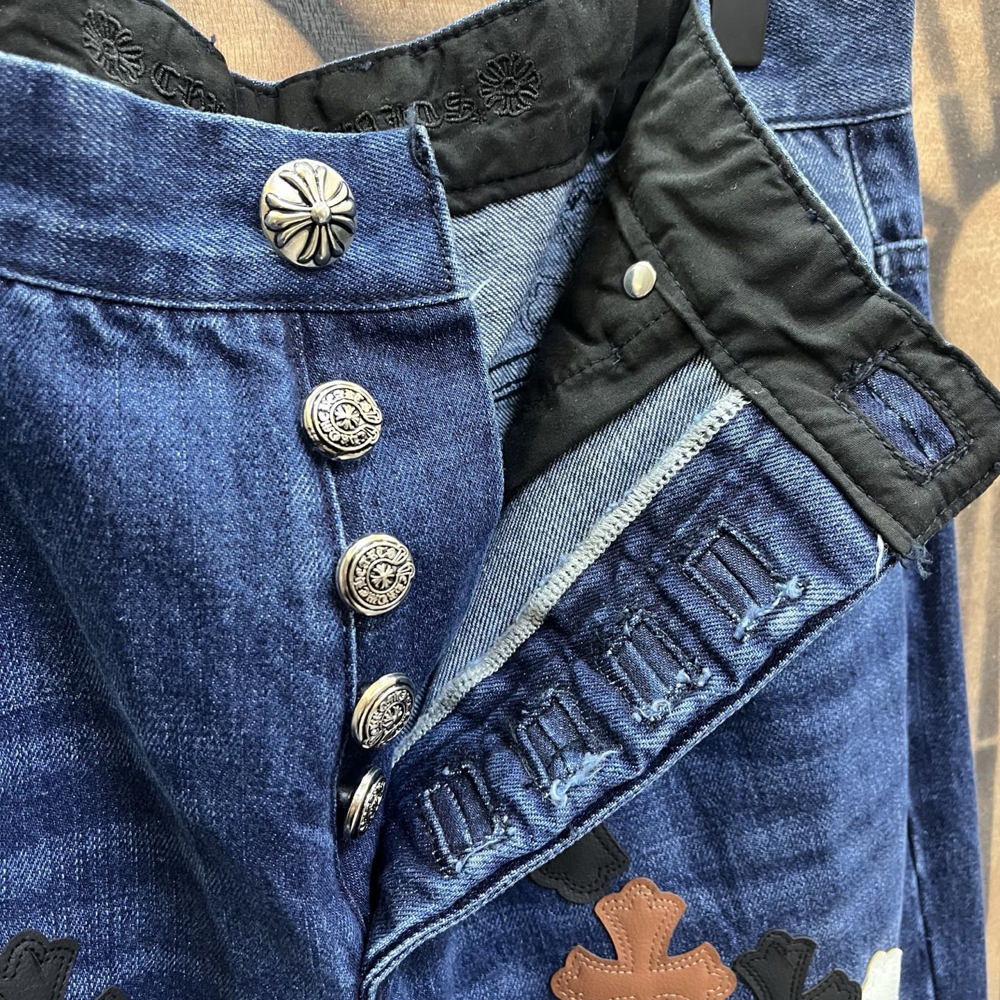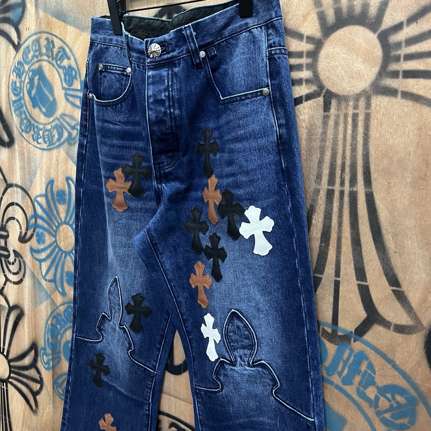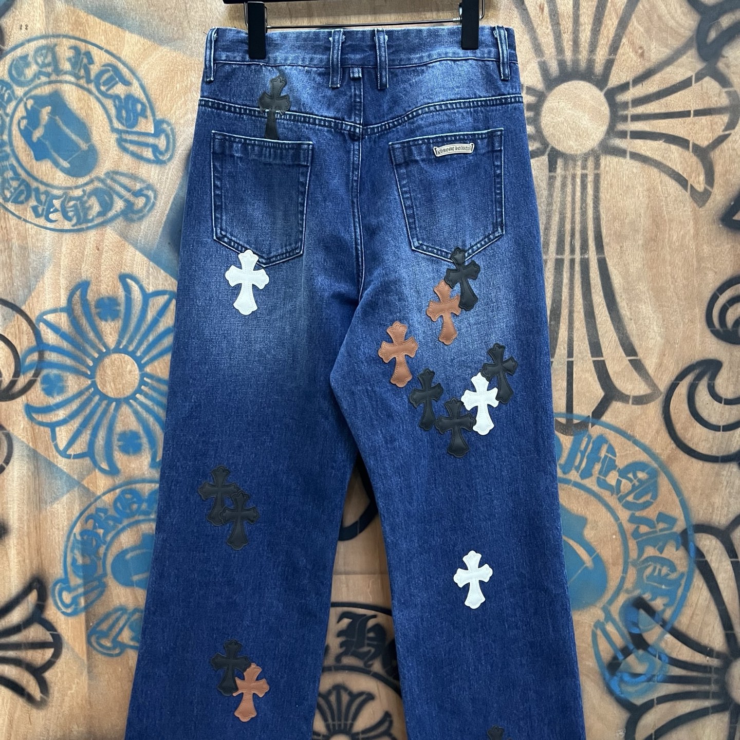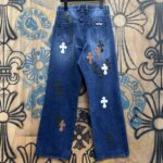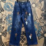 Chrome Hearts patch Print pattern loose casual DENIM JEANS dark Blue クロムハーツ アップリケ プリント パターン ゆったり カジュアル デニムパンツ ダーク ブルー