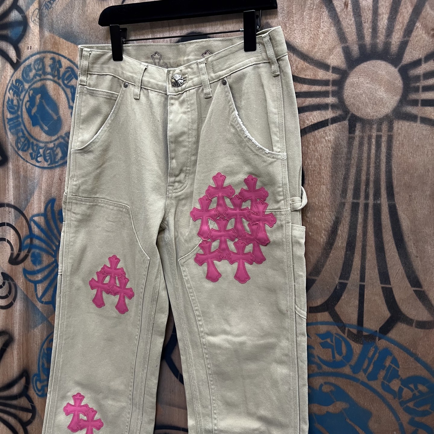Chrome Hearts patch Print Pink pattern loose casual DENIM JEANS クロムハーツ アップリケ プリント ピンク パターン ゆったり カジュアル デニムパンツ