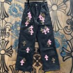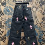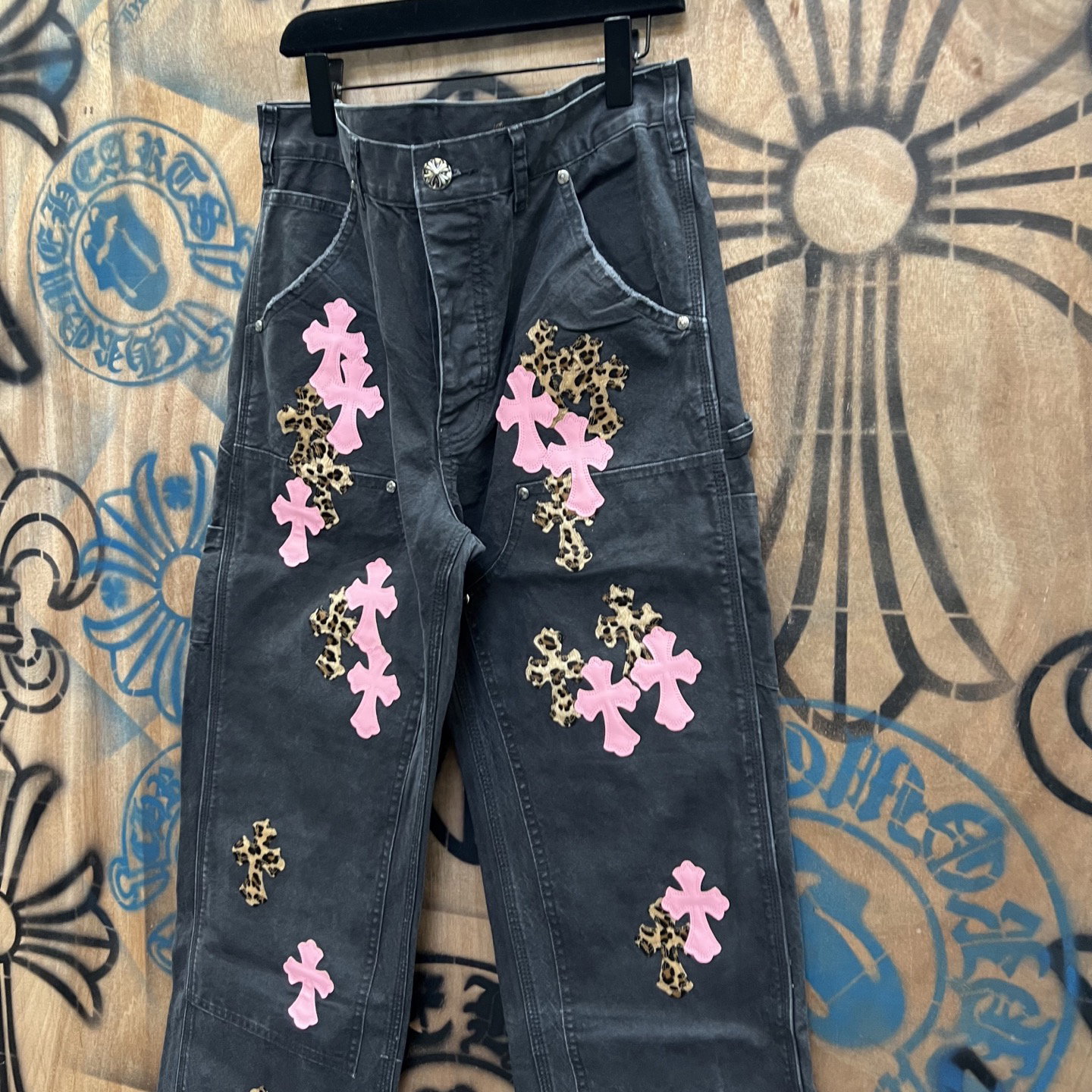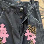 Chrome Hearts patch Print Pink pattern loose casual DENIM JEANS Washed Black クロムハーツ アップリケ プリント ピンク パターン ゆったり カジュアル デニムパンツ ウォッシュドブラック