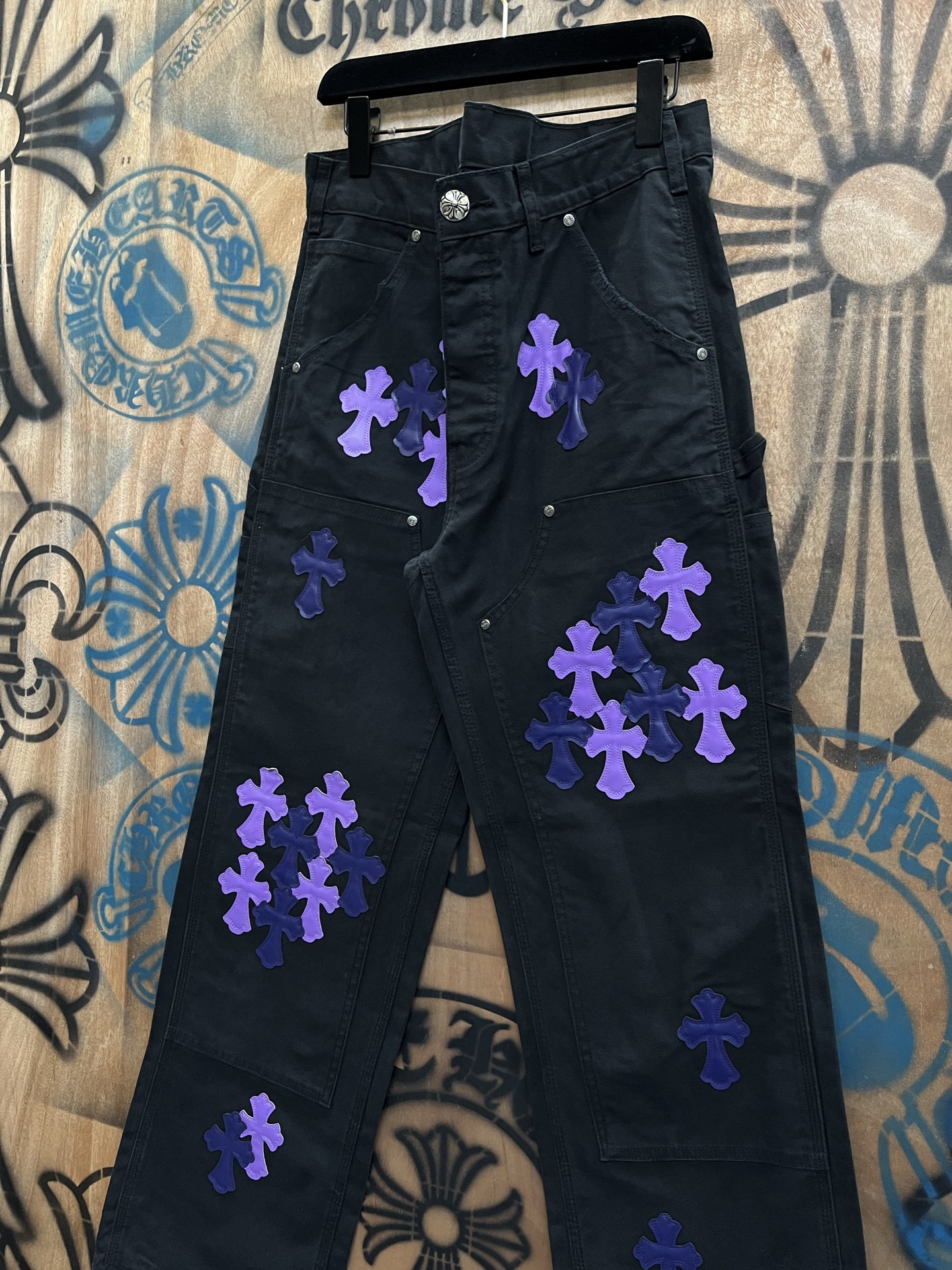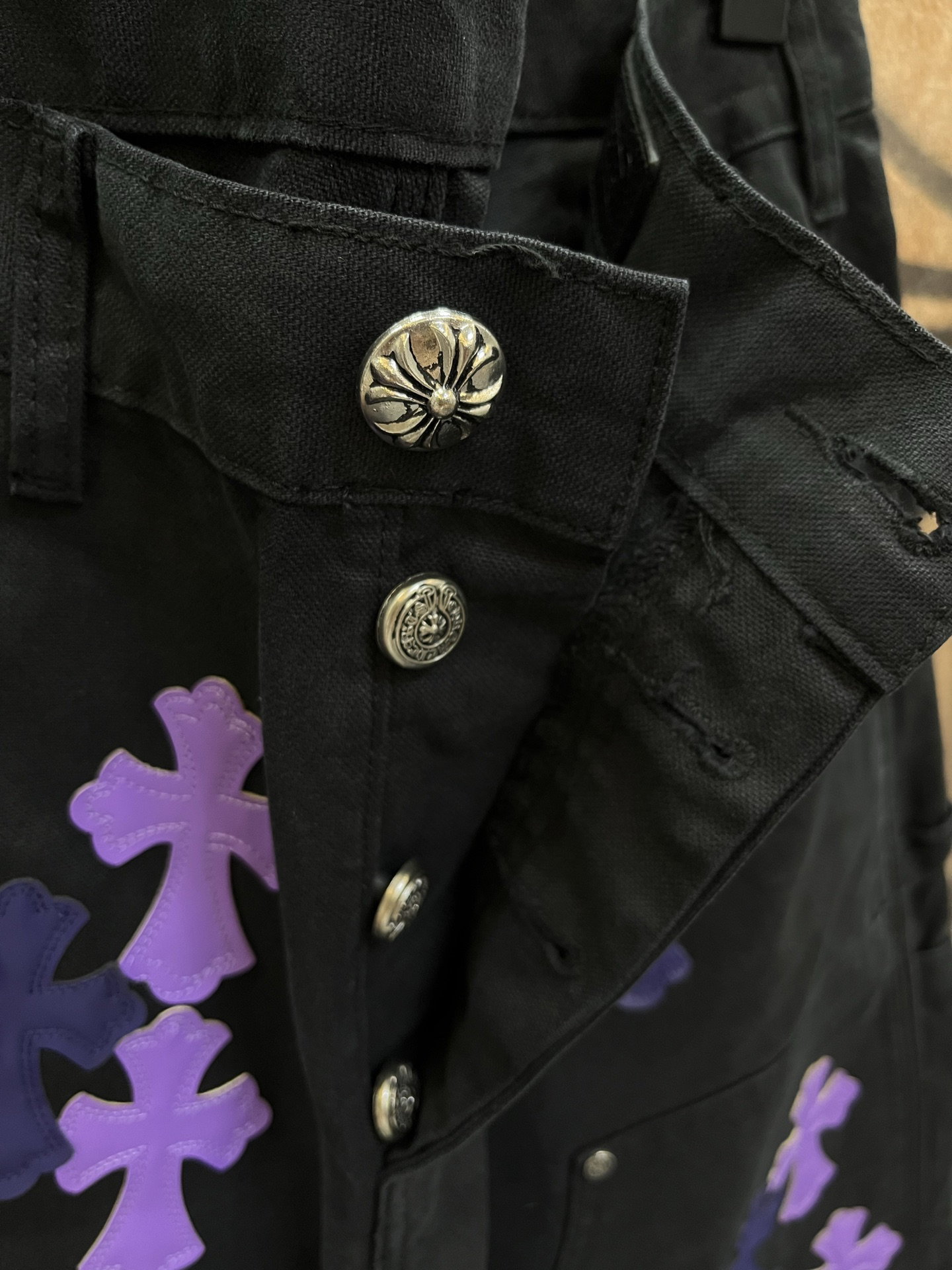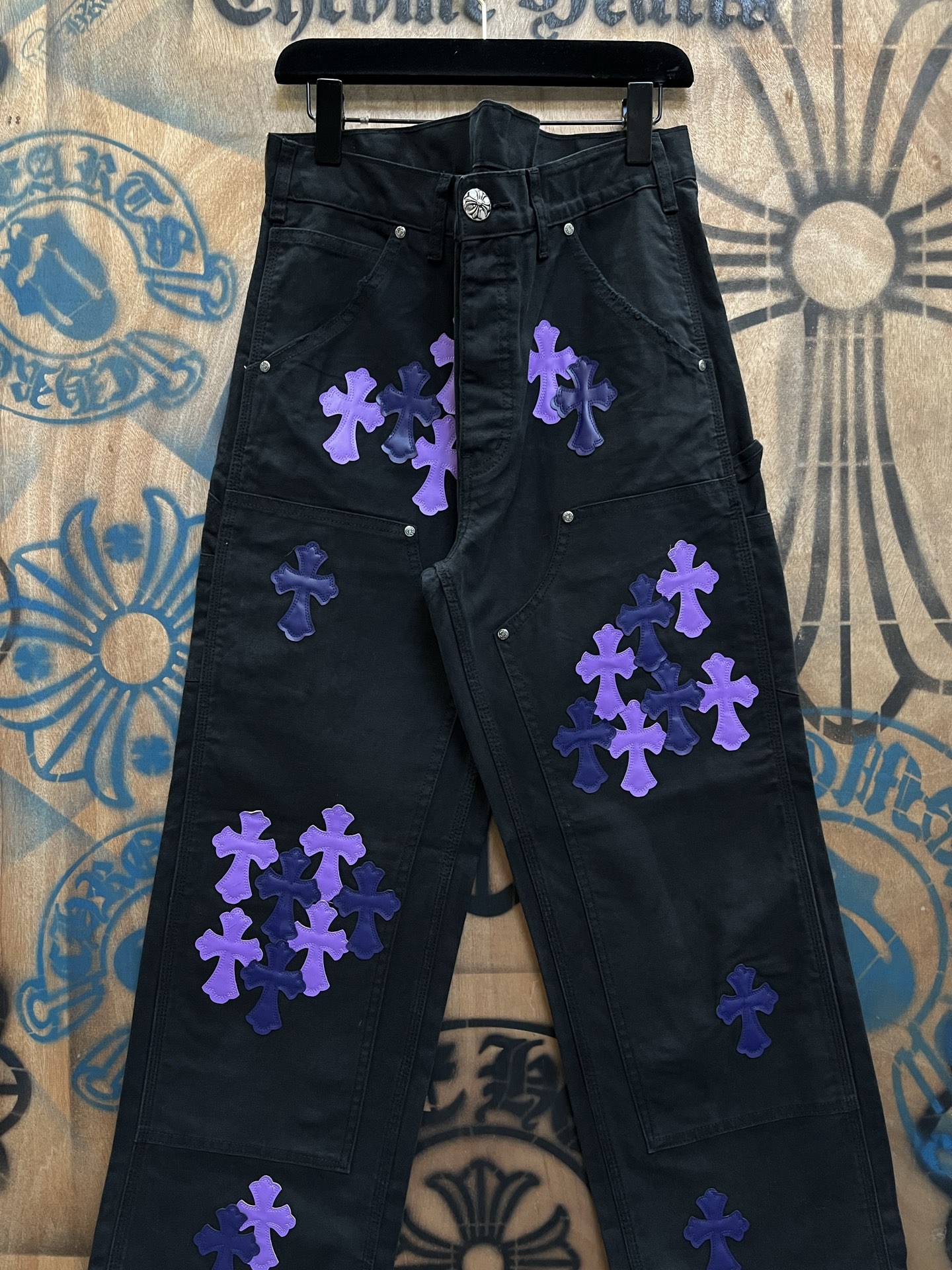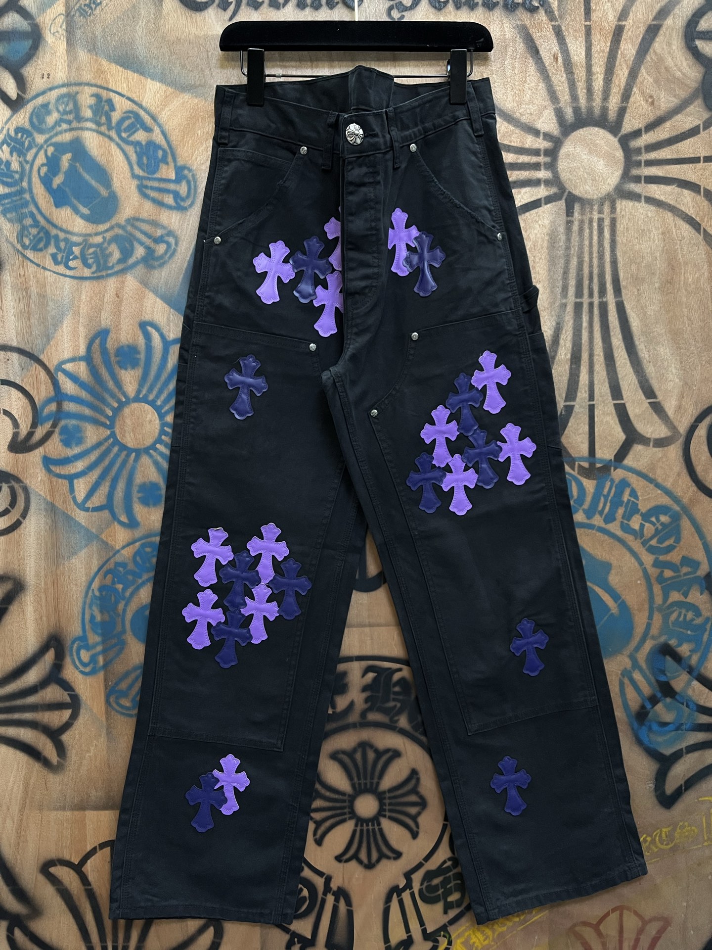 Chrome Hearts patch Print Purple pattern loose casual DENIM JEANS Black クロムハーツ アップリケ プリント パープル パターン ゆったり カジュアル デニムパンツ ブラック