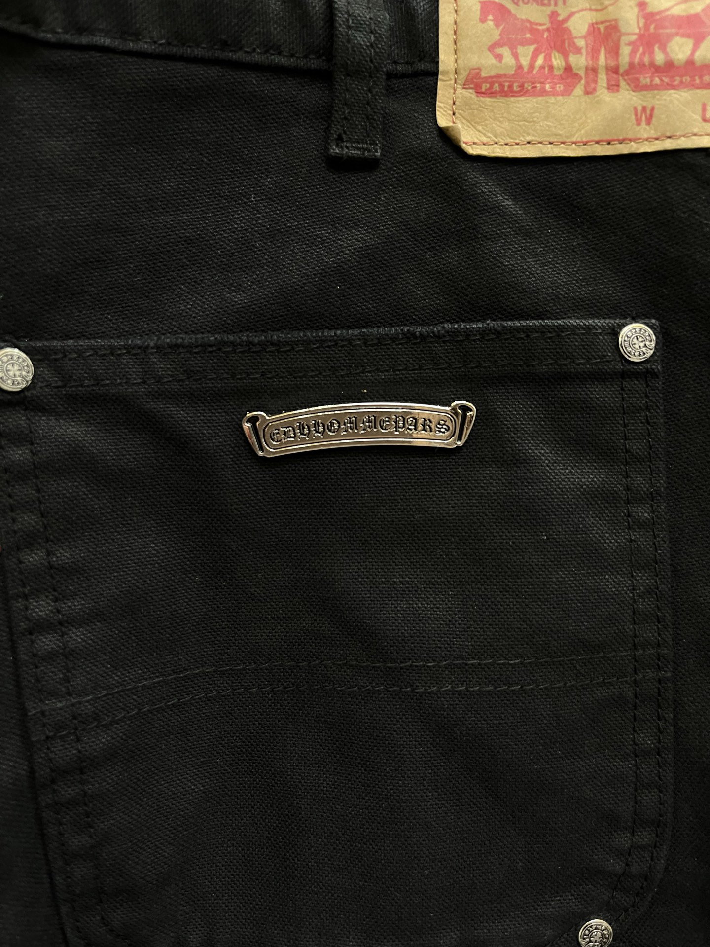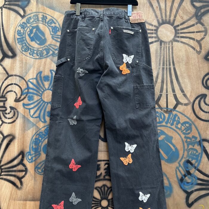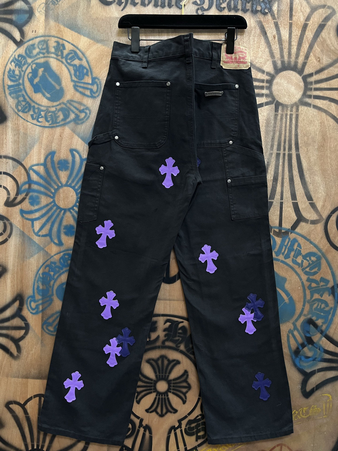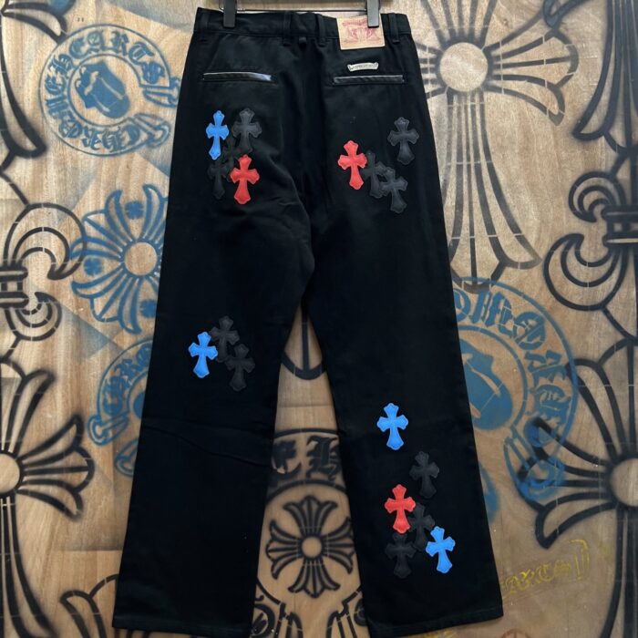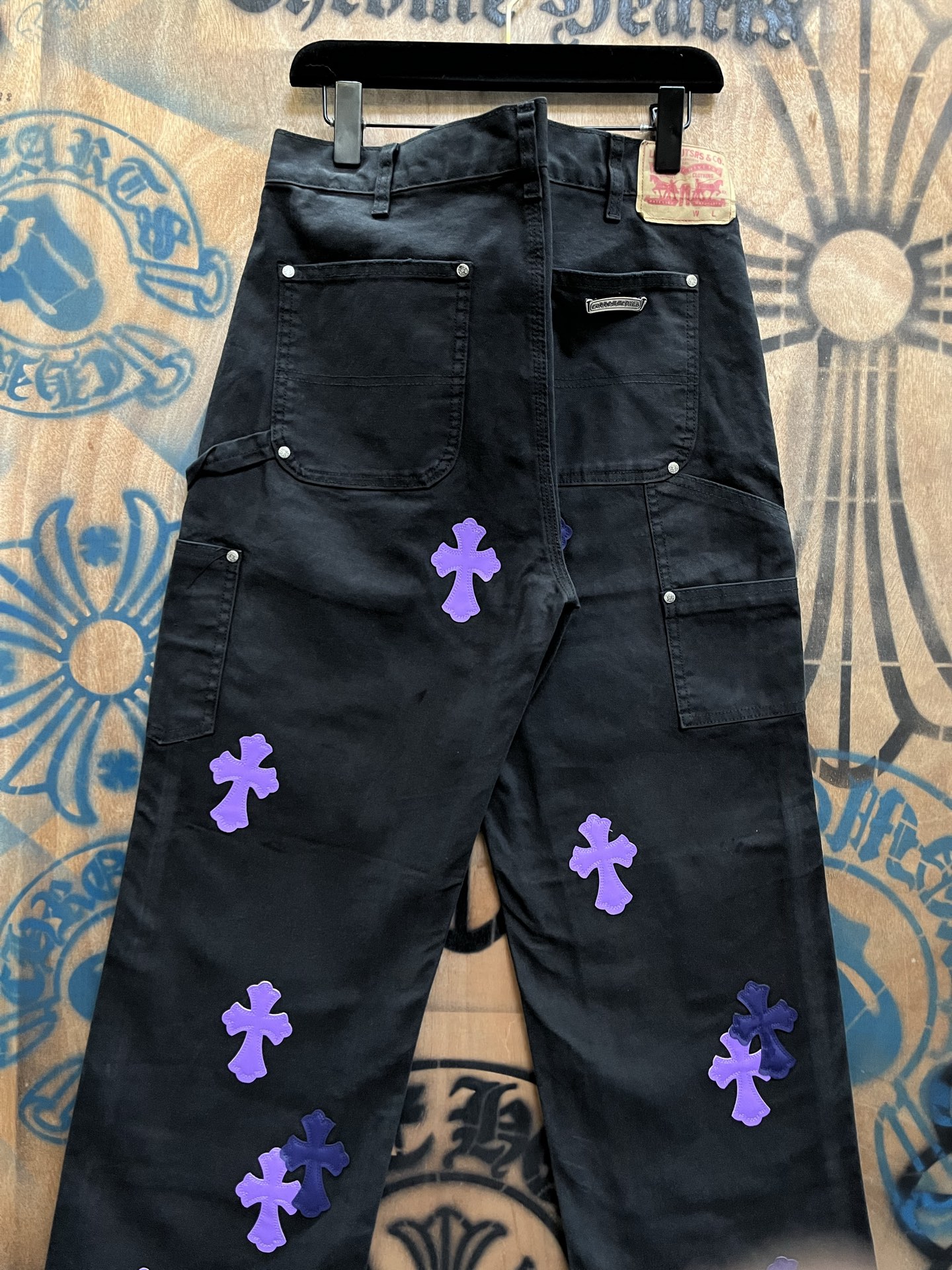 Chrome Hearts patch Print Purple pattern loose casual DENIM JEANS Black クロムハーツ アップリケ プリント パープル パターン ゆったり カジュアル デニムパンツ ブラック