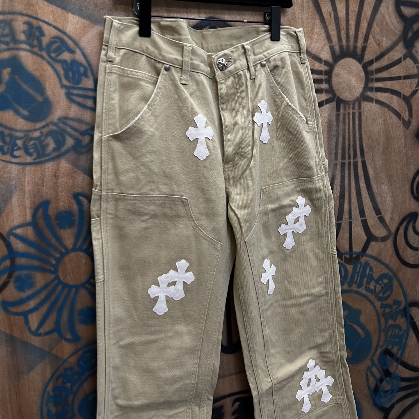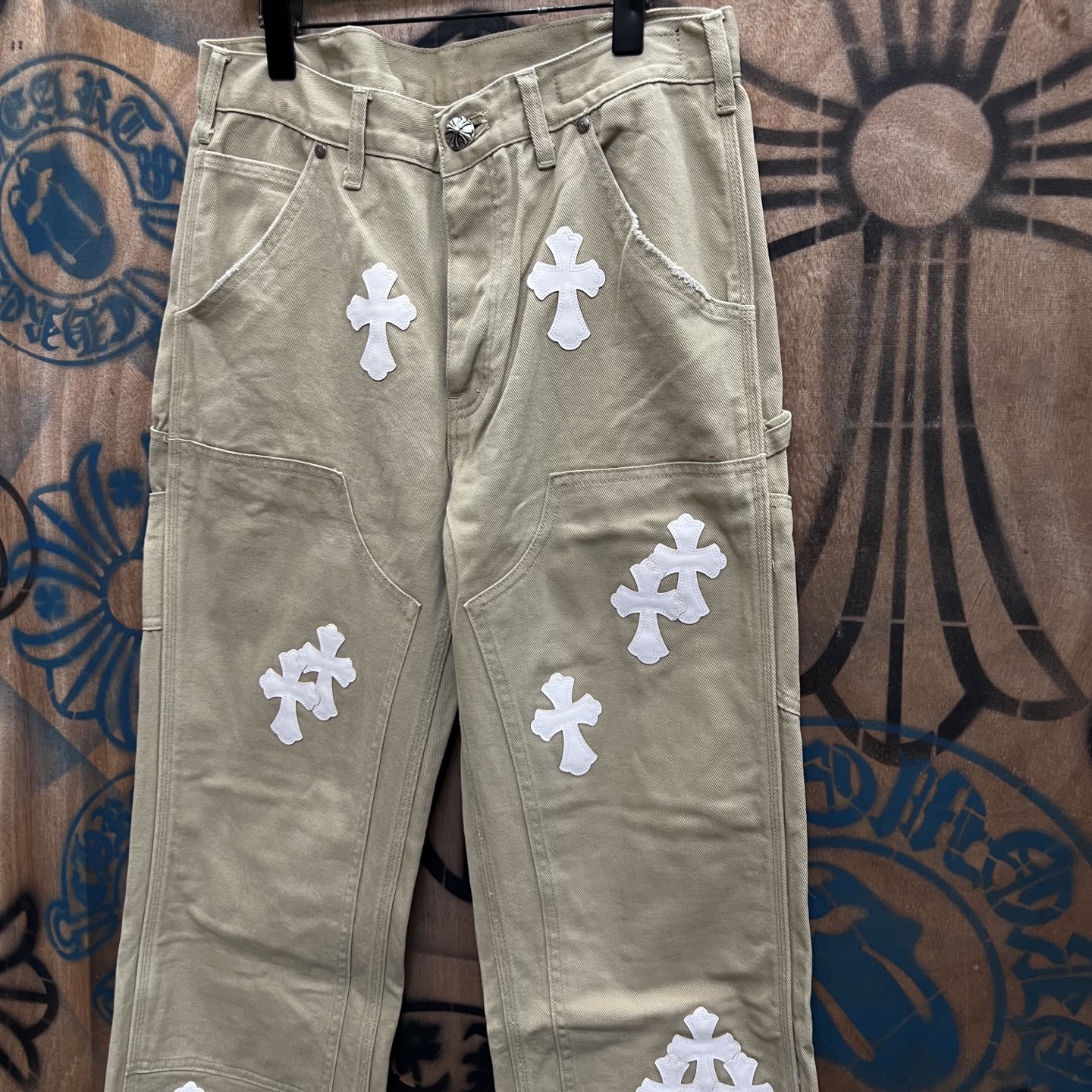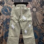 Chrome Hearts patch Print White pattern loose casual DENIM JEANS クロムハーツ アップリケ プリント ホワイト パターン ゆったり カジュアル デニムパンツ