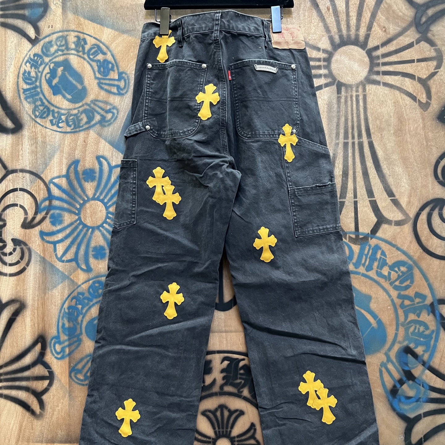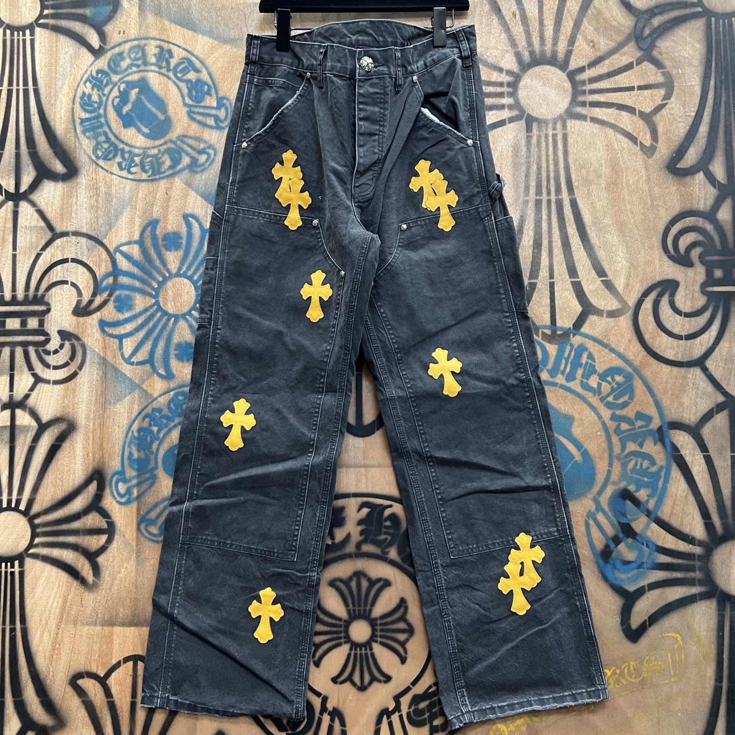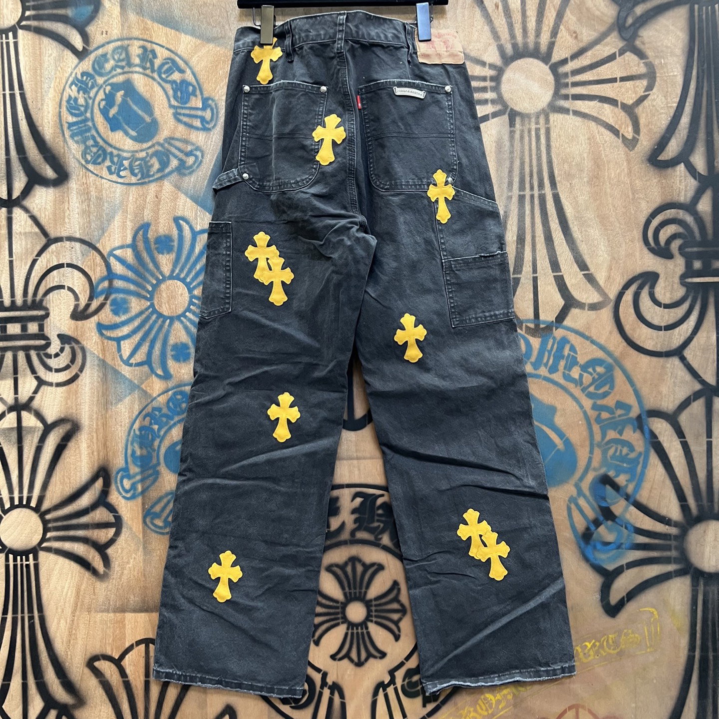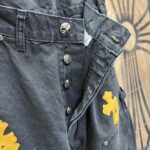 Chrome Hearts patch Print Yellow pattern loose casual DENIM JEANS Washed Black クロムハーツ アップリケ プリント イエロー パターン ゆったり カジュアル デニムパンツ ウォッシュドブラック