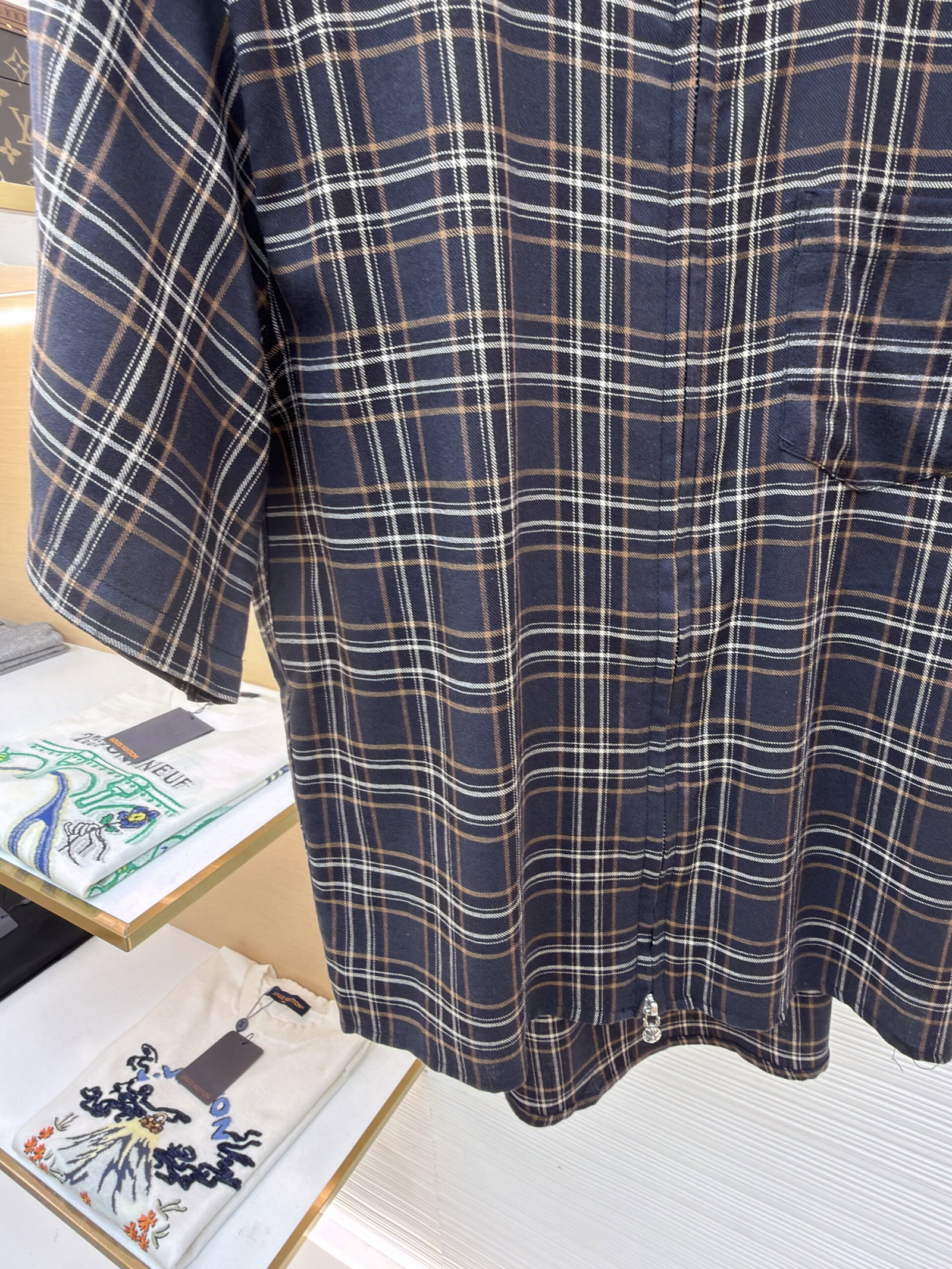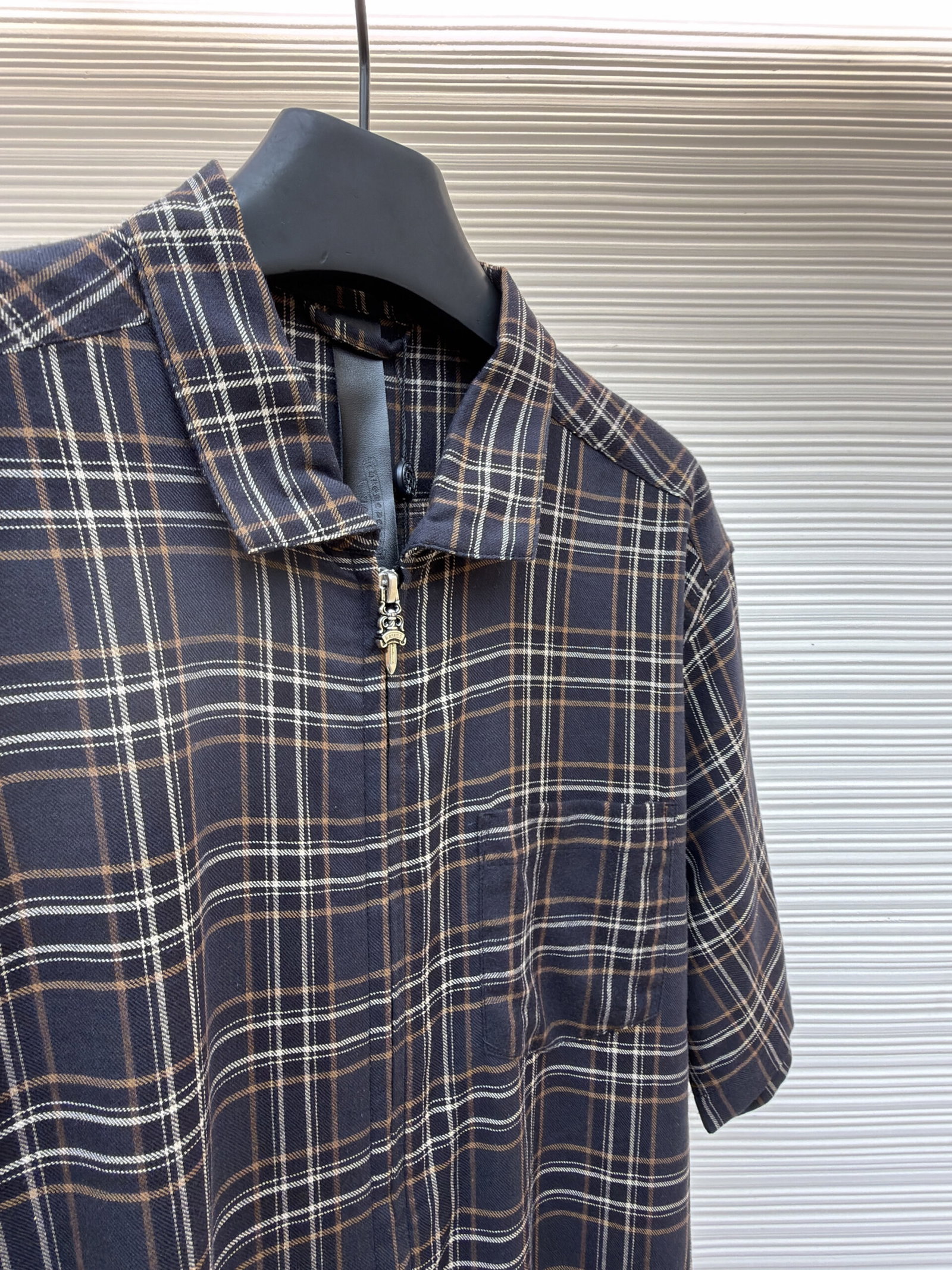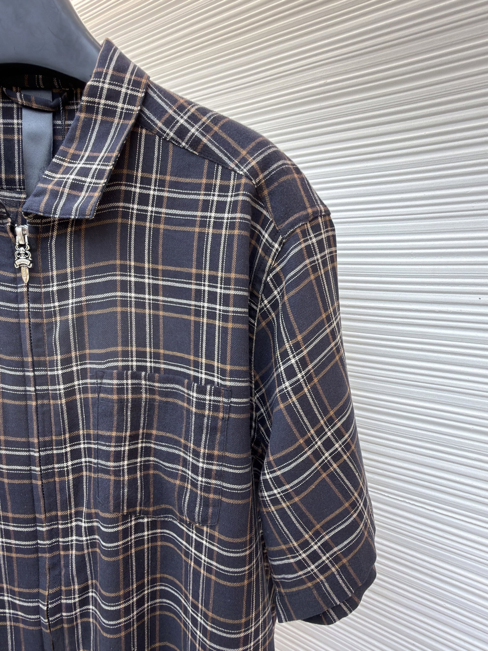 Chrome Hearts Plaid ZIP-UP loose short-sleeved shirt クロムハーツ 格子柄 ジップアップ ゆったり 半袖カジュアルシャツ