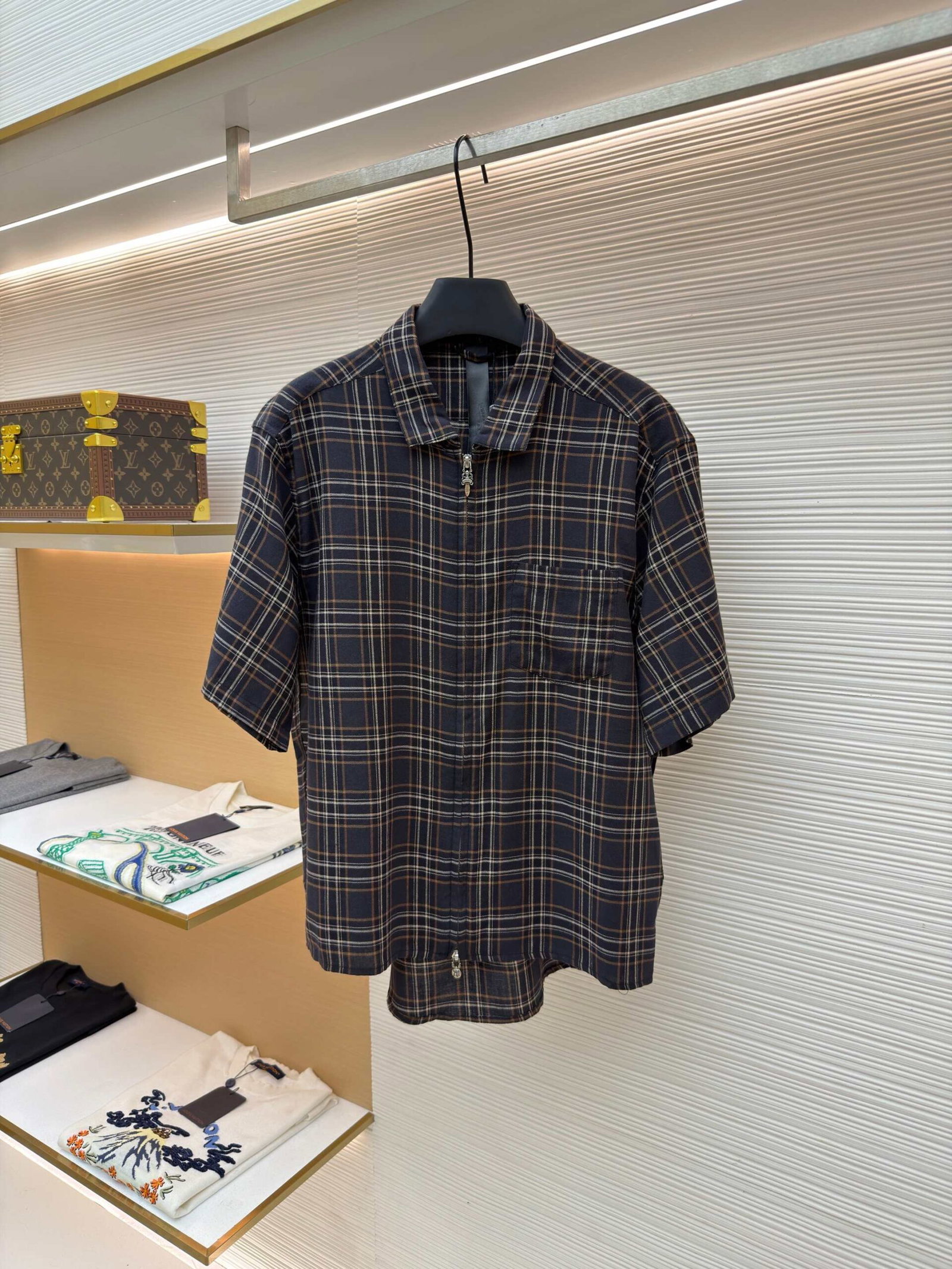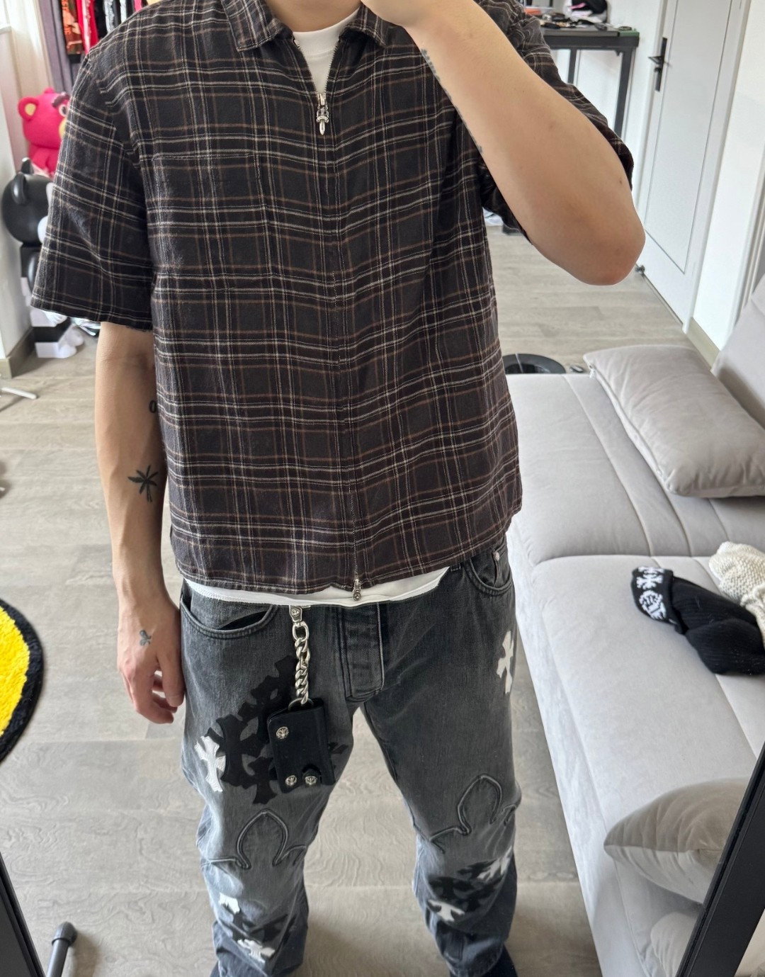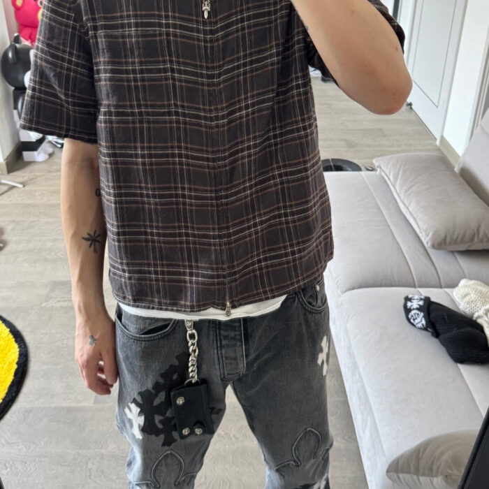 Chrome Hearts Plaid ZIP-UP loose short-sleeved shirt クロムハーツ 格子柄 ジップアップ ゆったり 半袖カジュアルシャツ