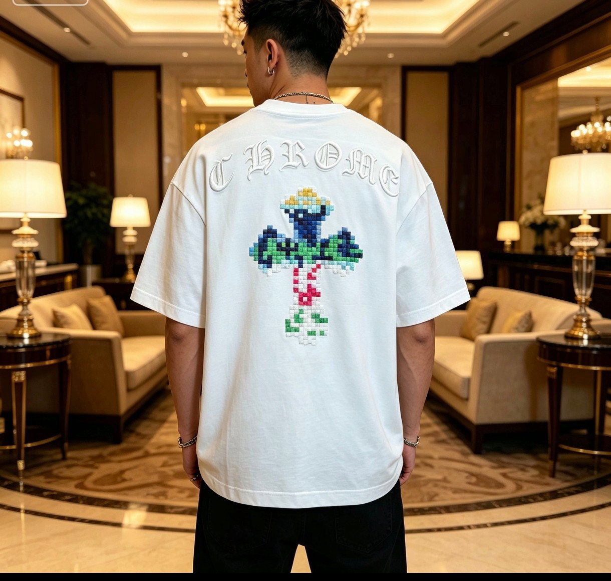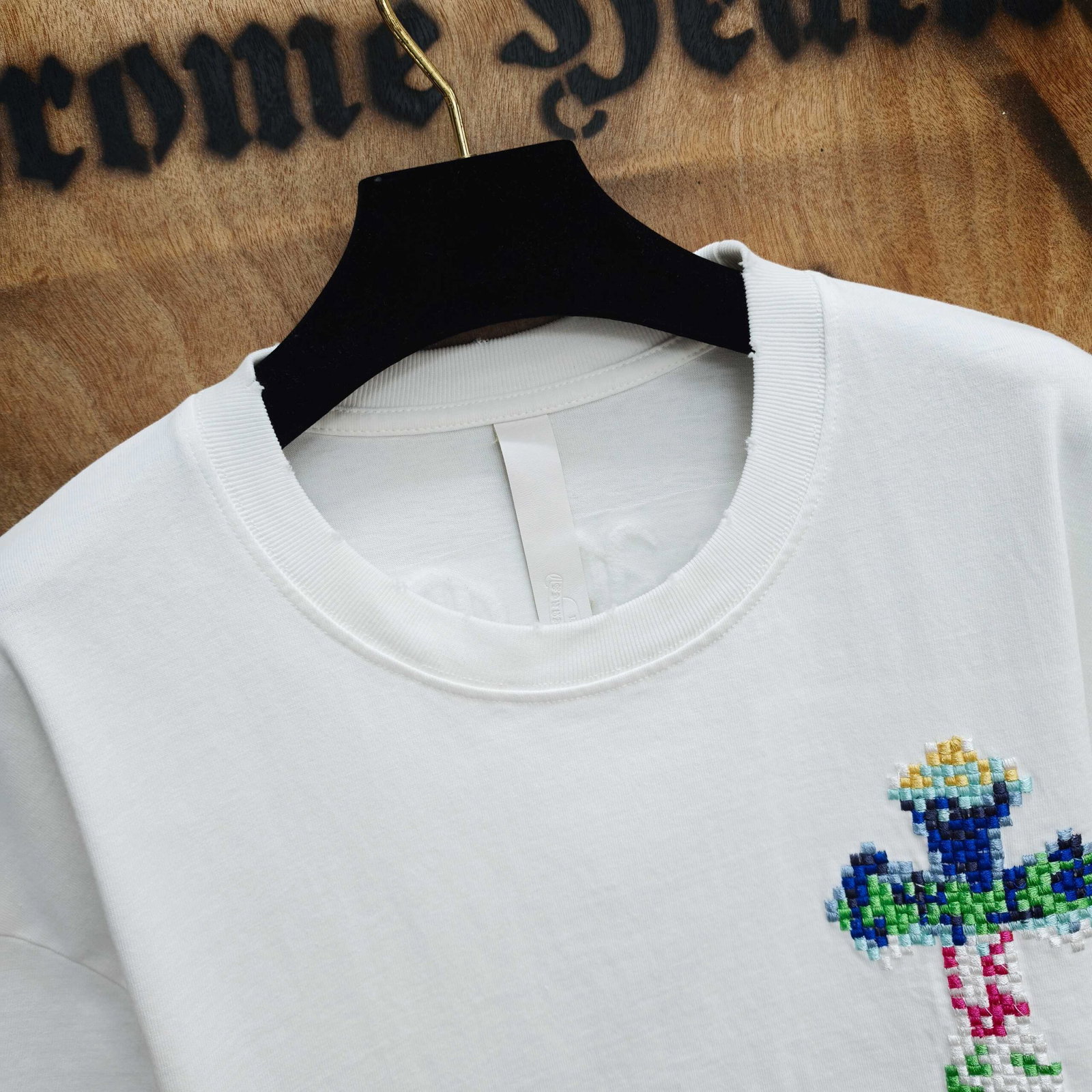 Chrome Hearts pocket Embroidery pattern loose Round neck T-shirt White クロムハーツ ポケット 刺繍 パターン ゆったり クルーネック Tシャツ ホワイト