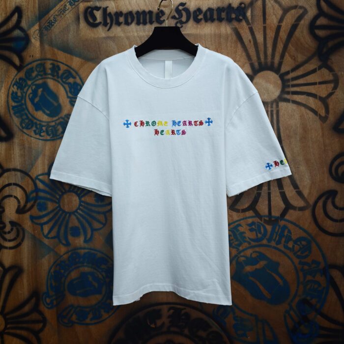 Chrome Hearts patch Embroidery color logo pattern loose Round neck T-shirt White クロムハーツ アップリケ 刺繍 カラー logo パターン ゆったり クルーネック Tシャツ ホワイト