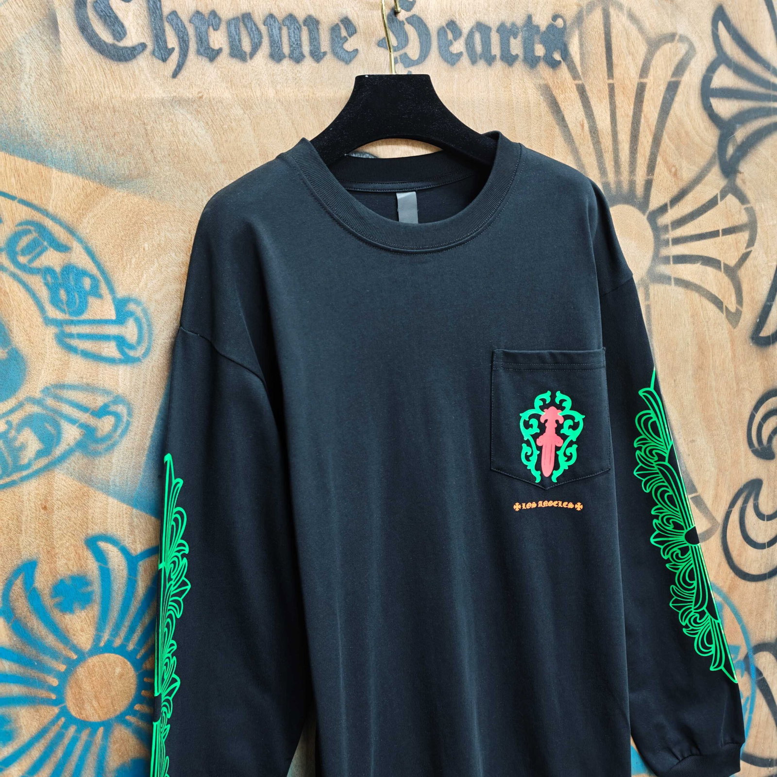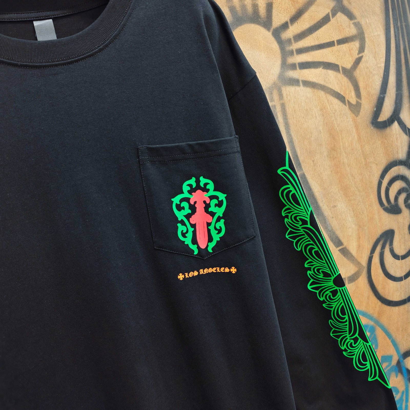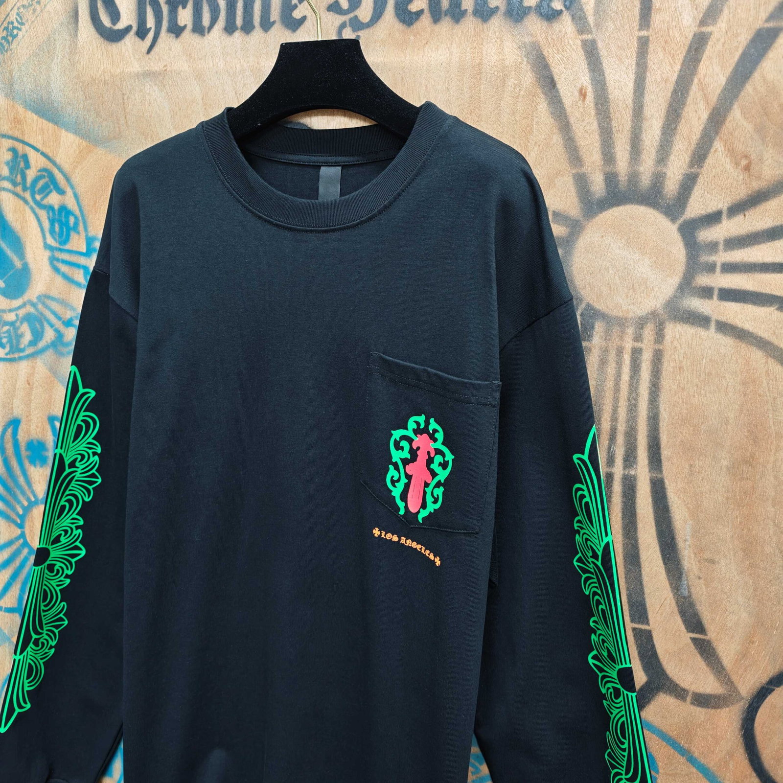 Chrome Hearts pocket Print Green pattern Round neck long sleeves T-shirt Black クロムハーツ ポケット プリント グリーン パターン クルーネック 長袖 Tシャツ ブラック