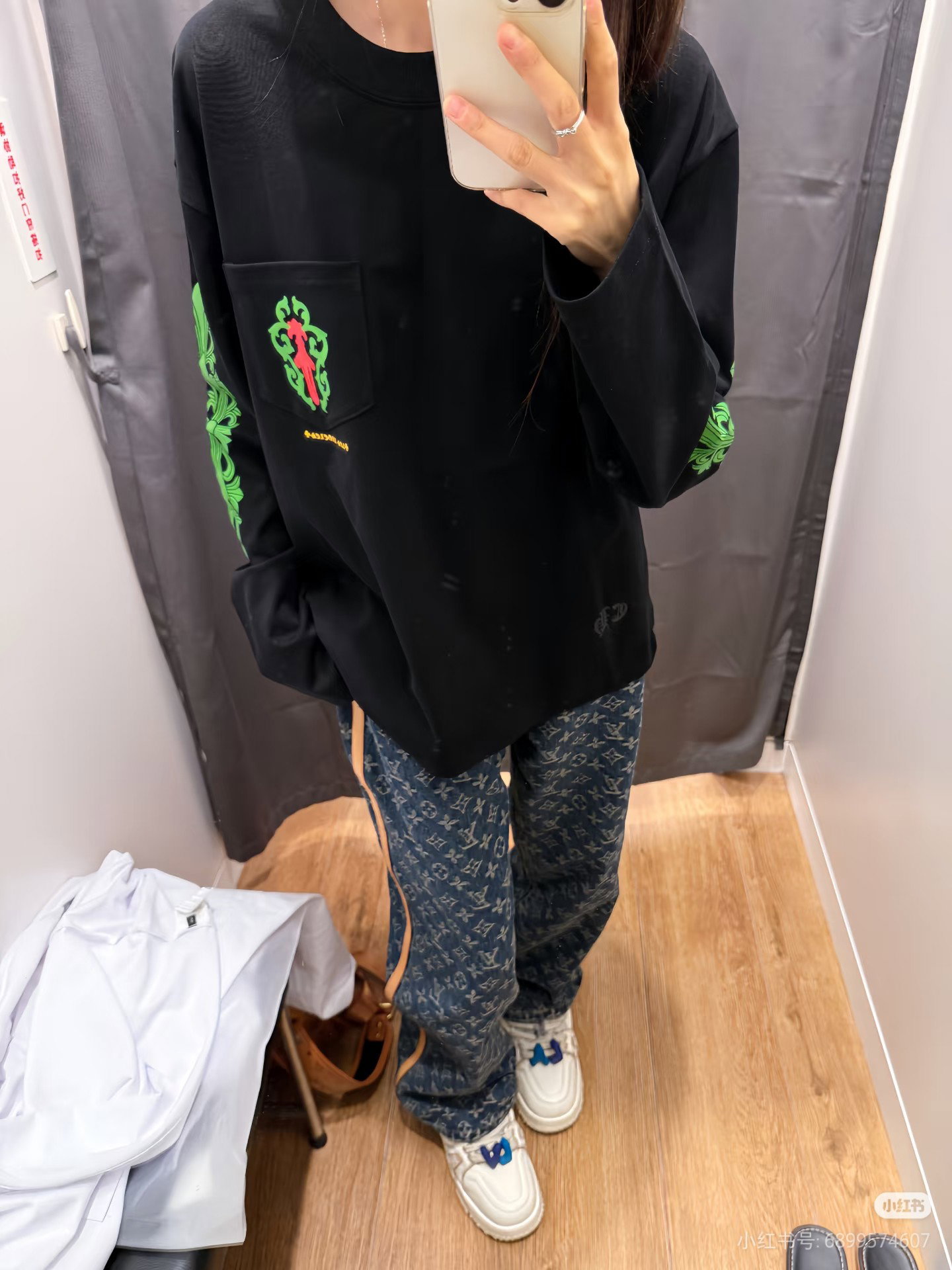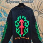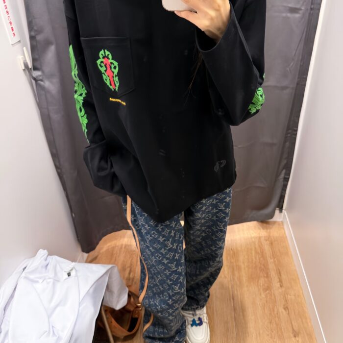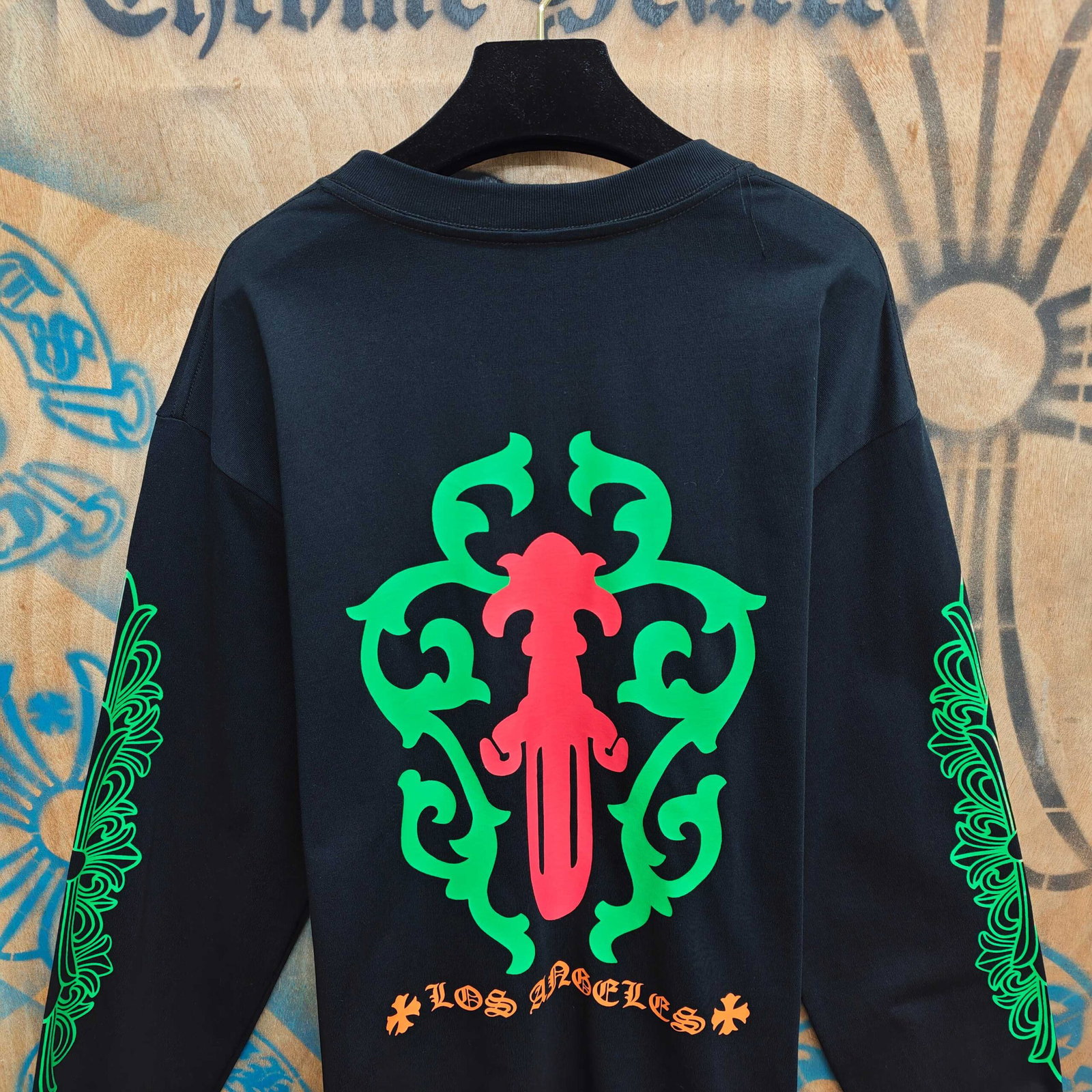 Chrome Hearts pocket Print Green pattern Round neck long sleeves T-shirt Black クロムハーツ ポケット プリント グリーン パターン クルーネック 長袖 Tシャツ ブラック