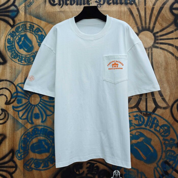 Chrome Hearts pocket Print orange pattern loose Round neck T-shirt White クロムハーツ ポケット プリント オレンジ色 パターン ゆったり クルーネック Tシャツ ホワイト