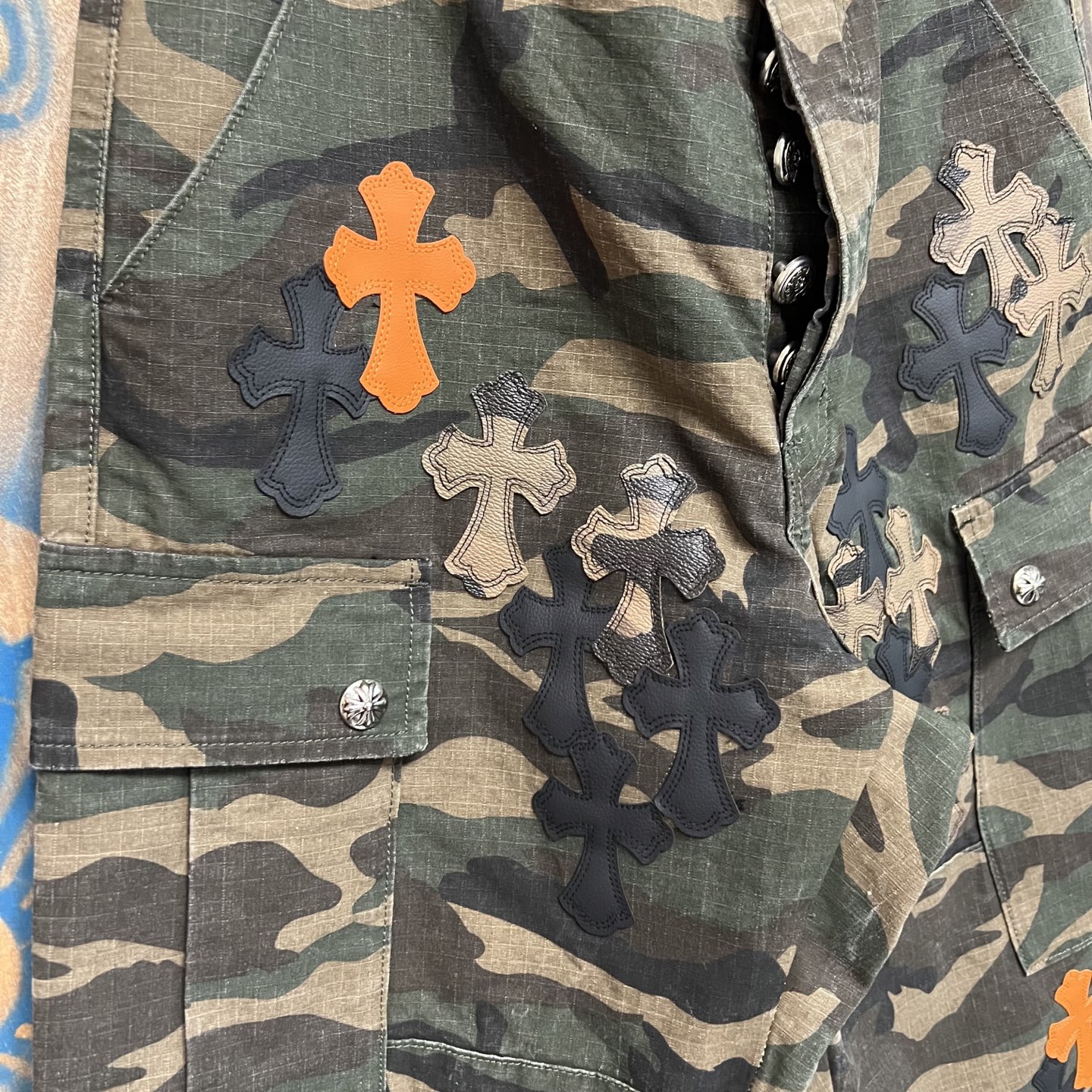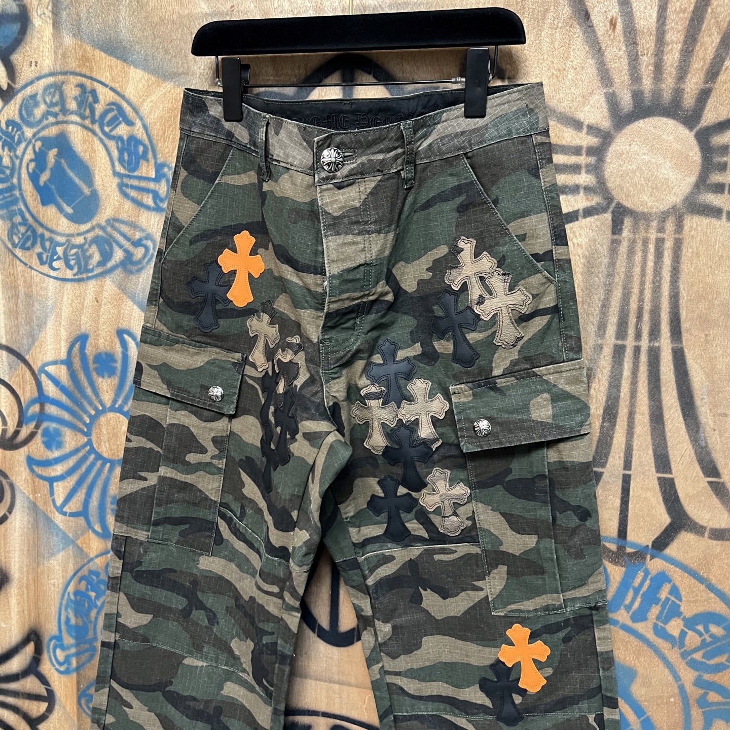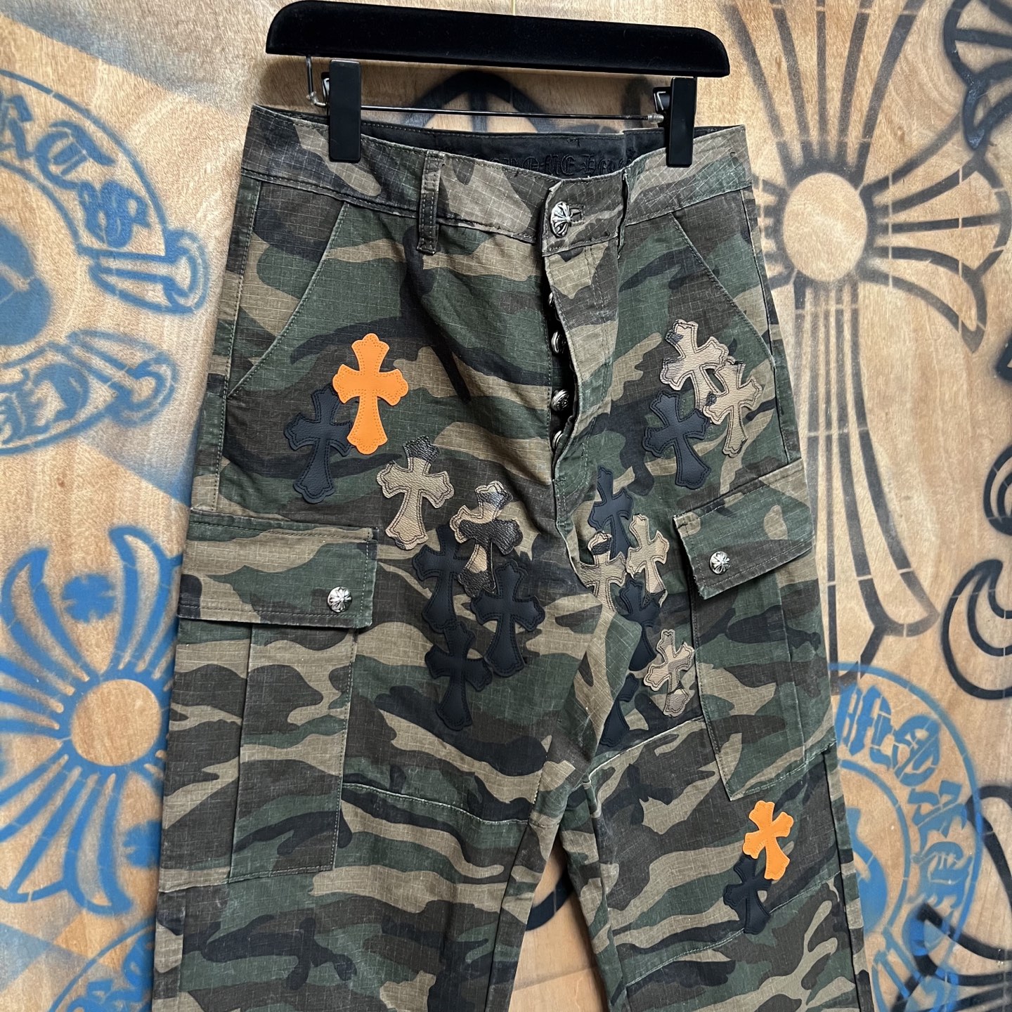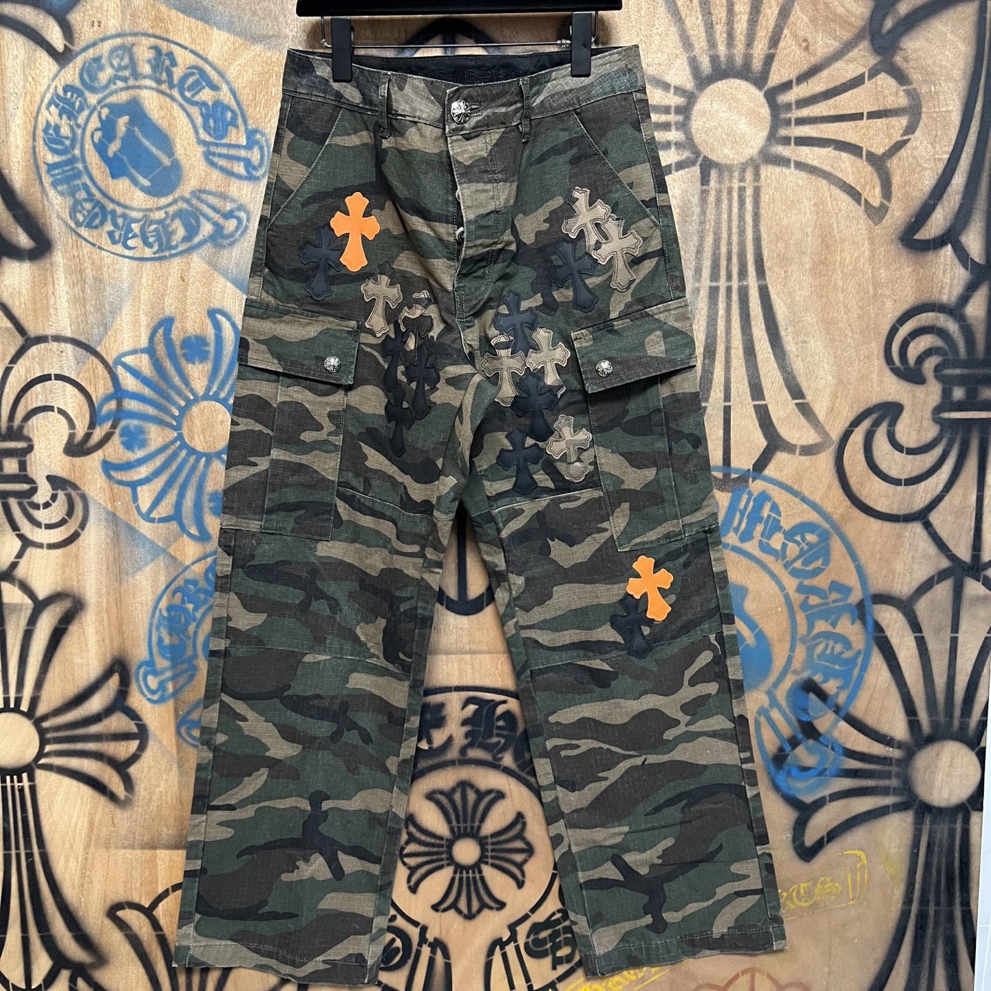 Chrome Hearts pocket Print orange pattern loose casual workwear DENIM JEANS camouflage クロムハーツ ポケット プリント オレンジ色 パターン ゆったり カジュアル ワークウェア デニムパンツ 迷彩柄