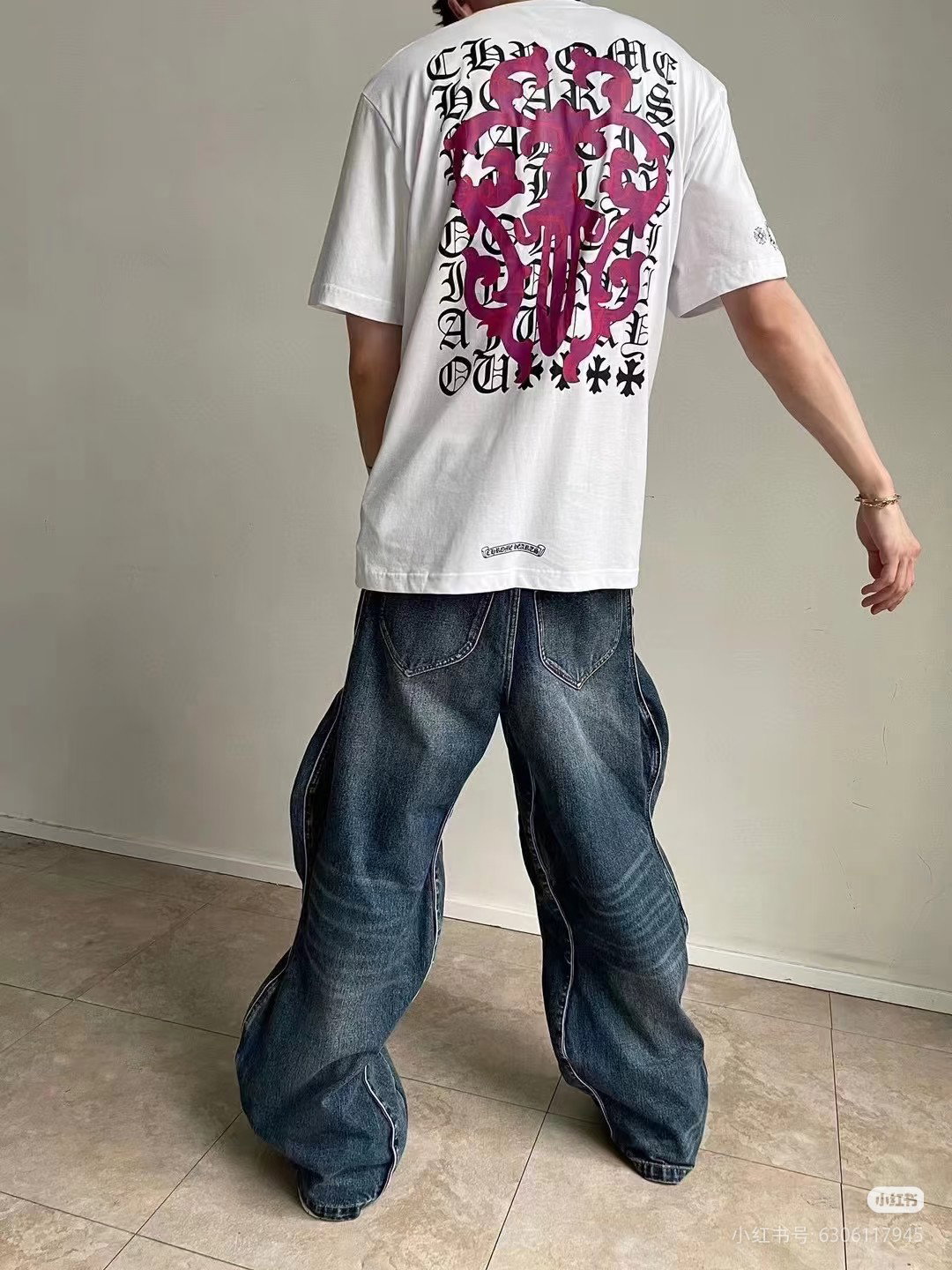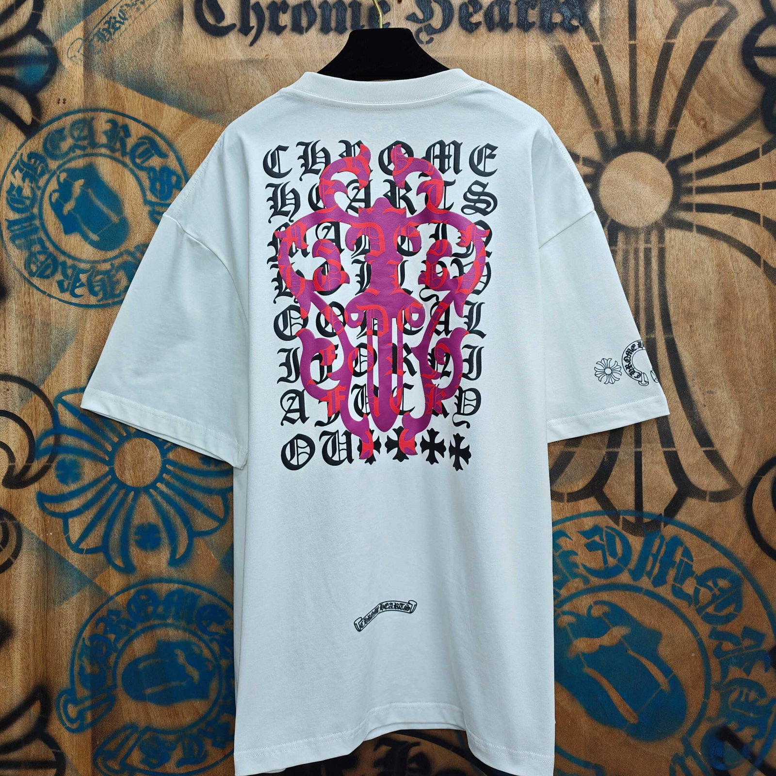Chrome Hearts patch Embroidery pattern loose Round neck T-shirt Black クロムハーツ アップリケ 刺繍 パターン ゆったり クルーネック Tシャツ ブラック