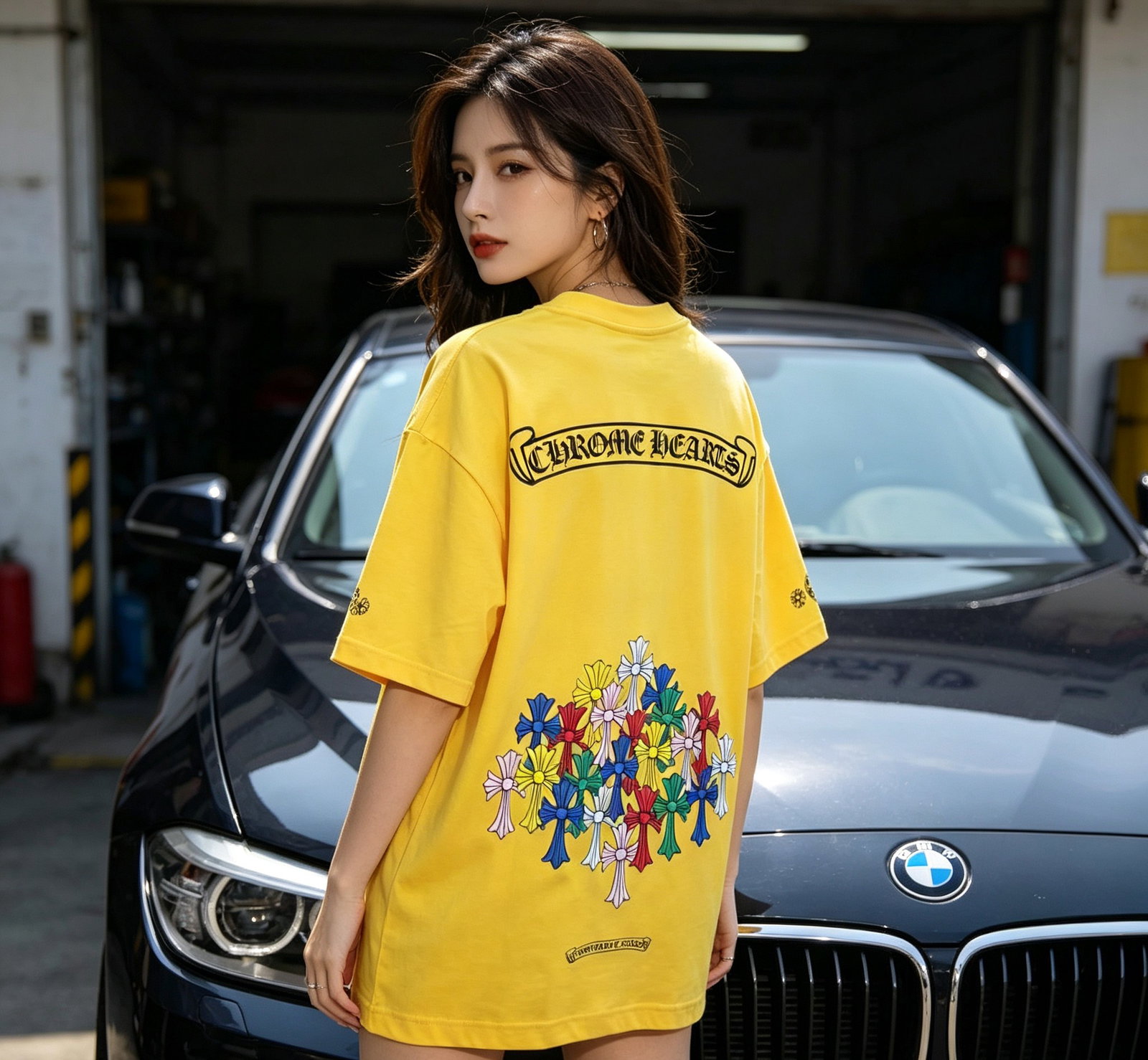 Chrome Hearts pocket Print pattern loose Round neck T-shirt Yellow クロムハーツ ポケット プリント パターン ゆったり クルーネック Tシャツ イエロー