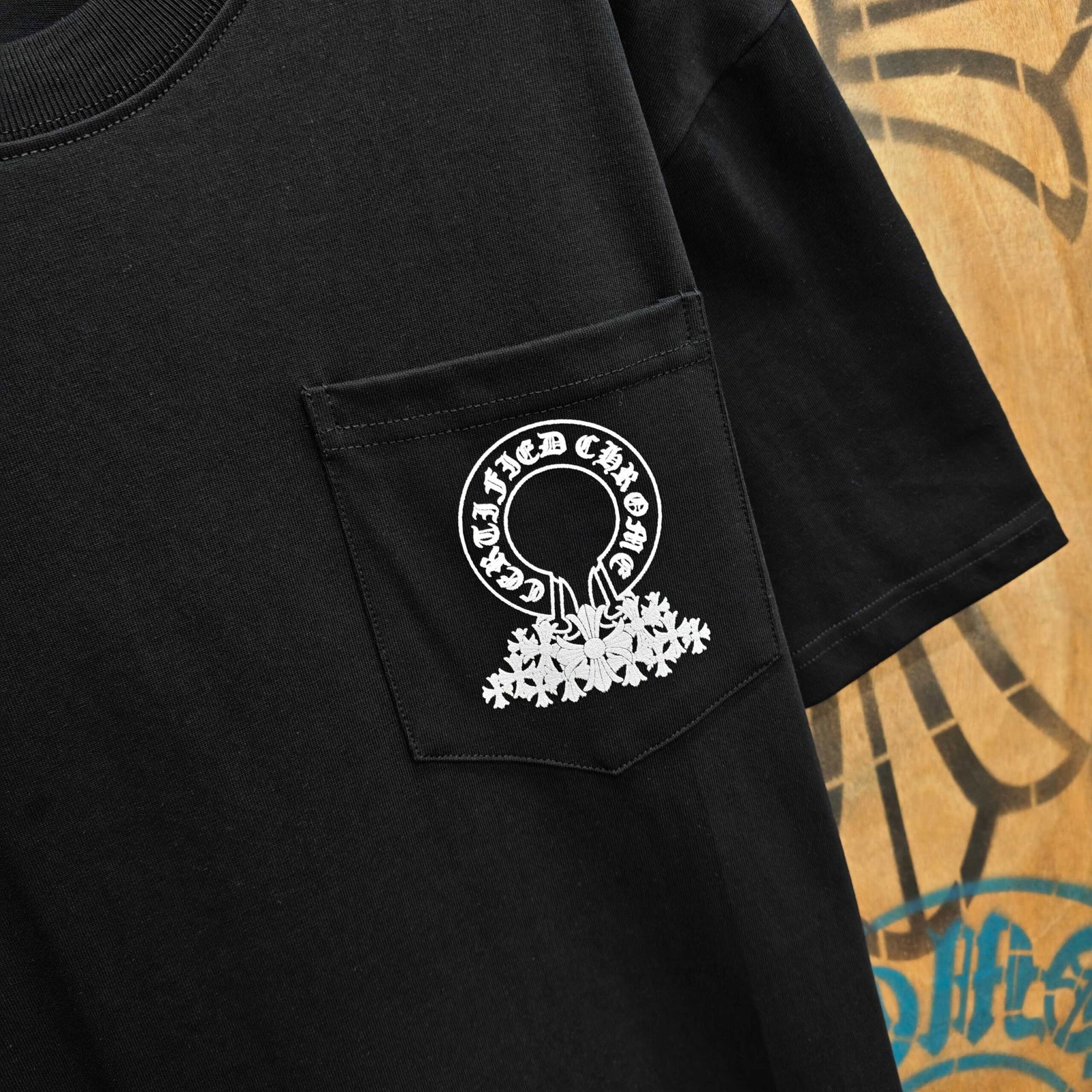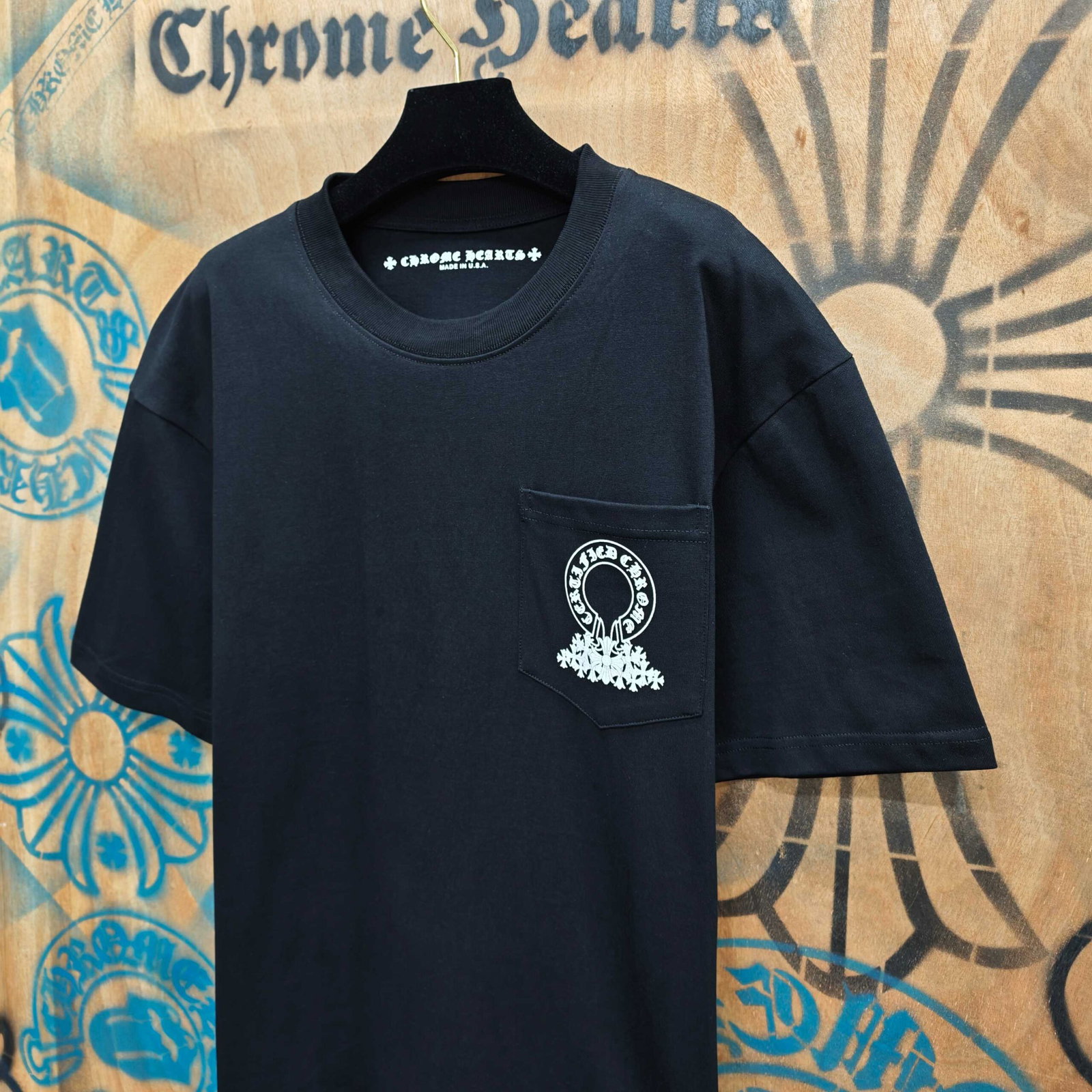 Chrome Hearts pocket Print Pink pattern loose Round neck T-shirt Black クロムハーツ ポケット プリント パターン ゆったり クルーネック Tシャツ ブラック