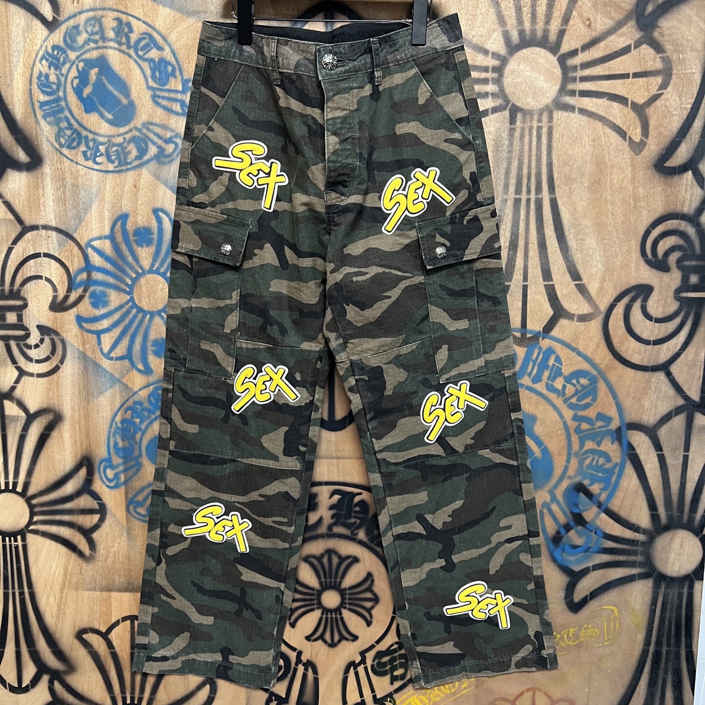 Chrome Hearts pocket Print Yellow pattern loose casual workwear DENIM JEANS camouflage クロムハーツ ポケット プリント イエロー パターン ゆったり カジュアル ワークウェア デニムパンツ 迷彩柄