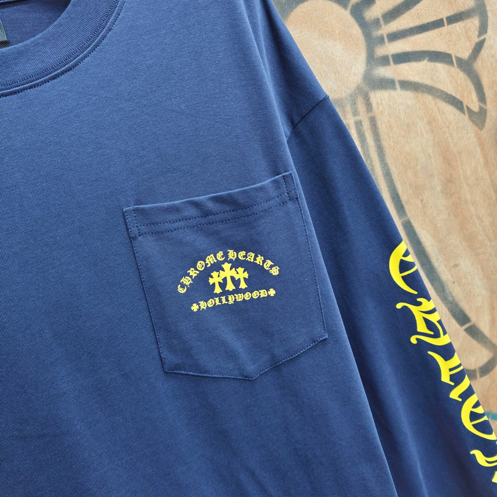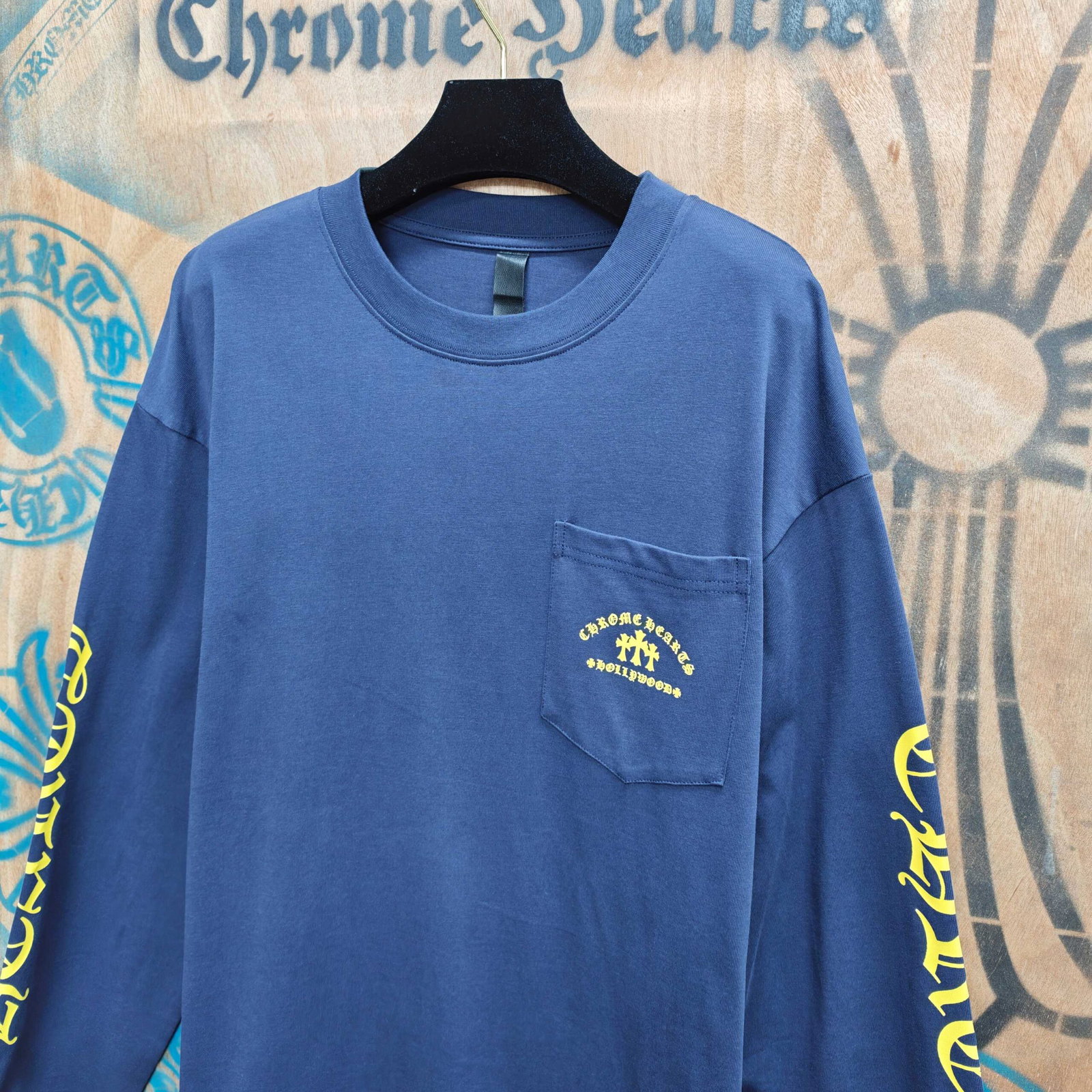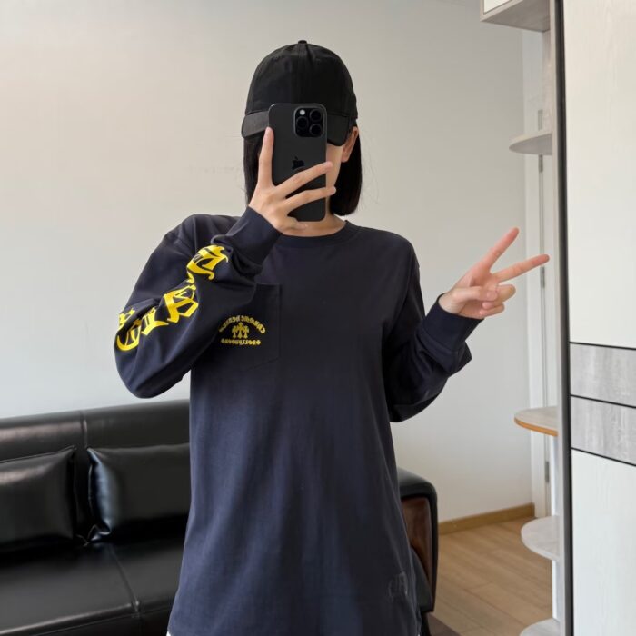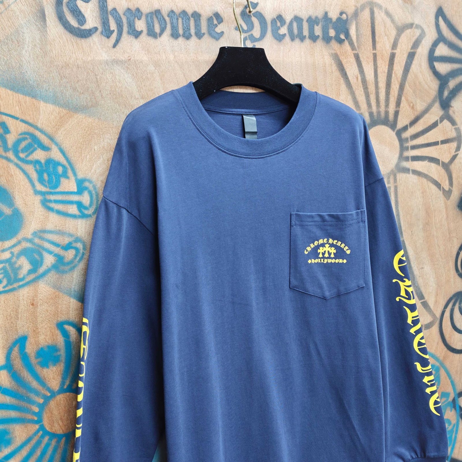 Chrome Hearts pocket Print Yellow pattern Round neck long sleeves T-shirt Blue クロムハーツ ポケット プリント イエロー パターン クルーネック 長袖 Tシャツ ブルー