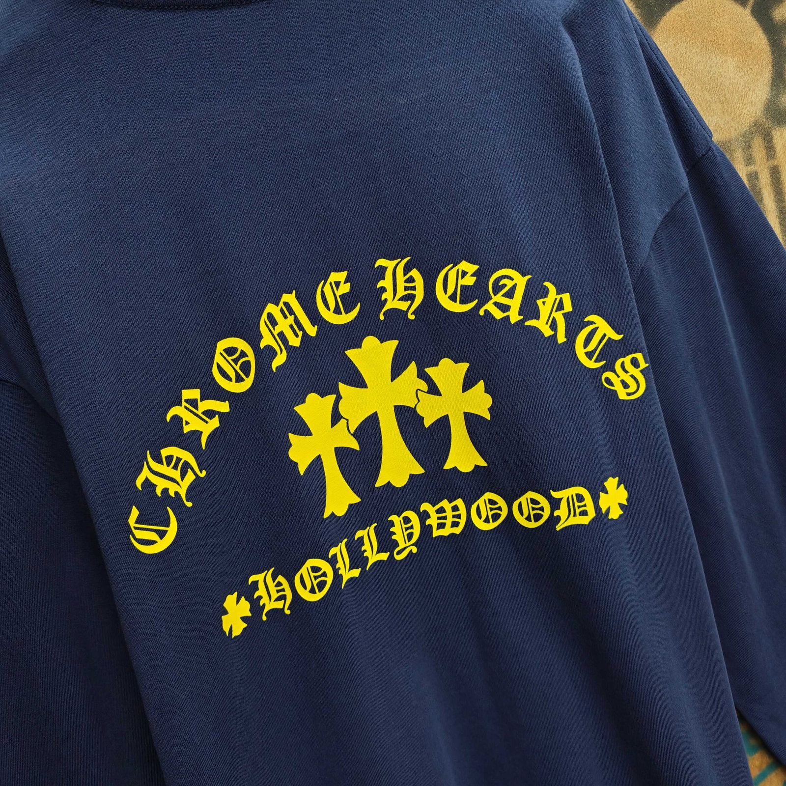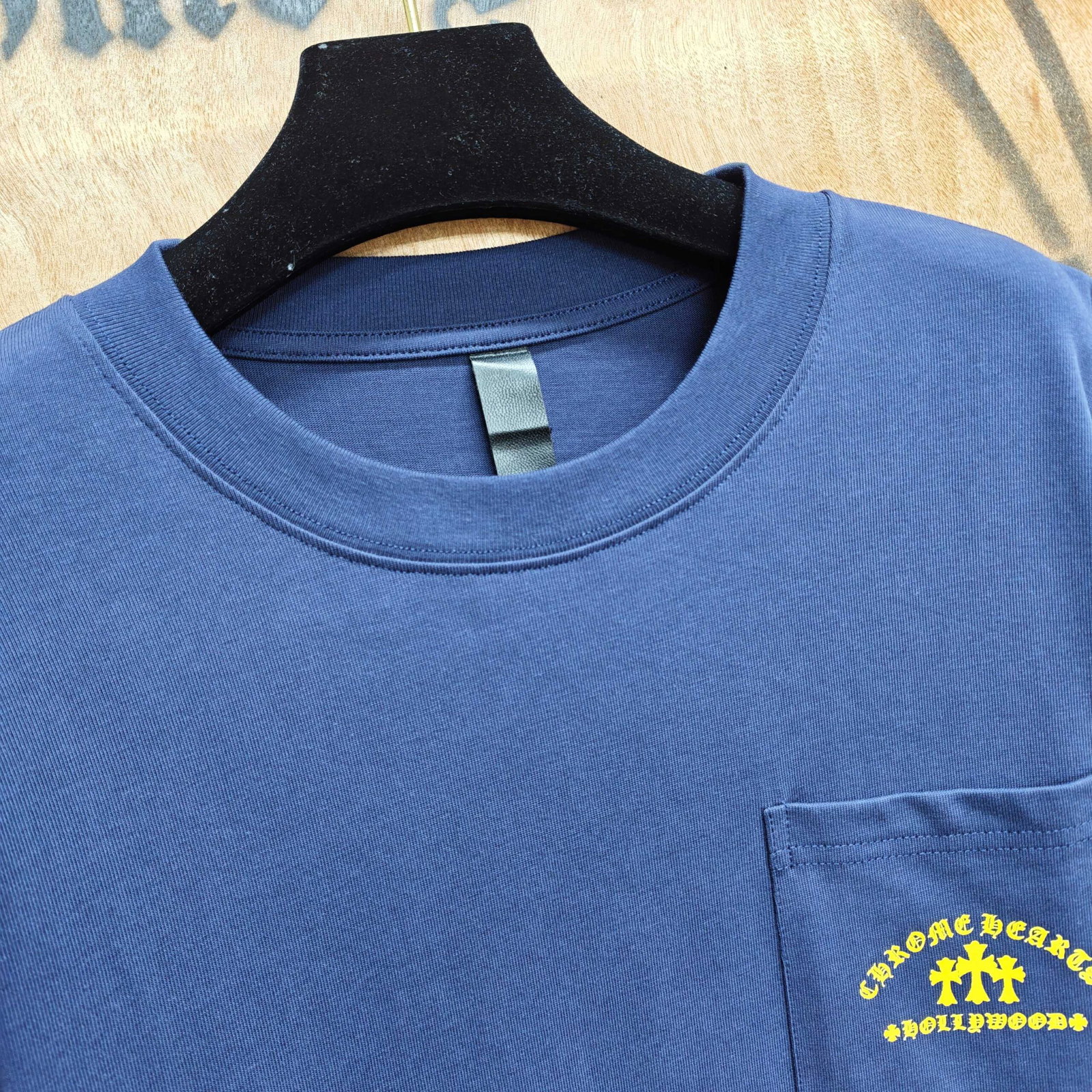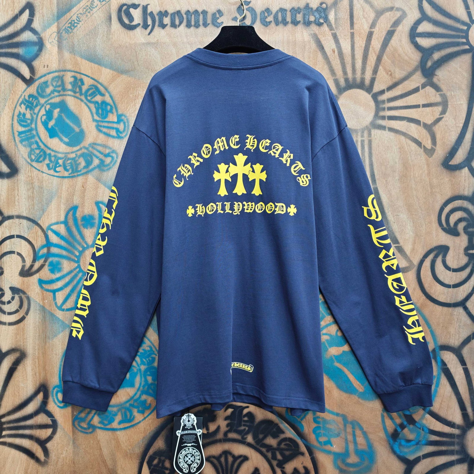 Chrome Hearts pocket Print Yellow pattern Round neck long sleeves T-shirt Blue クロムハーツ ポケット プリント イエロー パターン クルーネック 長袖 Tシャツ ブルー