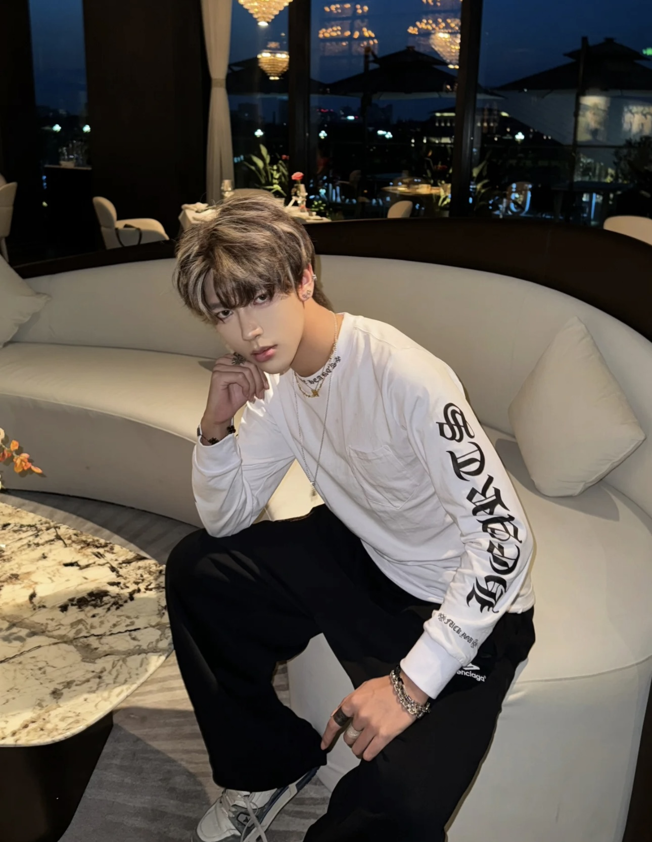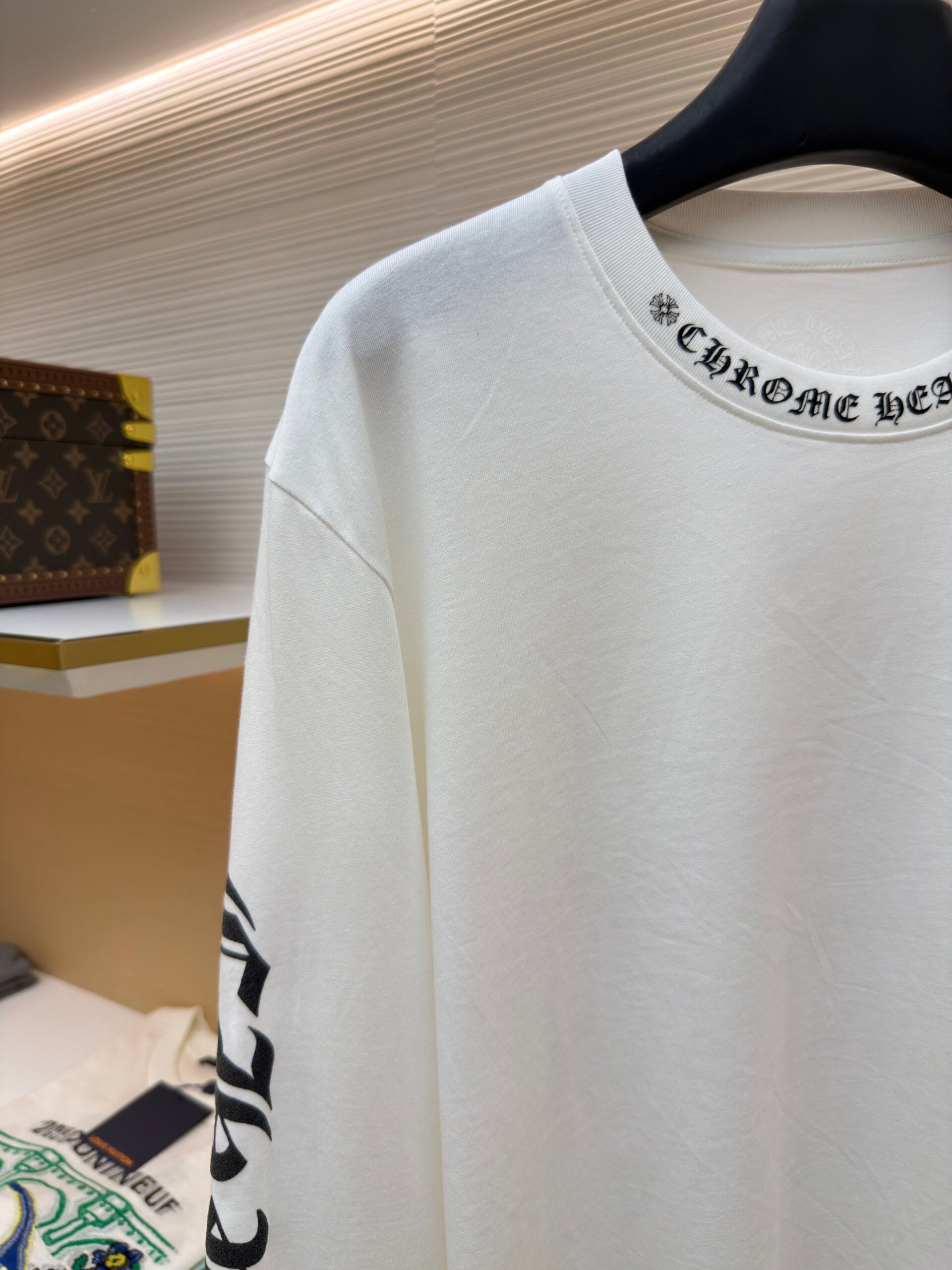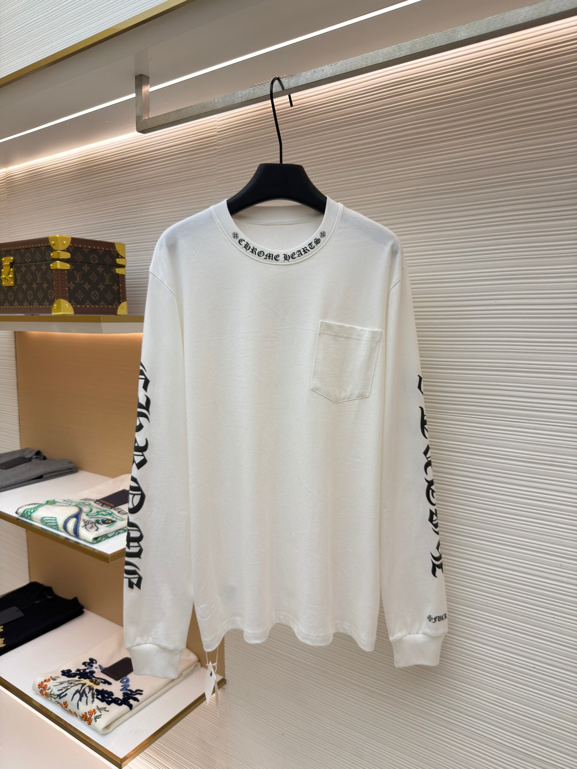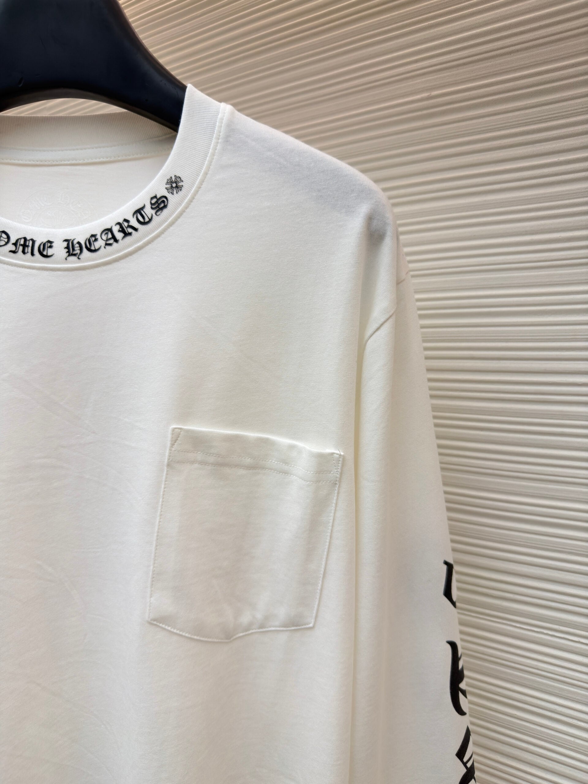 Chrome Hearts pocket Round neck Black Print pattern long sleeves T-shirt White クロムハーツ ポケット クルーネック ブラック プリント パターン 長袖 Tシャツ ホワイト
