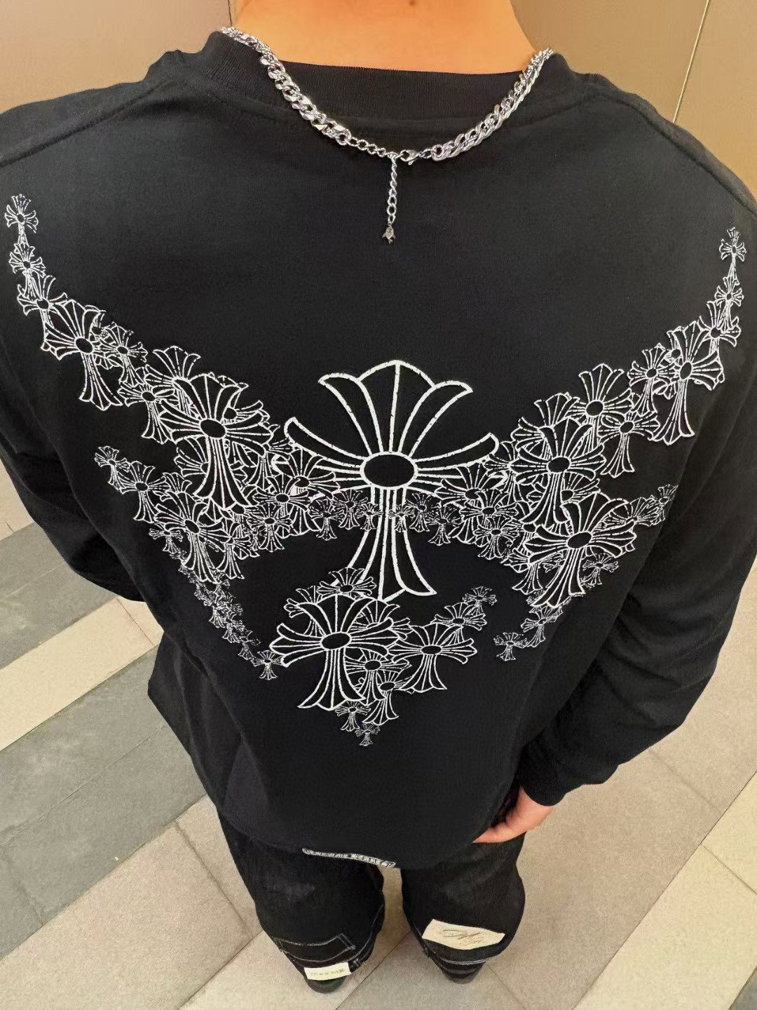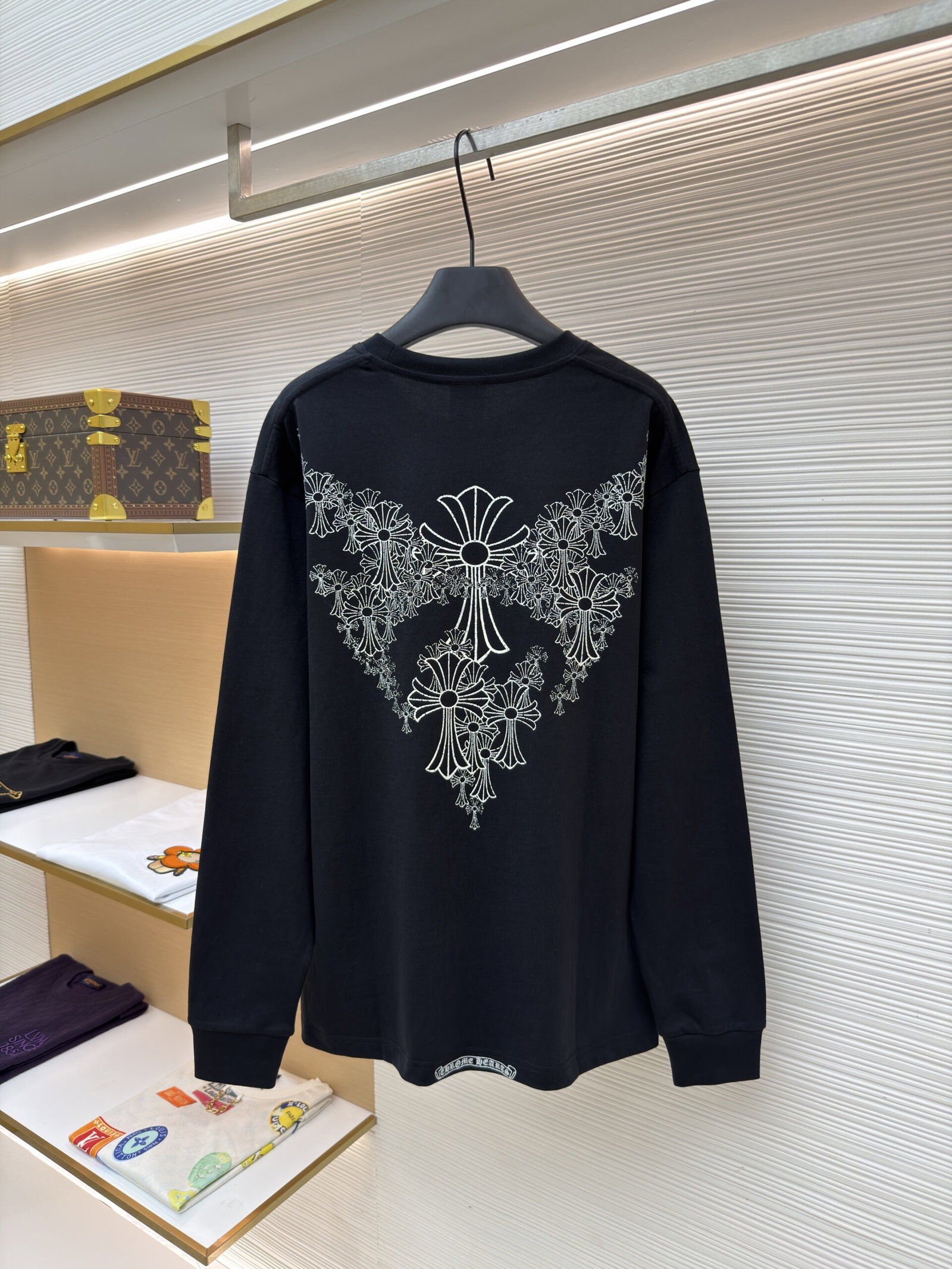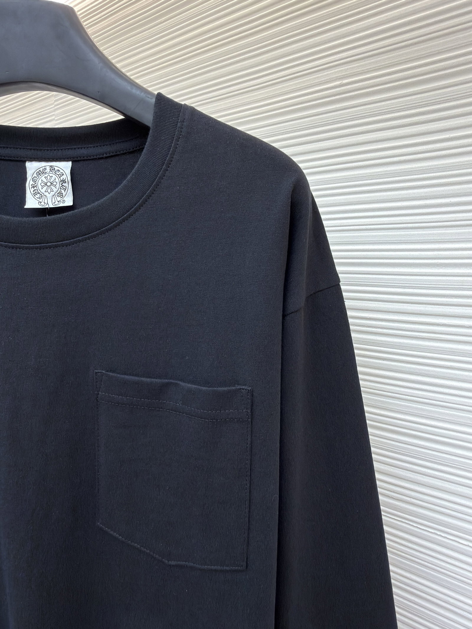 Chrome Hearts pocket Round neck Embroidery pattern long sleeves T-shirt Black クロムハーツ ポケット クルーネック 刺繍 パターン 長袖 Tシャツ ブラック