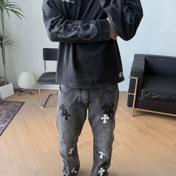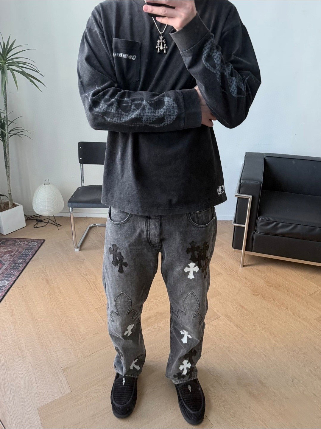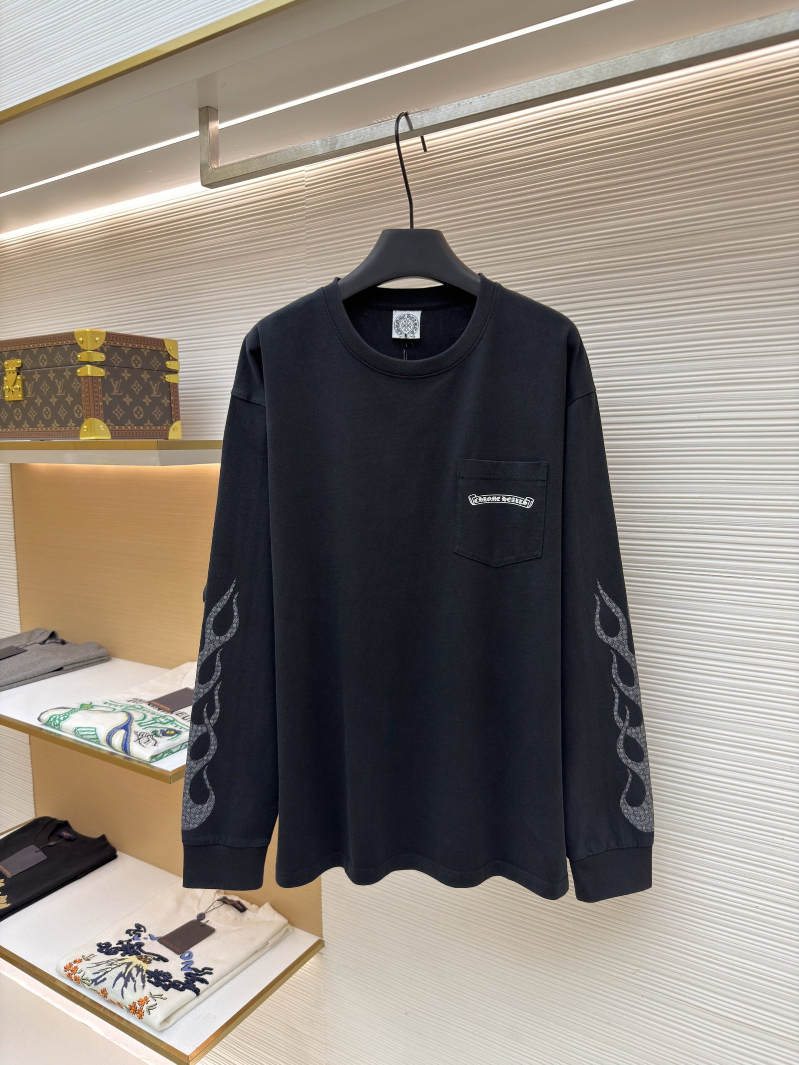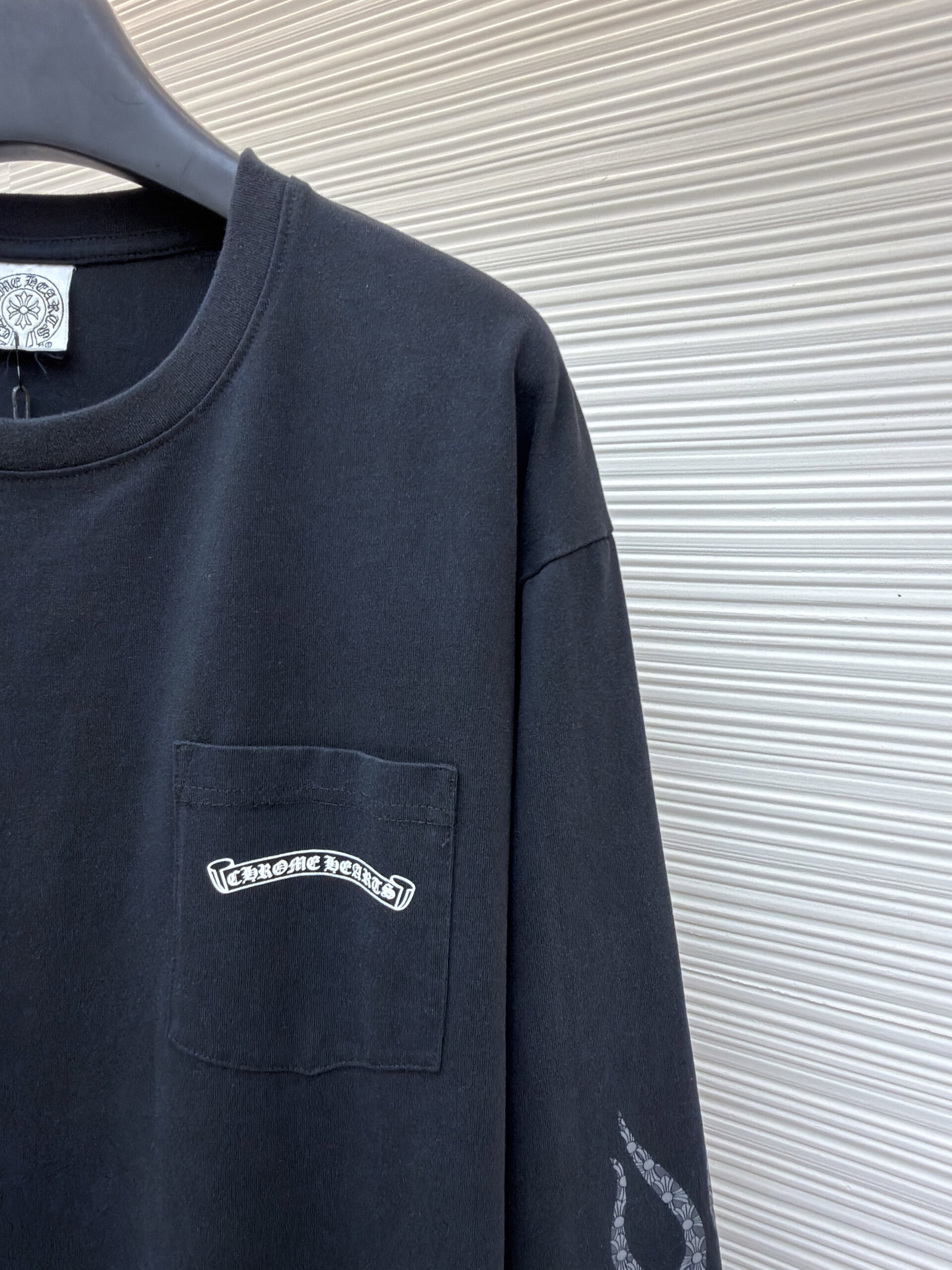 Chrome Hearts pocket Round neck Print pattern long sleeves T-shirt Black クロムハーツ ポケット クルーネック プリント パターン 長袖 Tシャツ ブラック