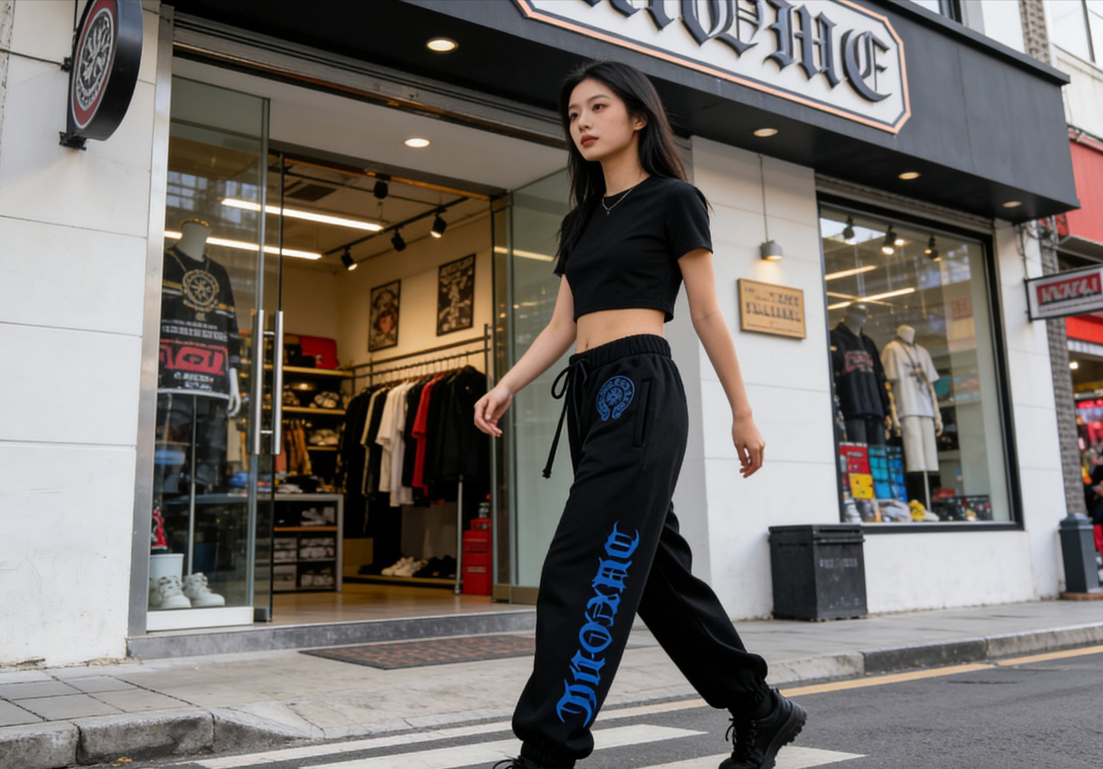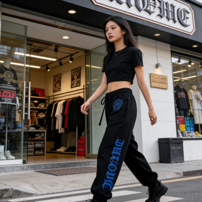 Chrome Hearts Print Blue pattern loose casual sweatpants Black クロムハーツ プリント ブルー パターン ゆったり カジュアル スウェットパンツ ブラック