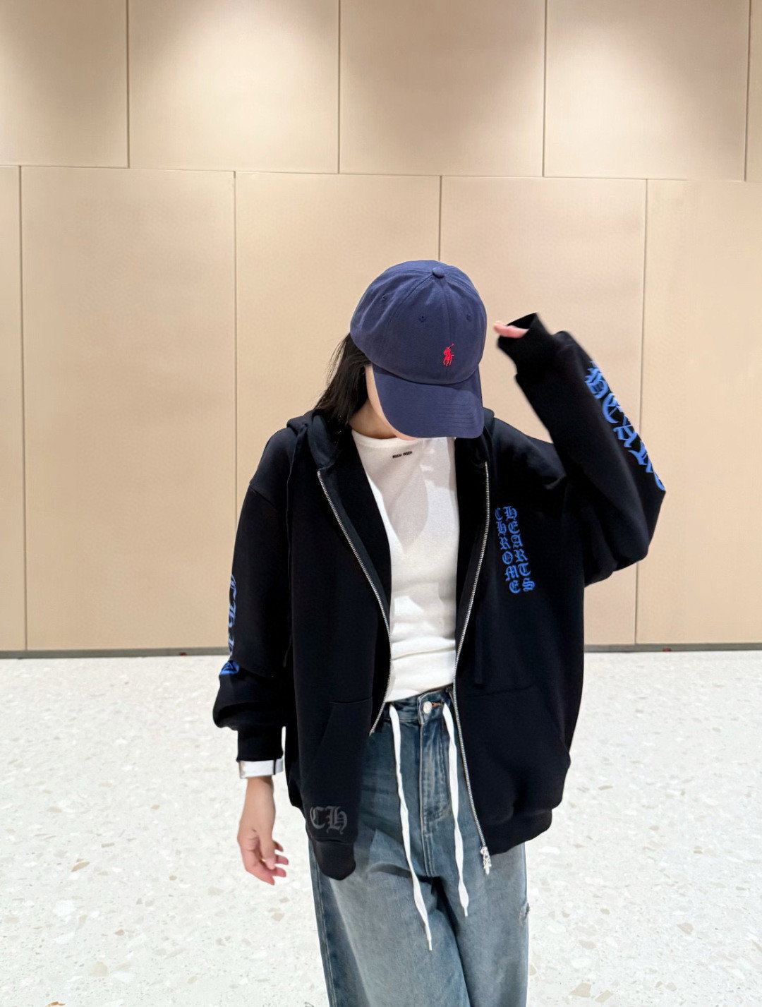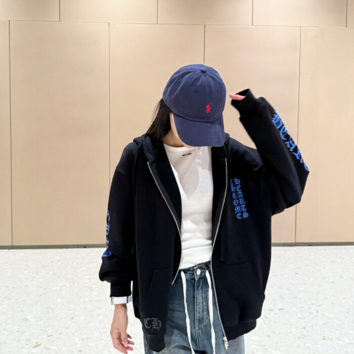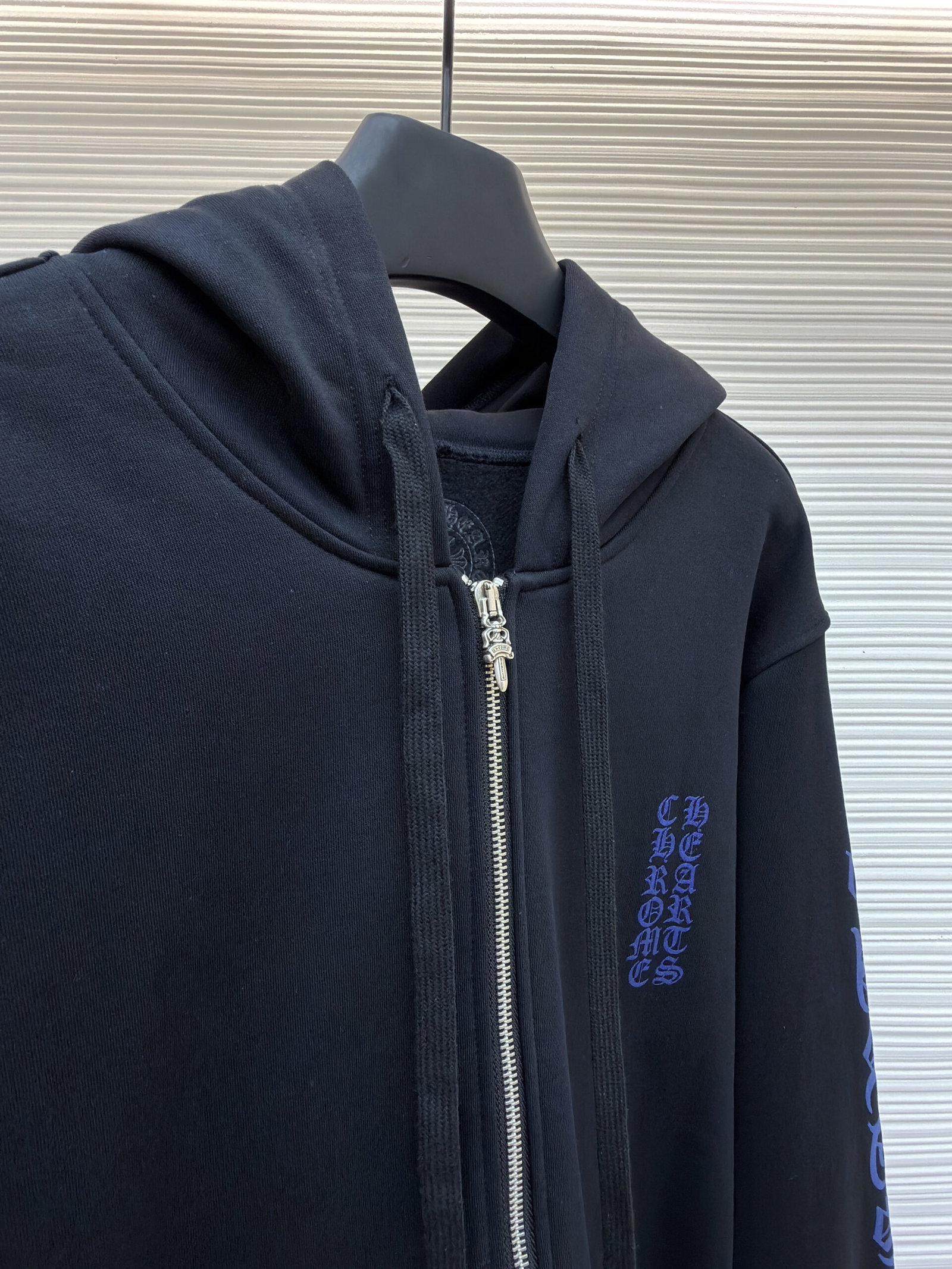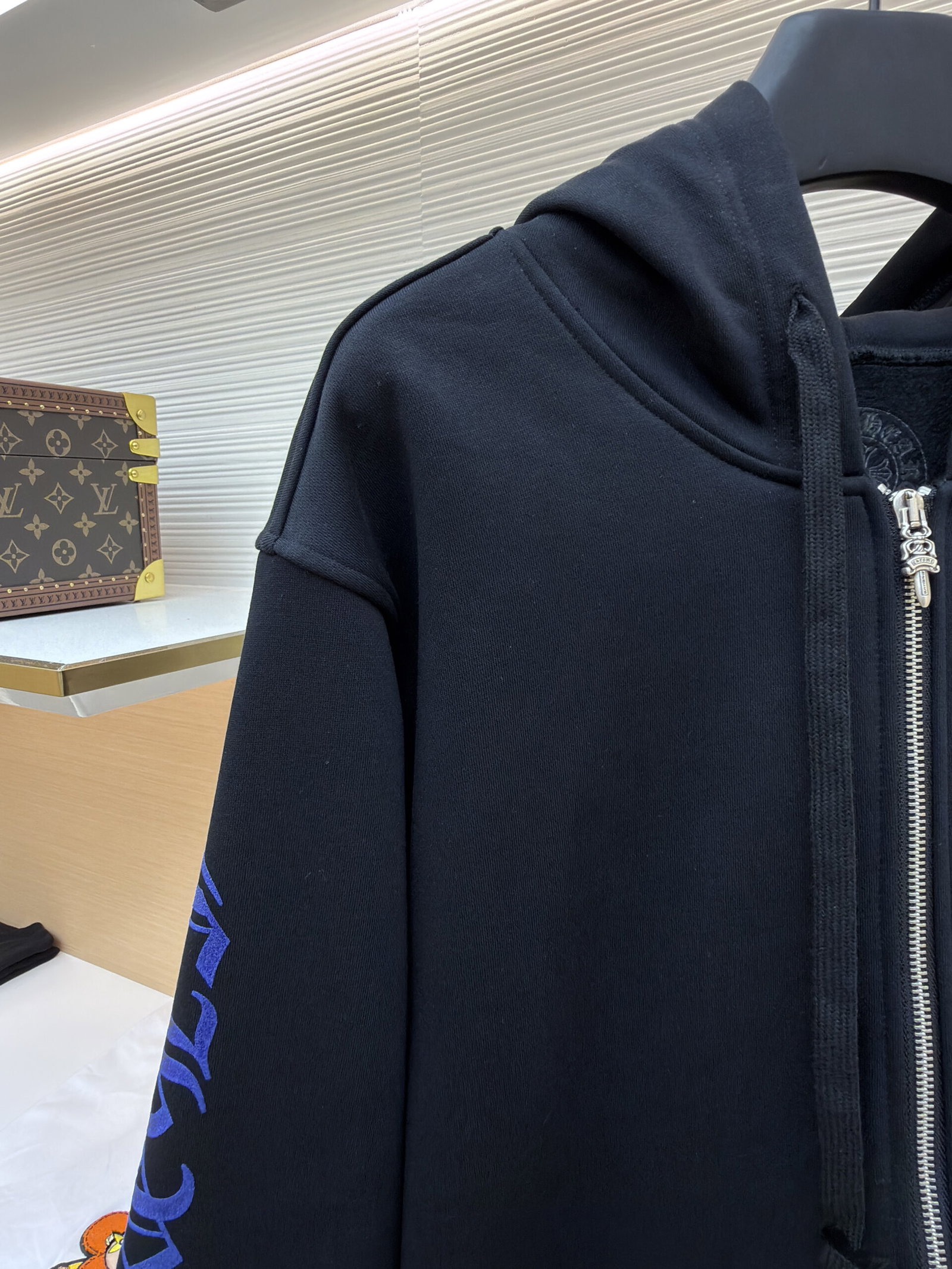 Chrome Hearts Print Blue pattern loose ZIP-UP HOODIE Black クロムハーツ プリント ブルー パターン ゆったり ジップアップパーカー ブラック