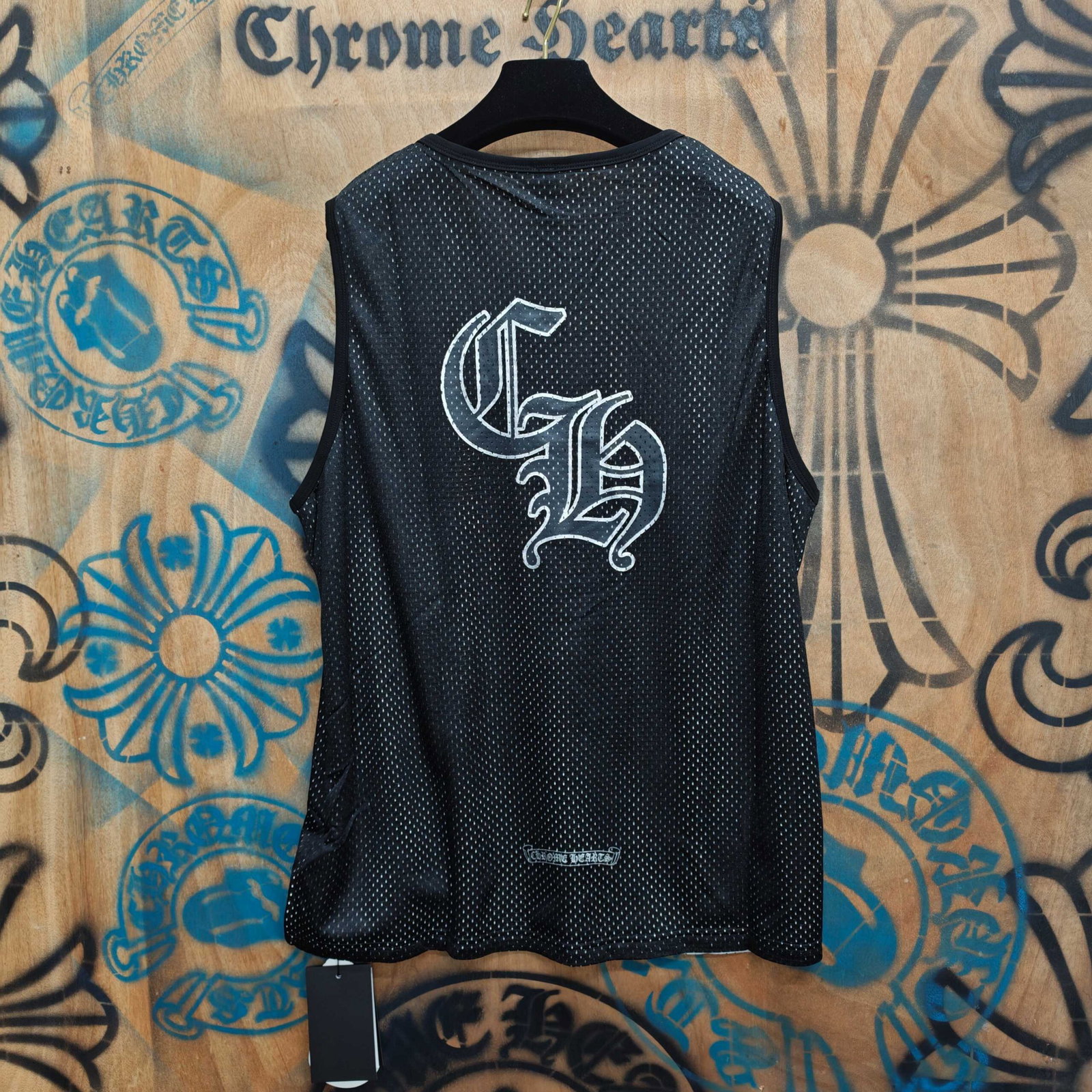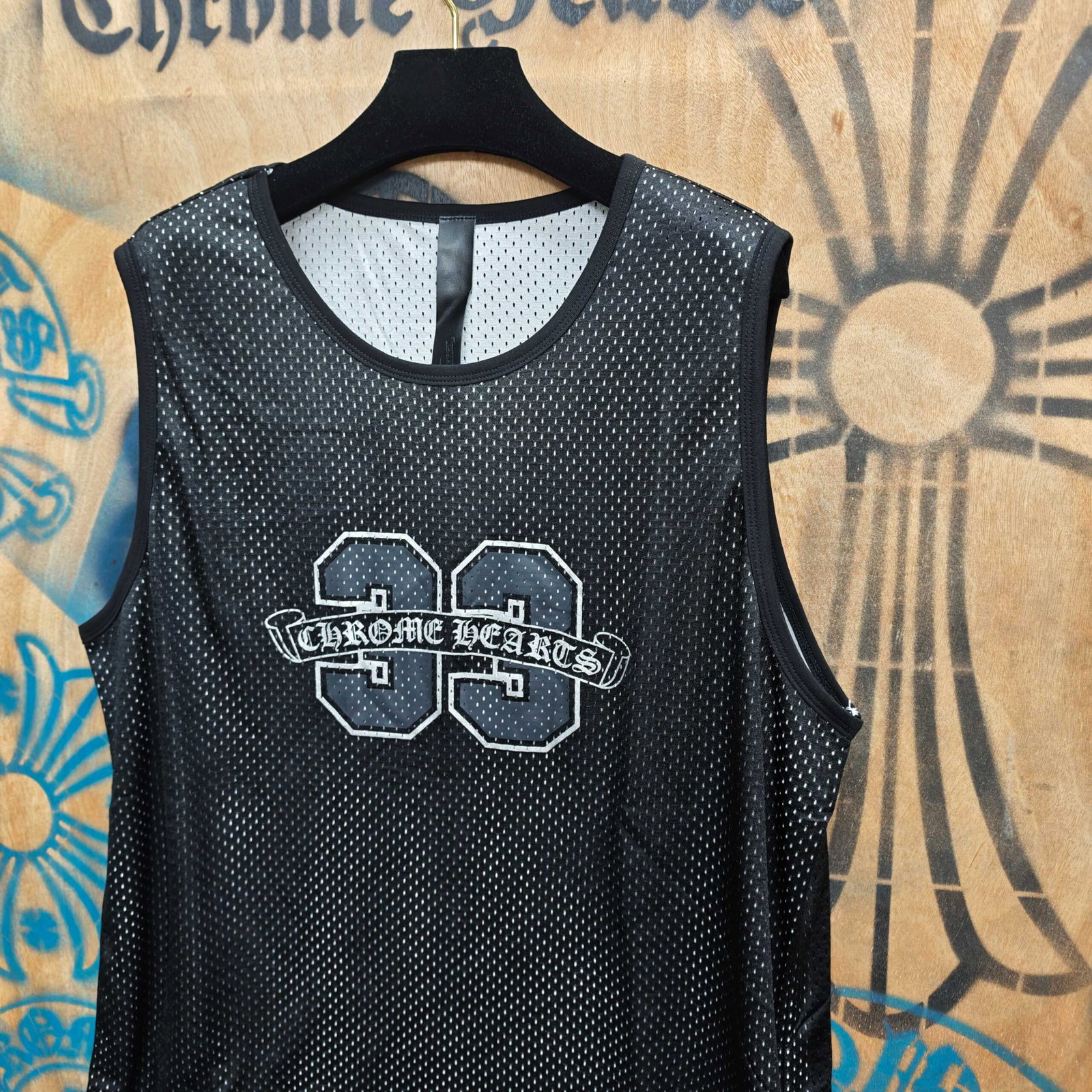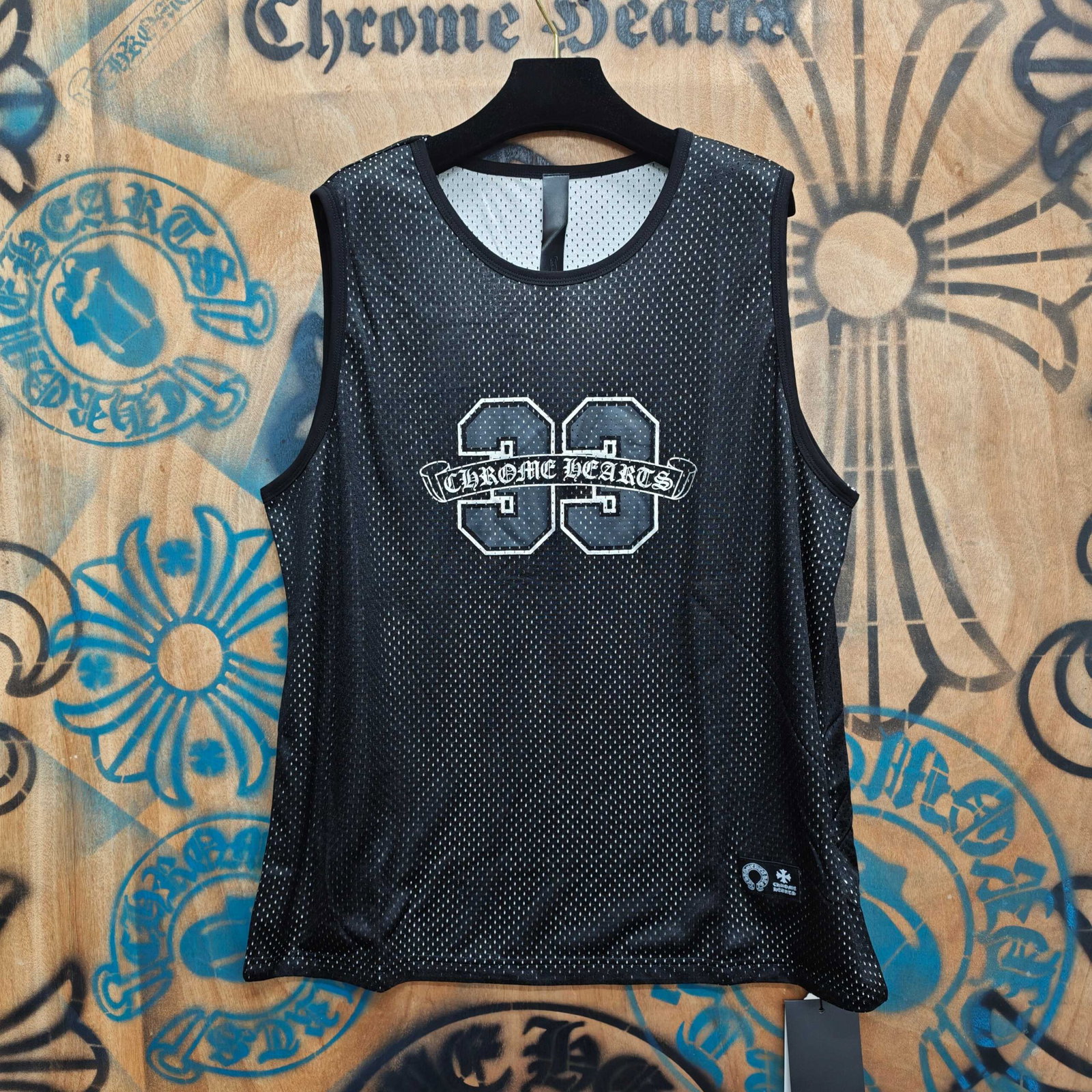 Chrome Hearts Print LOGO loose mesh surface VEST Black クロムハーツ プリント LOGO ゆったり クルーネック メッシュ面 ベスト ブラック