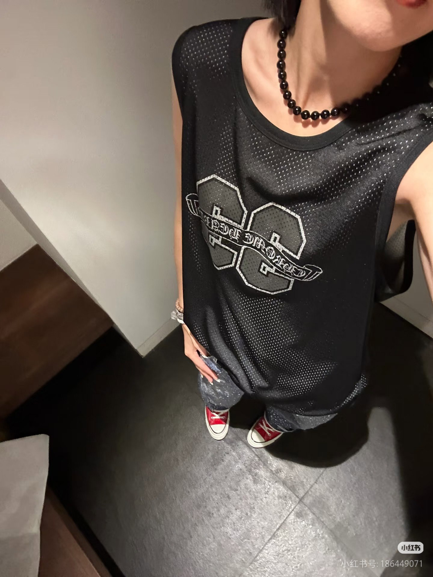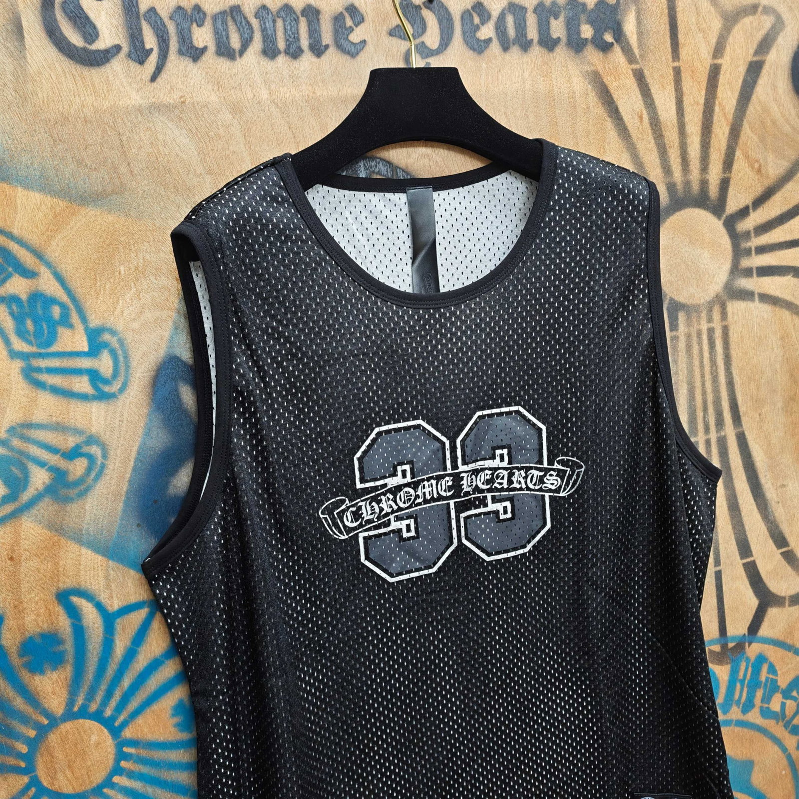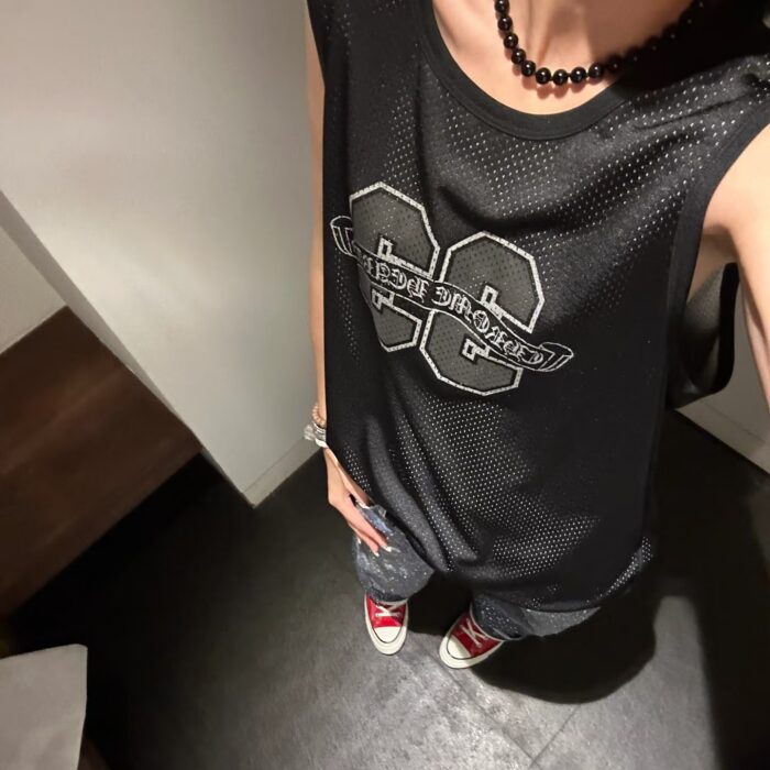 Chrome Hearts Print LOGO loose mesh surface VEST Black クロムハーツ プリント LOGO ゆったり クルーネック メッシュ面 ベスト ブラック