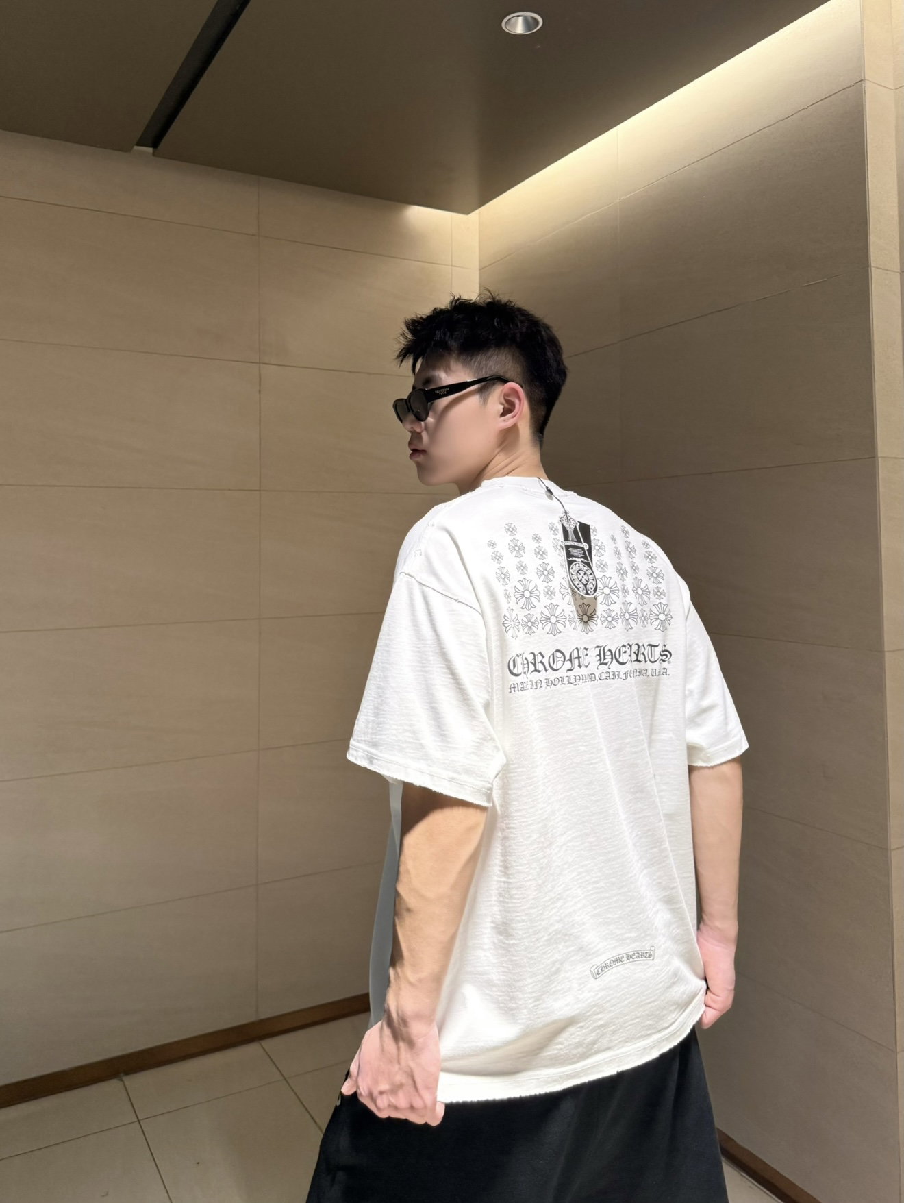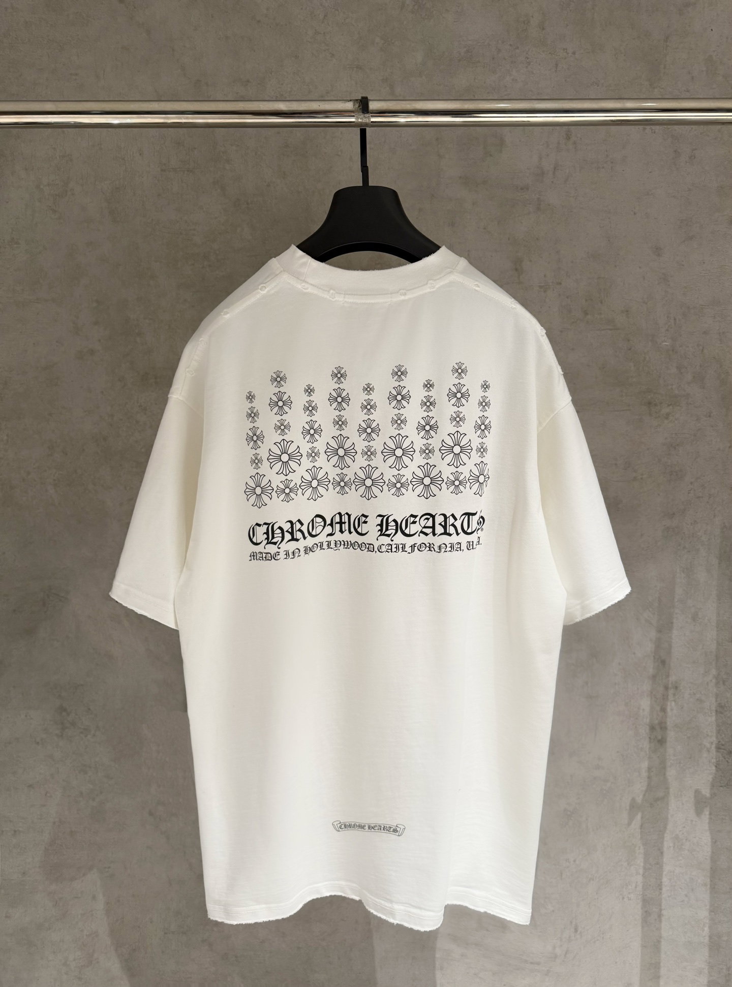 Chrome Hearts Print pattern loose Round neck T-shirt White クロムハーツ アップリケ プリント パターン ゆったり クルーネック Tシャツ ホワイト