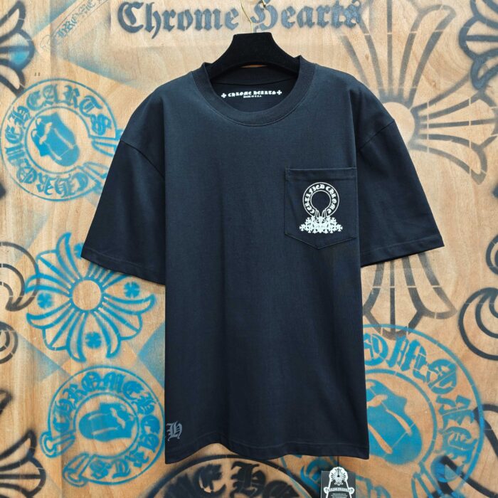 Chrome Hearts pocket Print Pink pattern loose Round neck T-shirt Black クロムハーツ ポケット プリント パターン ゆったり クルーネック Tシャツ ブラック