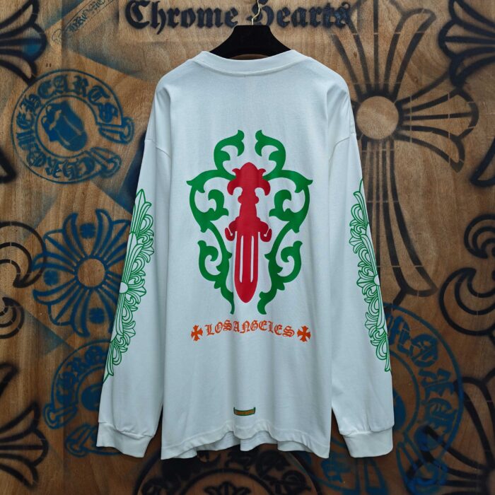 Chrome Hearts pocket Print Green pattern Round neck long sleeves T-shirt White クロムハーツ ポケット プリント グリーン パターン クルーネック 長袖 Tシャツ ホワイト