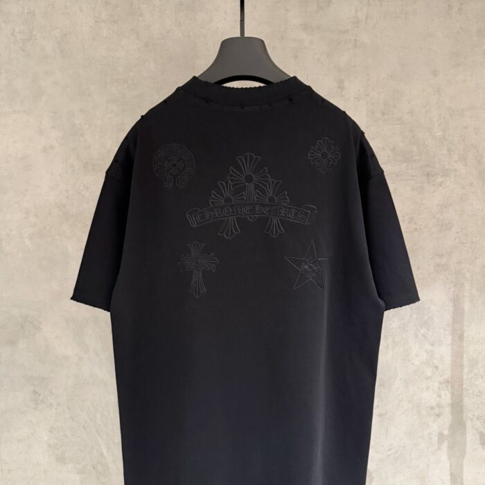 Chrome Hearts patch Embroidery pattern loose Round neck T-shirt Black クロムハーツ アップリケ 刺繍 パターン ゆったり クルーネック Tシャツ ブラック