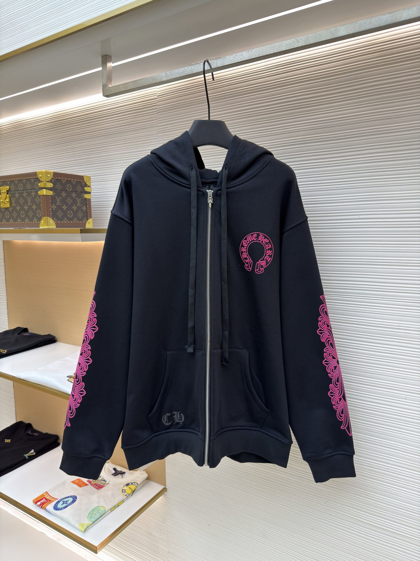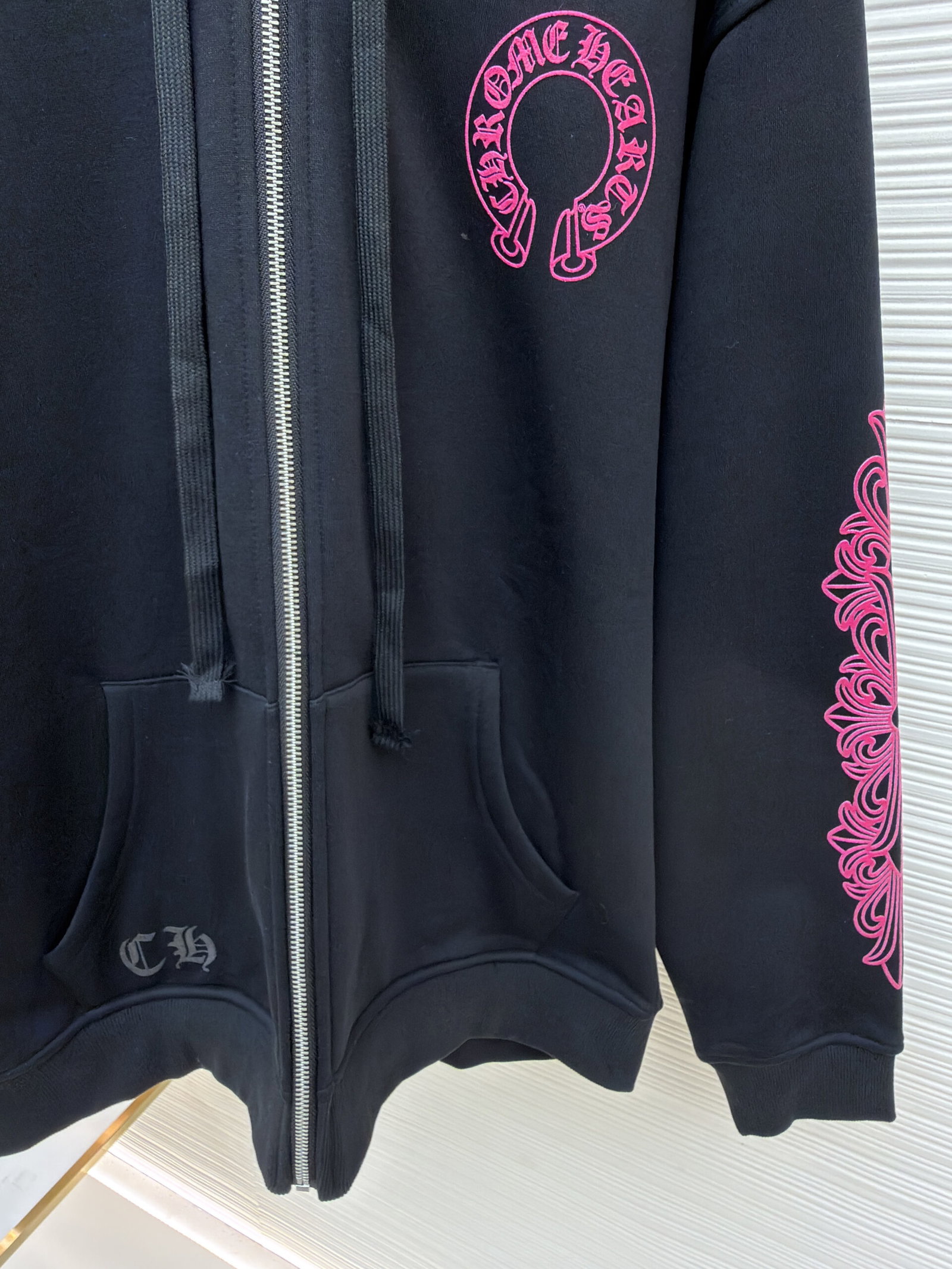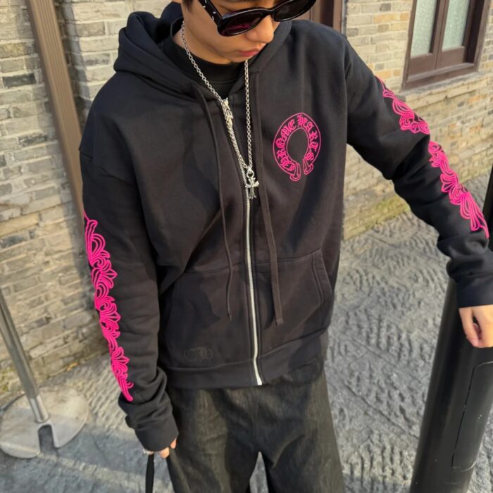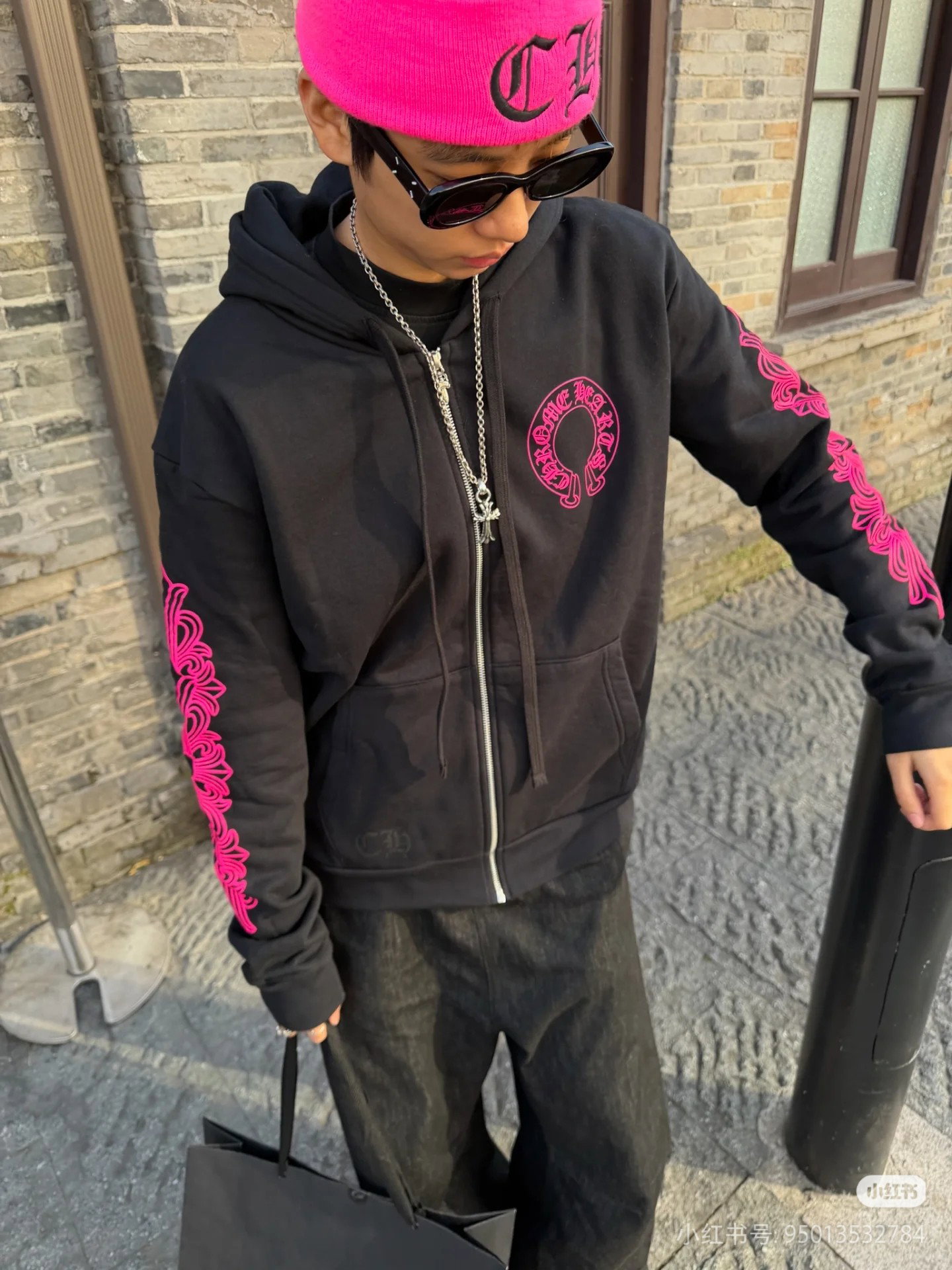 Chrome Hearts Print Pink pattern loose ZIP-UP HOODIE Black クロムハーツ プリント ピンク パターン ゆったり ジップアップパーカー ブラック