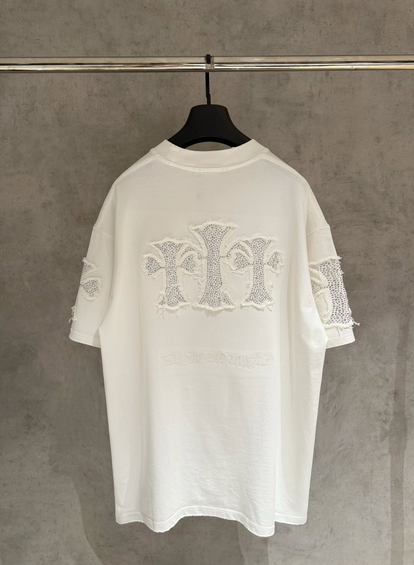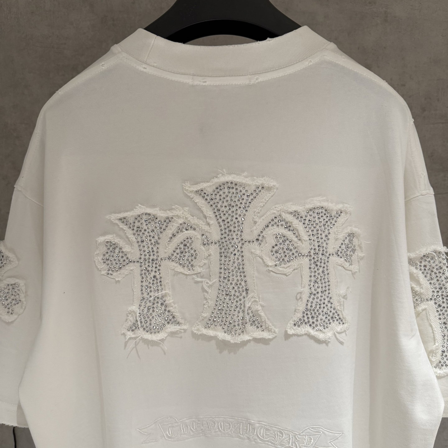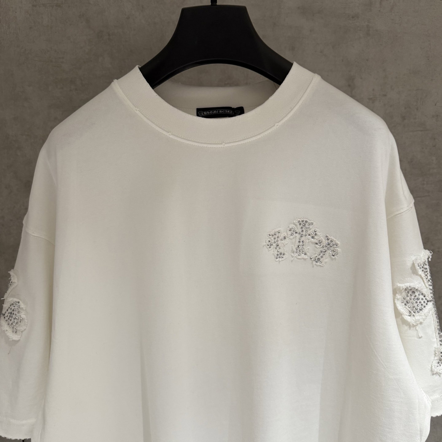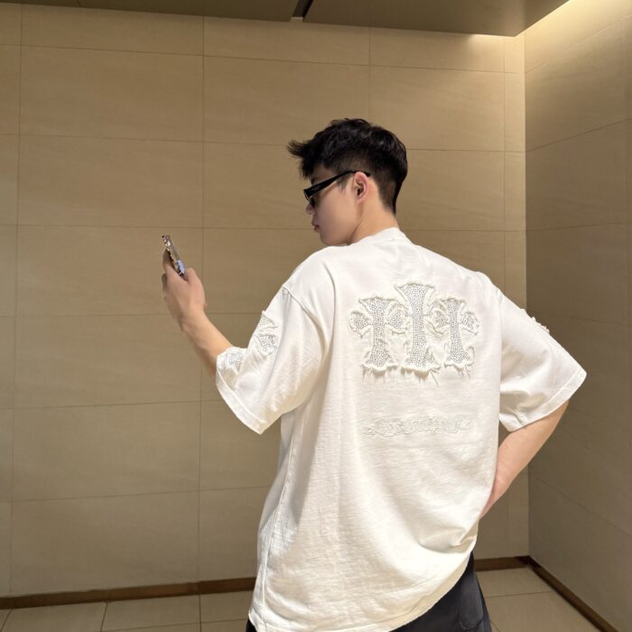 Chrome Hearts rhinestone patch Embroidery pattern loose Round neck T-shirt White クロムハーツ ラインストーン アップリケ 刺繍 パターン ゆったり クルーネック Tシャツ ホワイト