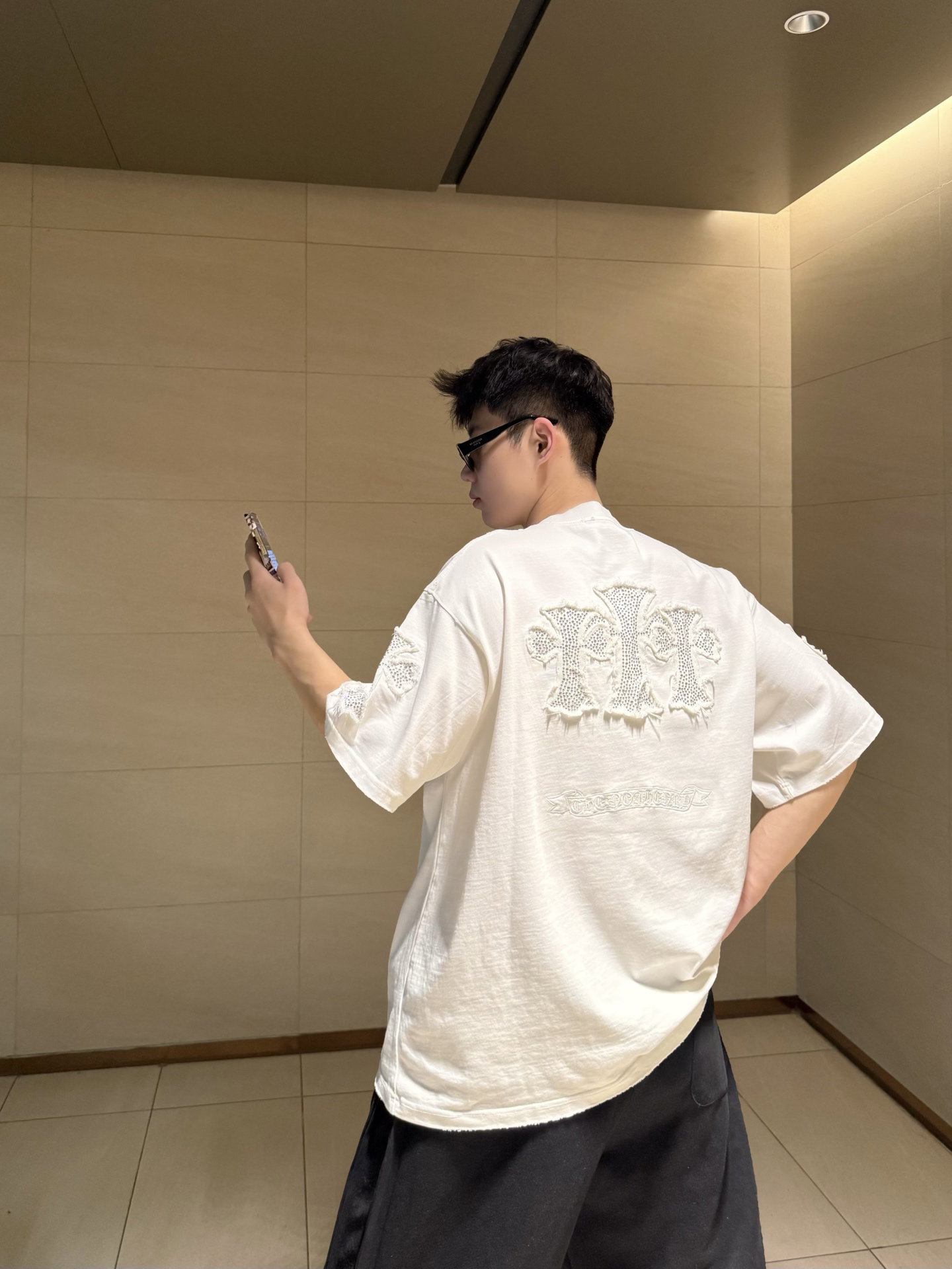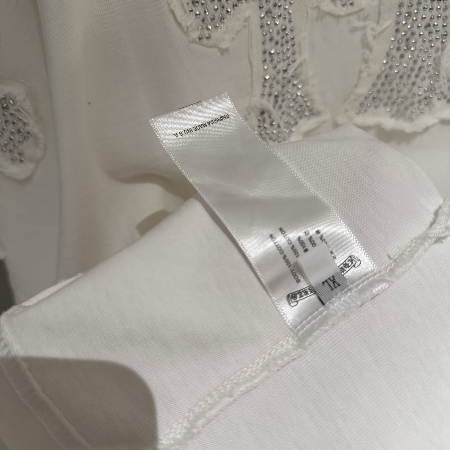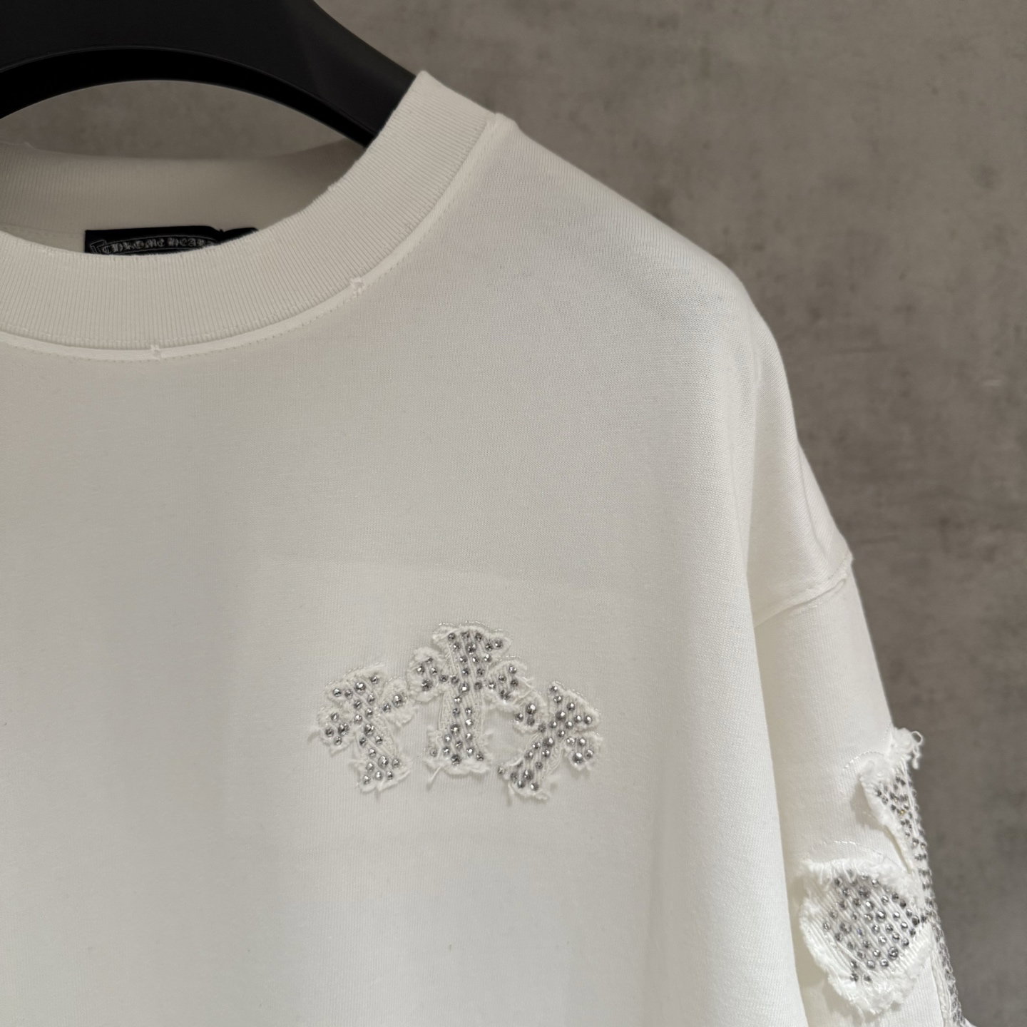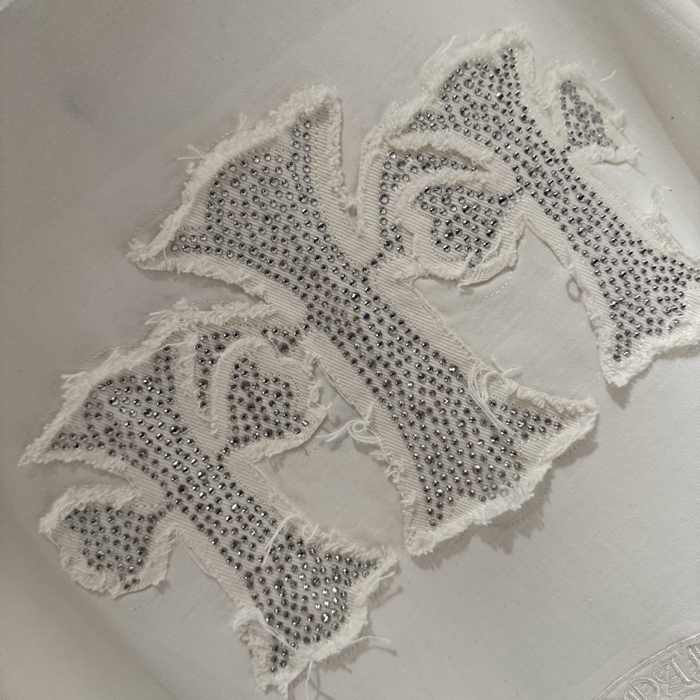 Chrome Hearts rhinestone patch Embroidery pattern loose Round neck T-shirt White クロムハーツ ラインストーン アップリケ 刺繍 パターン ゆったり クルーネック Tシャツ ホワイト