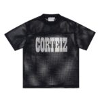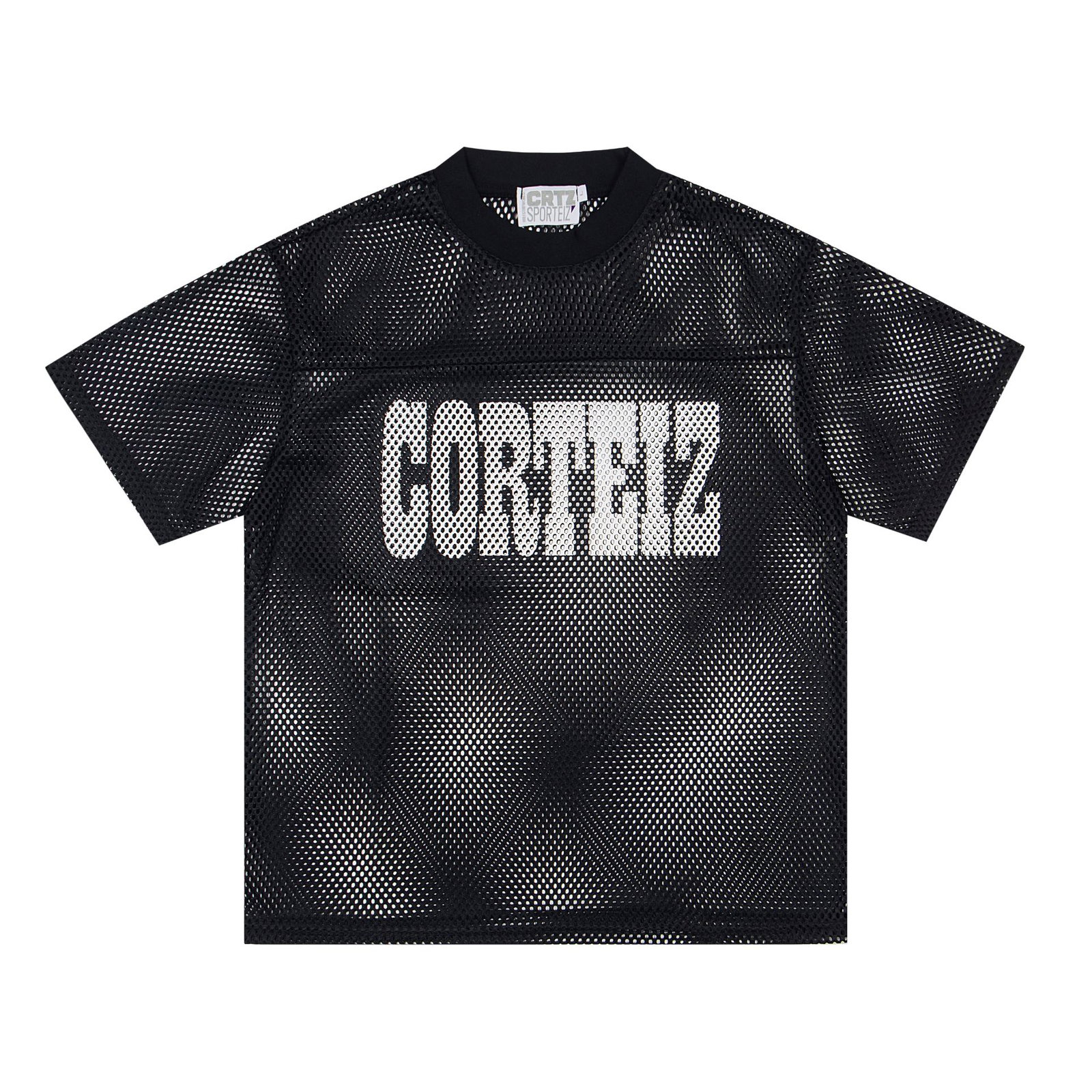 Corteiz Letter logo Round neck mesh surface loose T-shirt Black コーテイズ モジ logo クルーネック メッシュ ゆったり Tシャツ ブラック