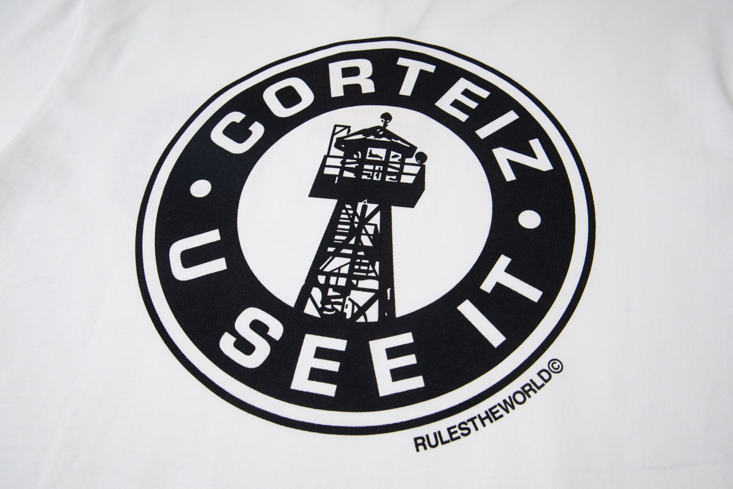 Corteiz Print Black pattern Round neck loose T-shirt White コーテイズ プリント ブラック パターン クルーネック ゆったり Tシャツ ホワイト