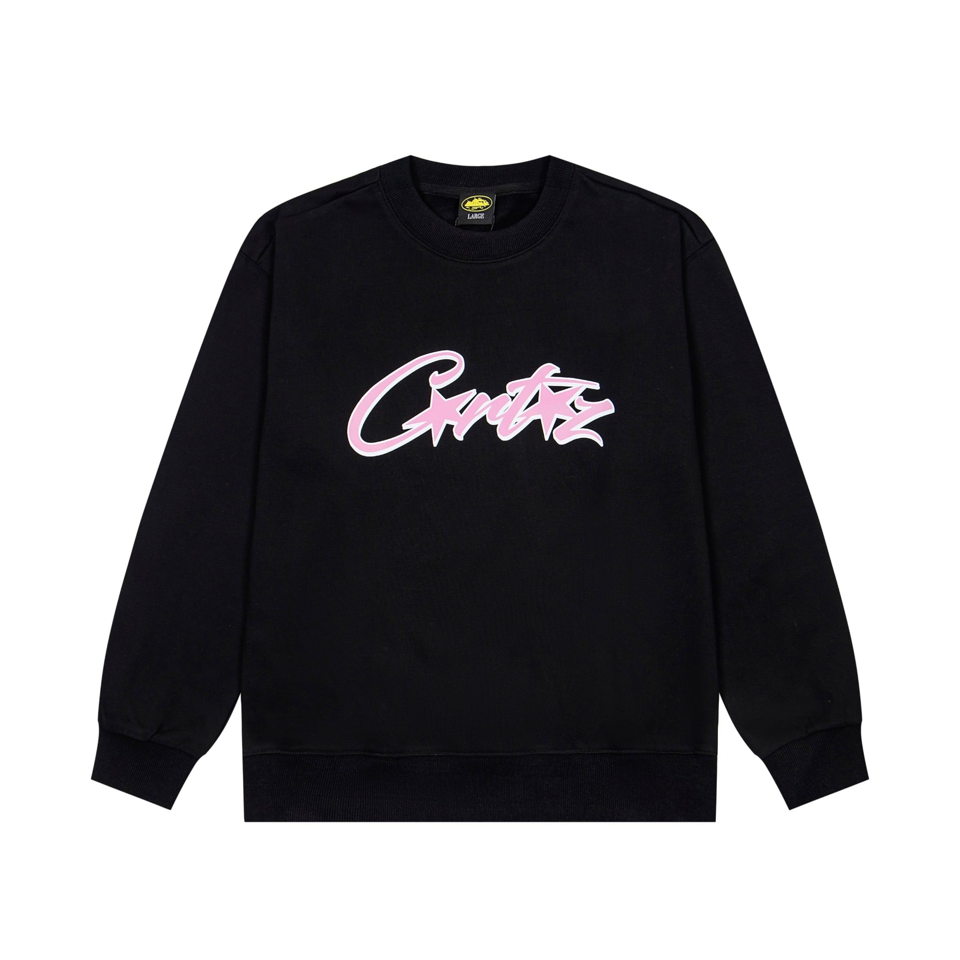 Corteiz Print Pink pattern loose Round neck Sweatshirt Black コーテイズ プリント ピンク パターン ゆったり クルーネック スウェット ブラック