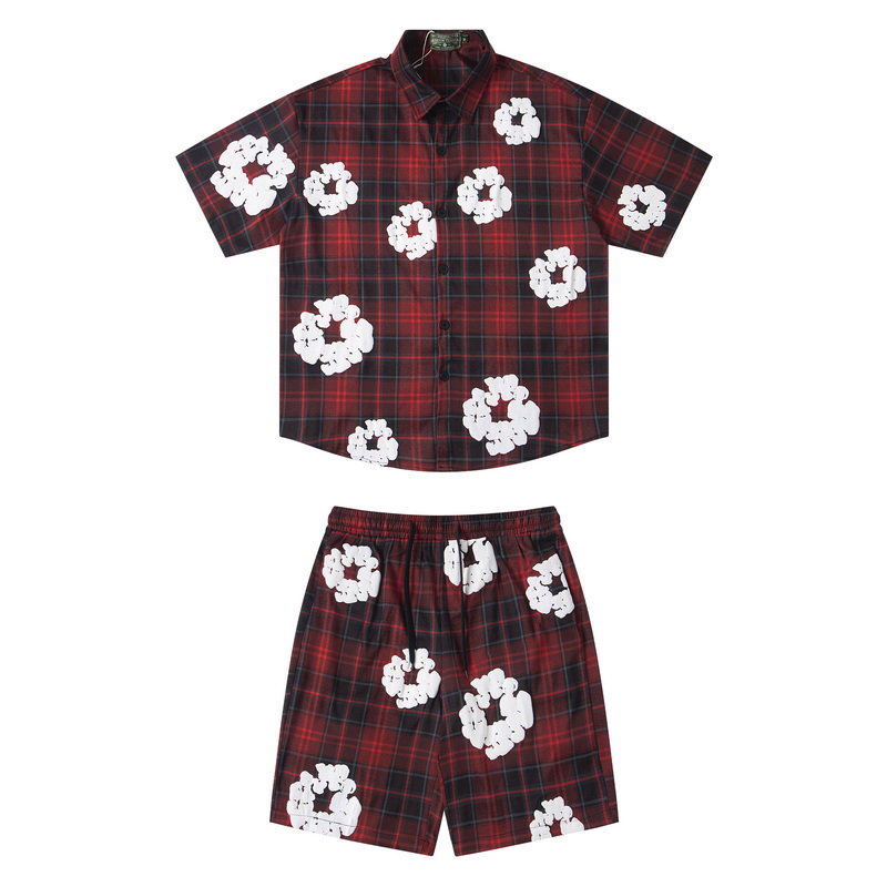 Denim Tears デニムティアーズ COTTON WREATH Tracksuits SETUP 上下 セットアップ 半袖カジュアルシャツ ショートパンツ コットンリース カモ柄