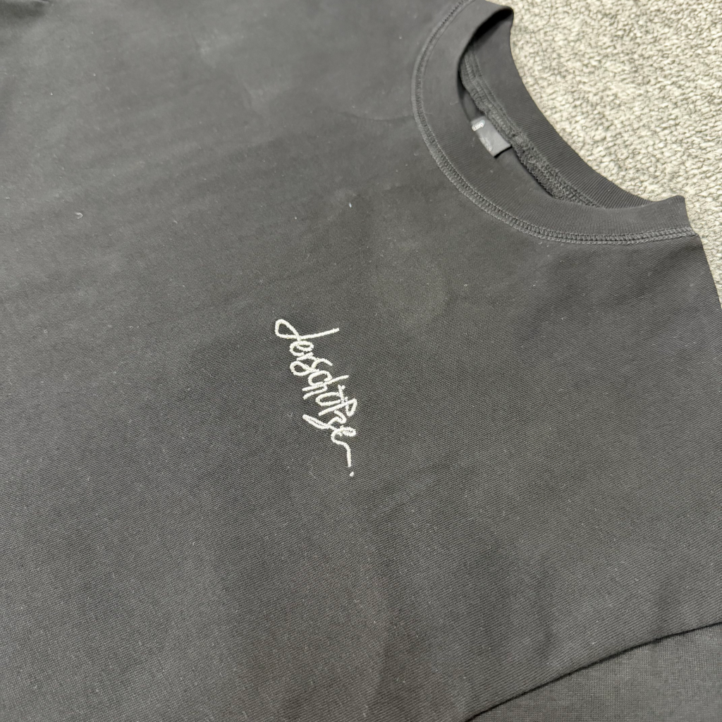 Derschutze Embroidery pattern LOGO loose Round neck T-shirt Black シュッツェ 刺繍 パターン LOGO ゆったり クルーネック Tシャツ ブラック
