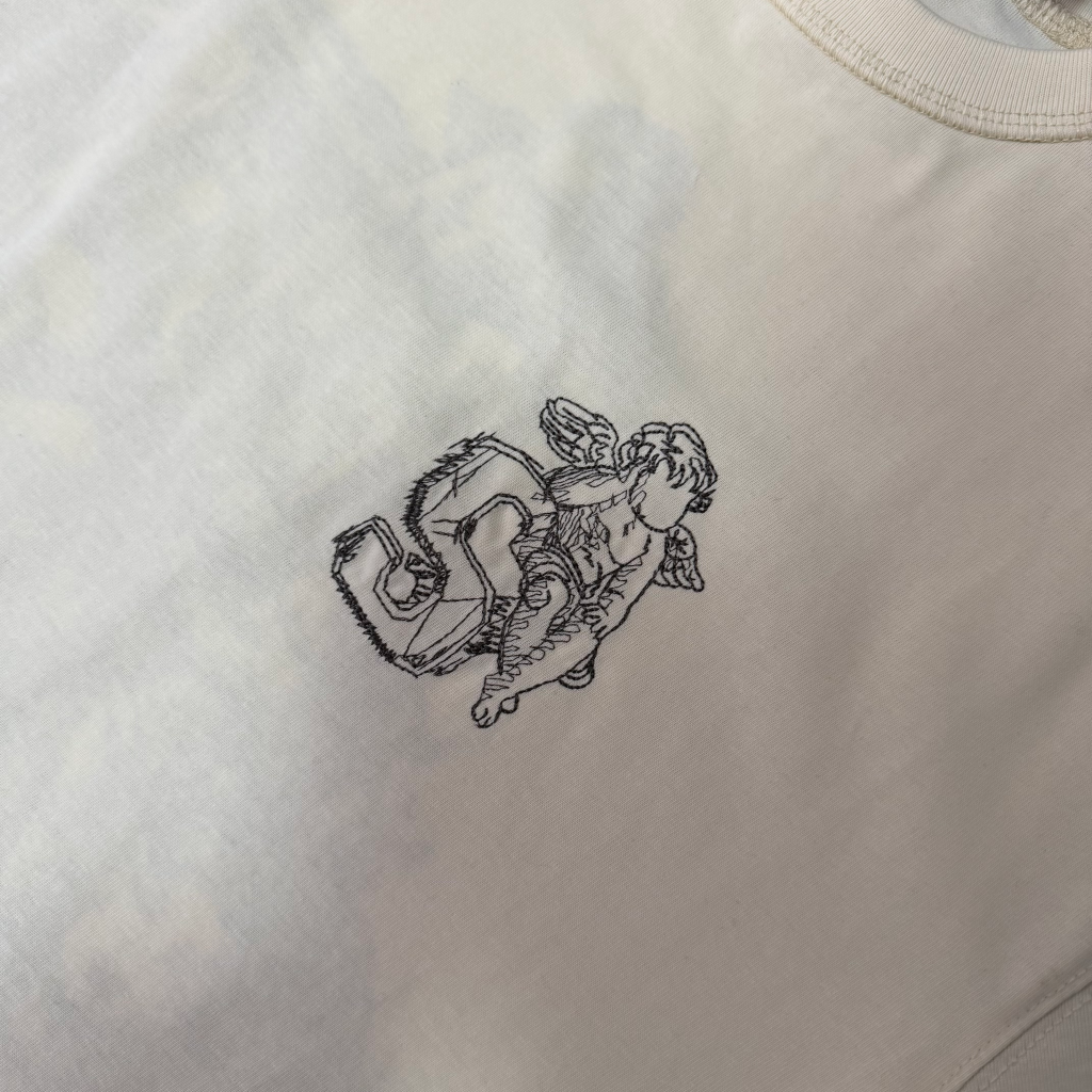Derschutze Embroidery pattern loose Round neck T-shirt Black シュッツェ 刺繍 パターン ゆったり クルーネック Tシャツ ブラック