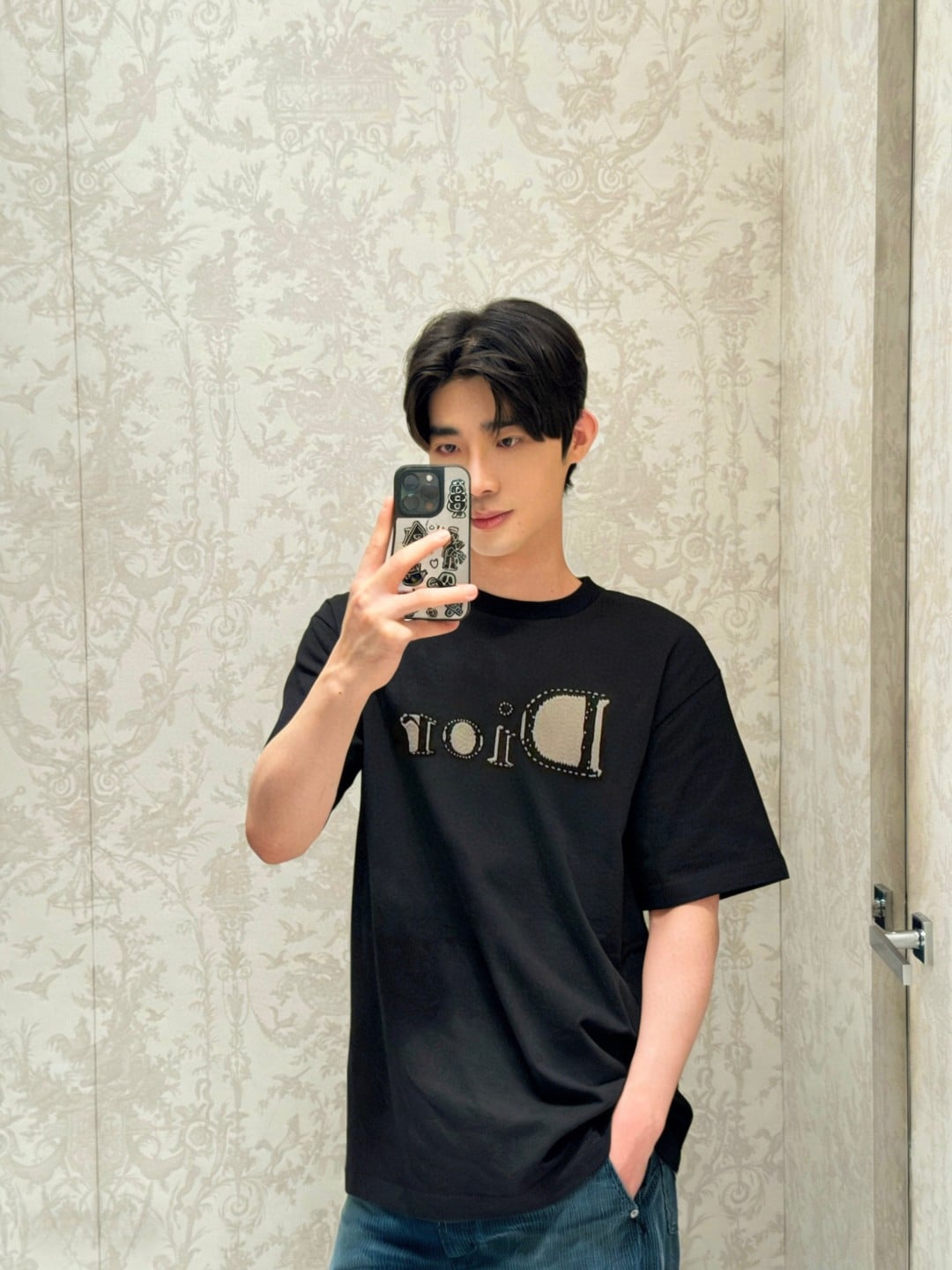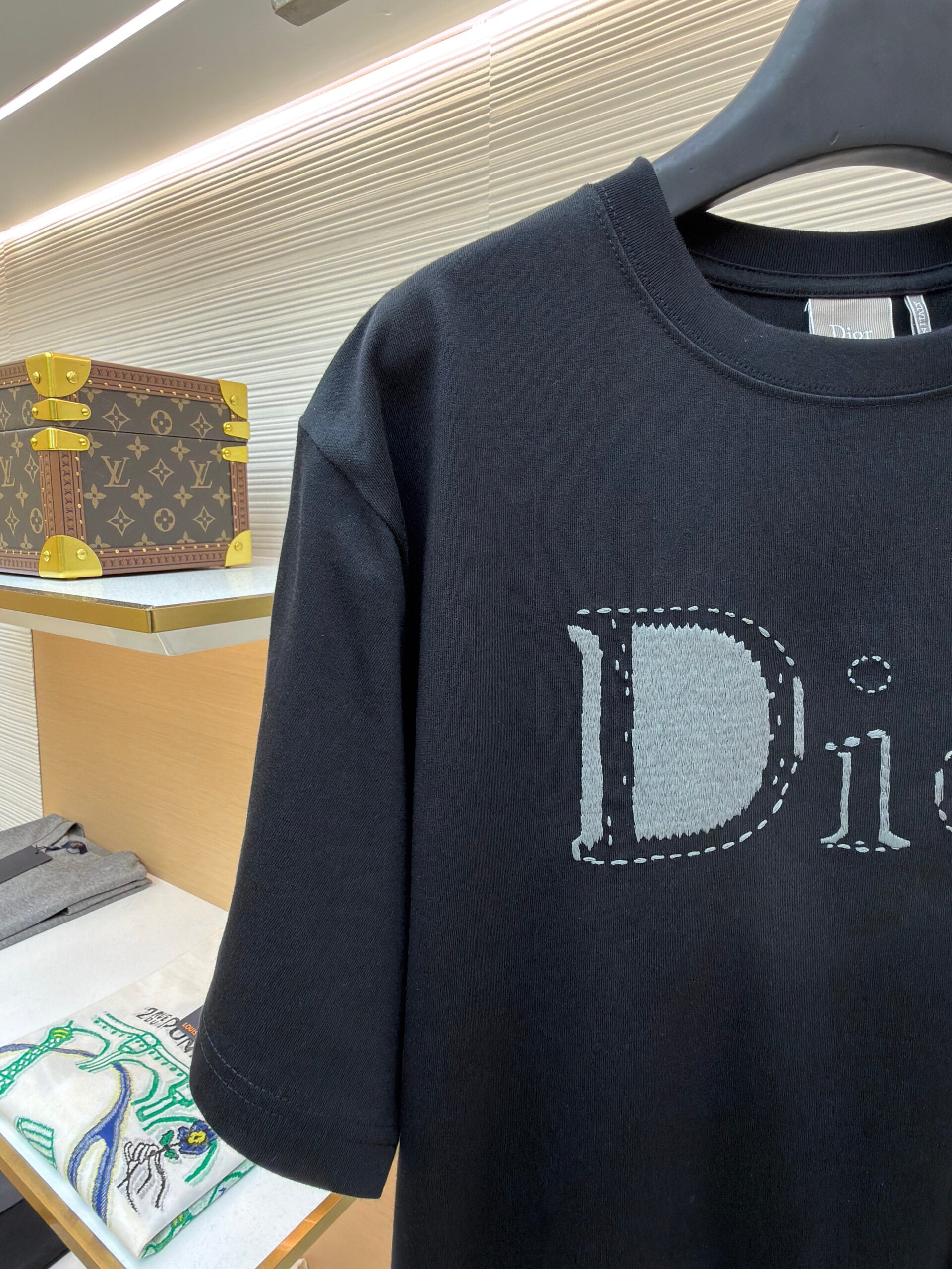 DIOR Embroidery Letter logo loose Round neck T-shirt Black ディオール 刺繍 モジ logo ゆったり クルーネック Tシャツ ブラック