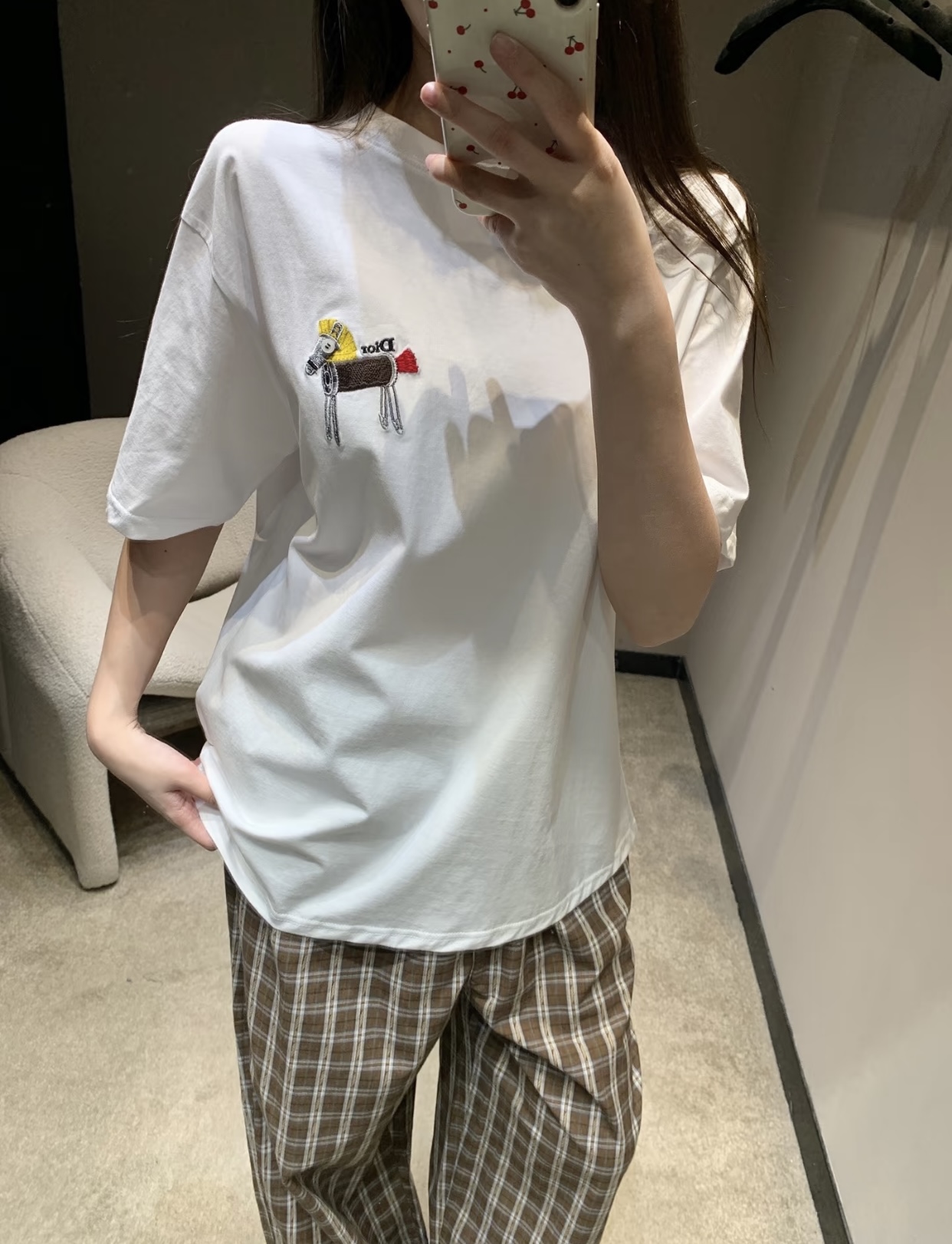 Dior Embroidery LOGO loose Round neck T-shirt White ディオール プリント LOGO クルーネック ゆったり Tシャツ ホワイト