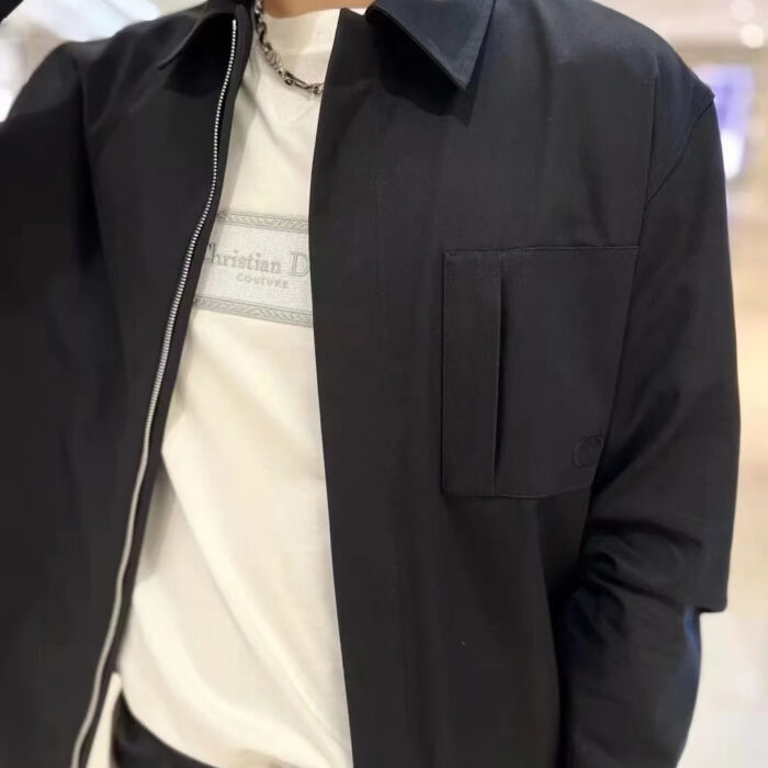 DIOR Embroidery LOGO Turn-Down Collar ZIP-UP nylon shirt jacket Black ディオール 刺繍 LOGO ターンダウンカラー ジップアップ ナイロン シャツ ジャケット ブラック