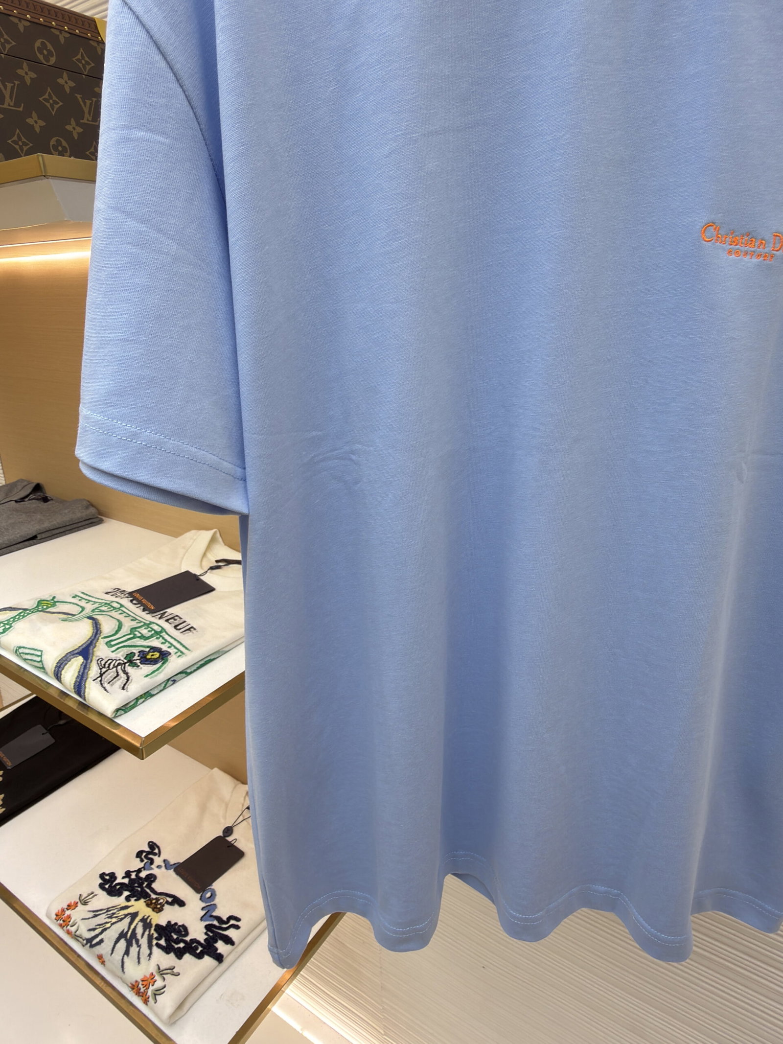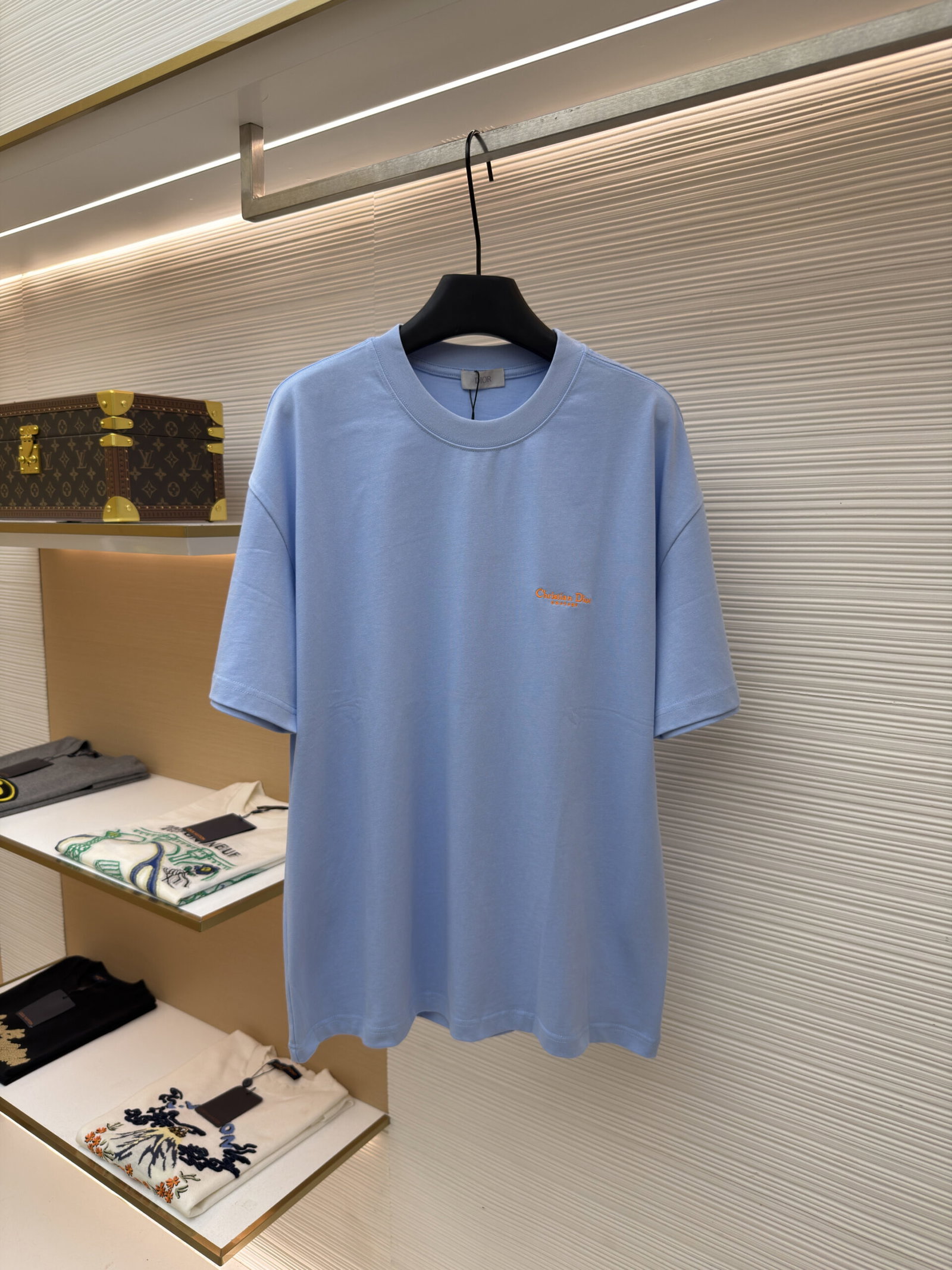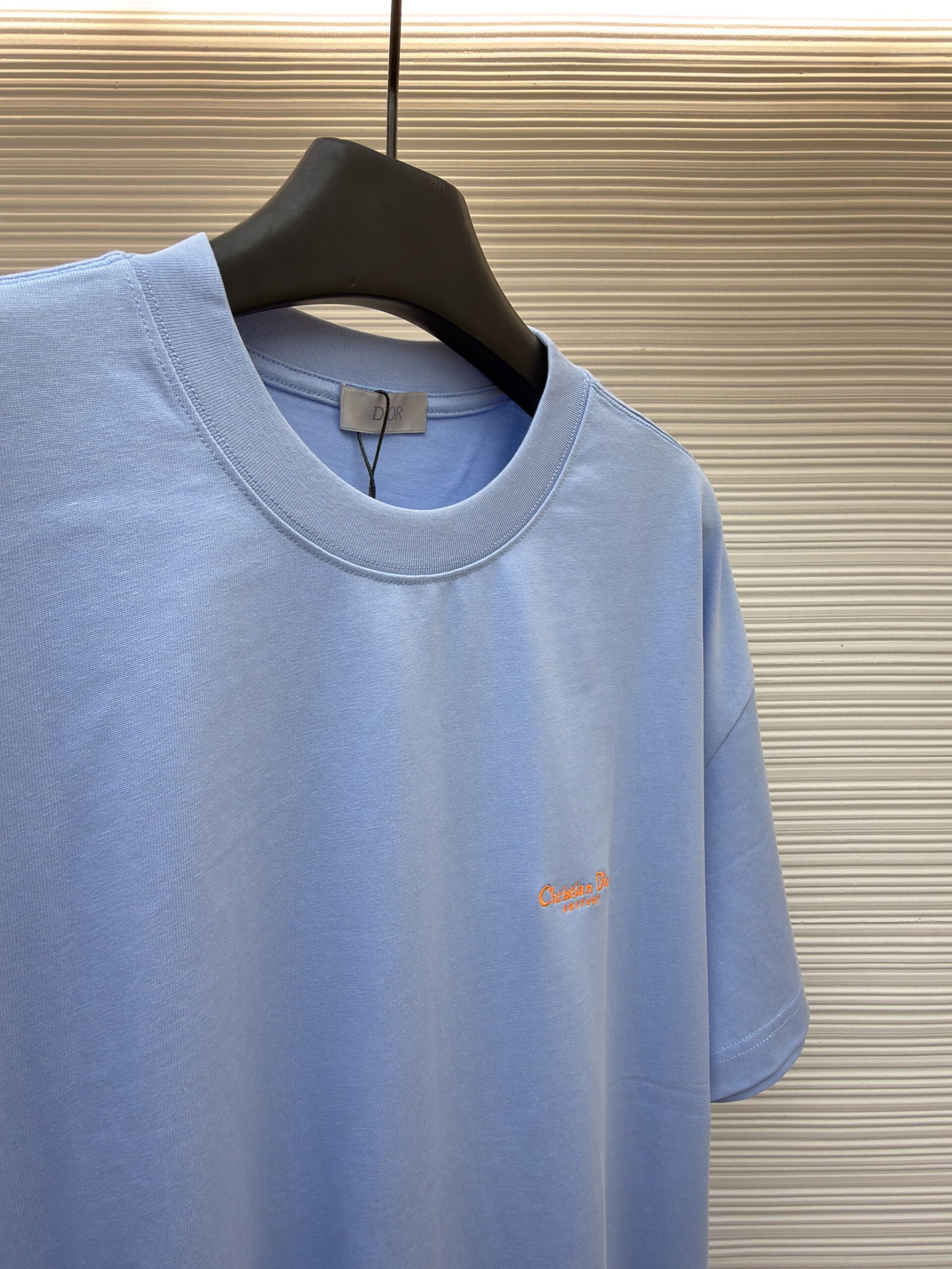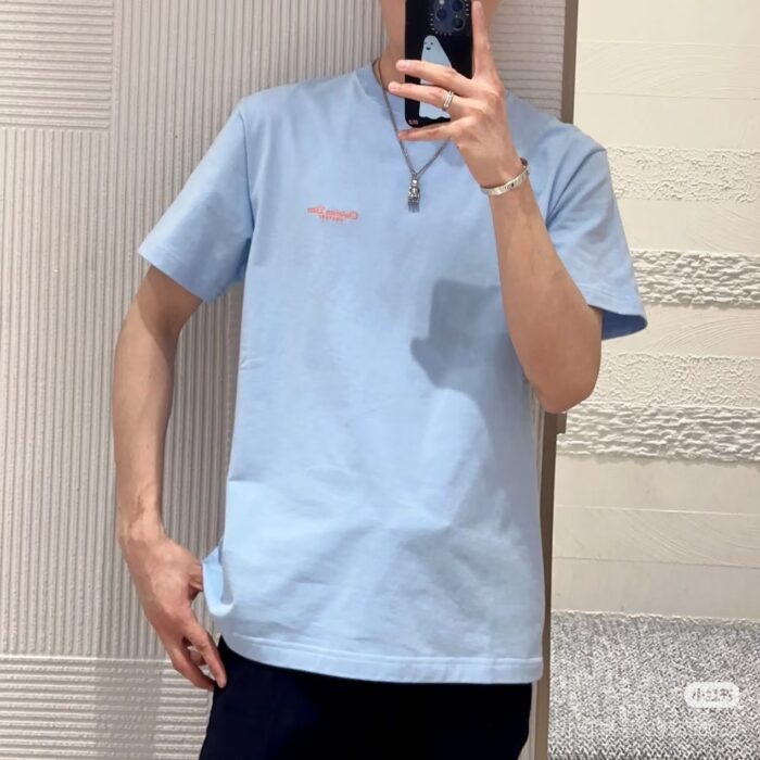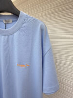 DIOR Embroidery orange LOGO loose Round neck T-shirt Blue ディオール 刺繍 オレンジ色 LOGO ゆったり クルーネック Tシャツ ブルー