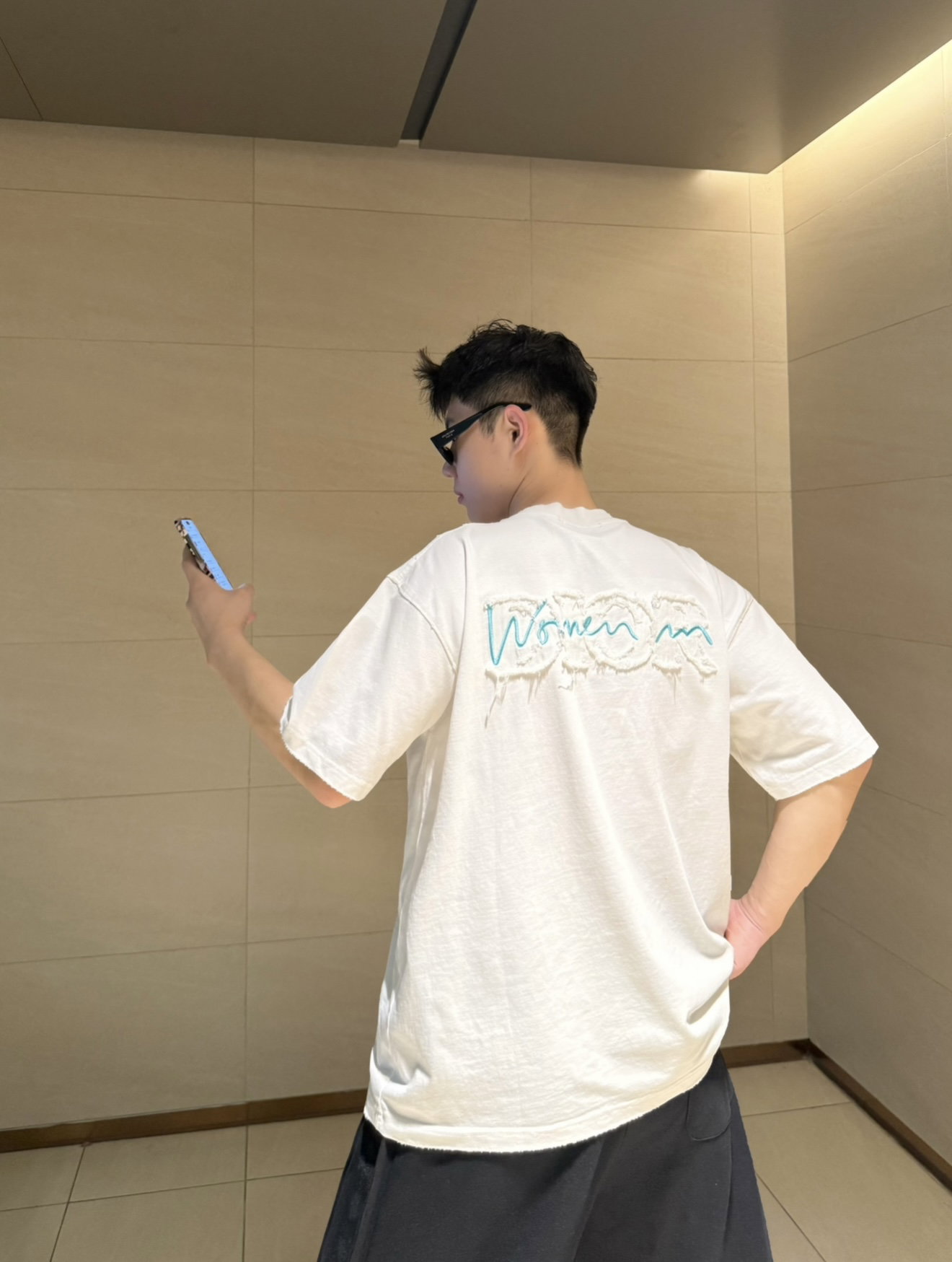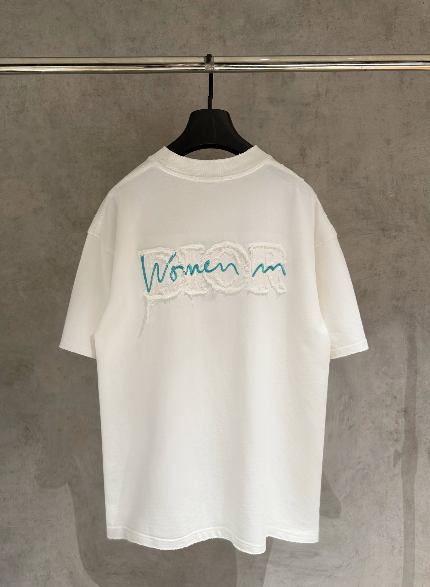 DIOR patch Embroidery Letter logo loose Round neck T-shirt White ディオール アップリケ 刺繍 モジ logo ゆったり クルーネック Tシャツ ホワイト